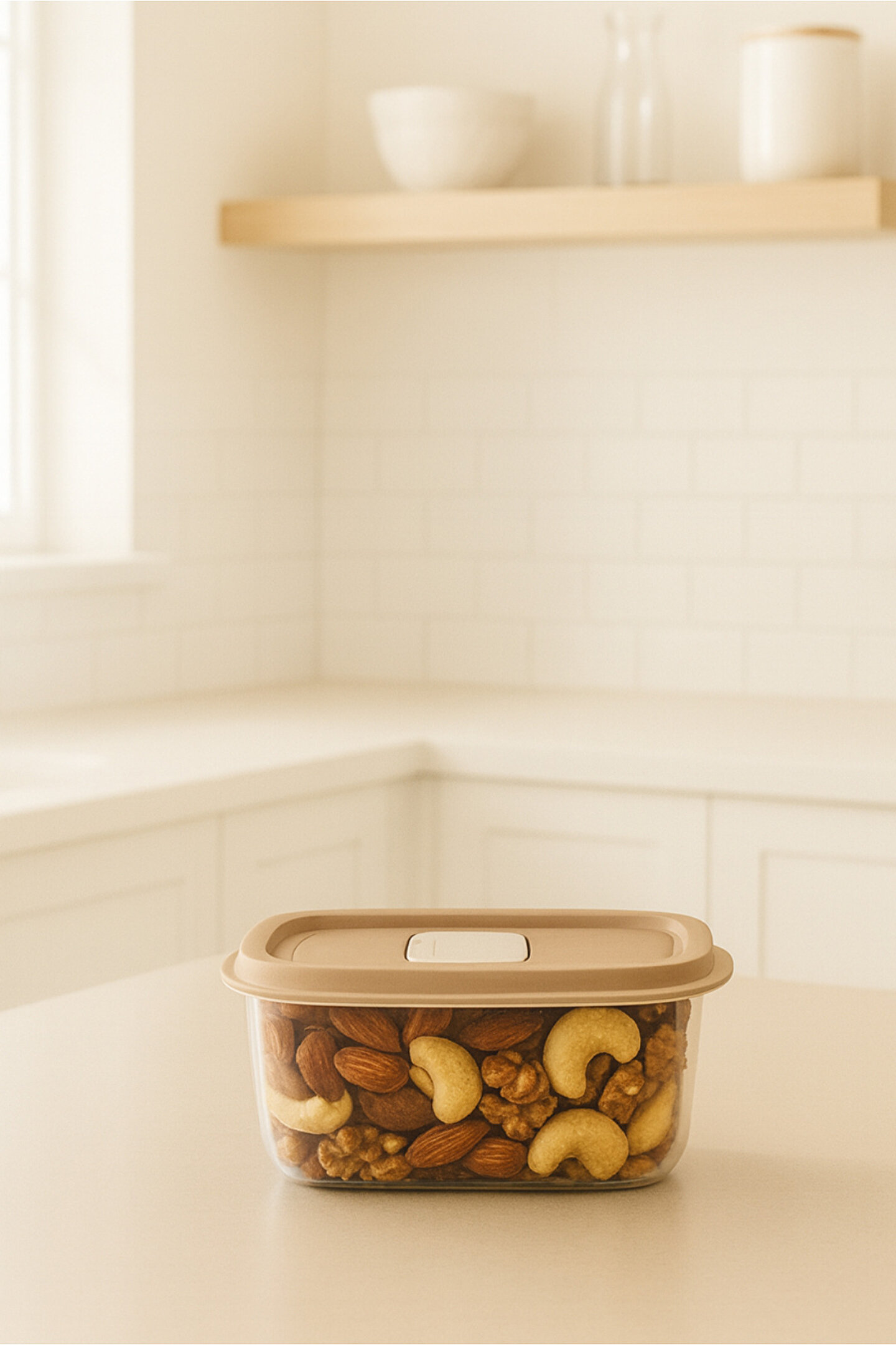 Vakumlu sızdırmaz saklama kabı, yiyeceklerin tazeliğini uzun süre korumak için özel tasarlanan yüksek dayanıklı gövdesi ve güçlü vakum mekanizması ile mutfakta maksimum hijyen sağlar; BPA içermeyen sağlıklı malzemesi sayesinde güvenle kullanıma uygundur; sızdırmaz yapısı sayesinde sıvı, sos ve buharlı yiyeceklerde bile dökülme riskini ortadan kaldırır; buzdolabı, derin dondurucu, fırın ve mikrodalga ile tam uyumlu çok amaçlı yapısı sayesinde sebze, meyve, bakliyat, kuru yemiş ve hazır yemek saklama için ideal çözüm sunar; şeffaf gövdesi sayesinde içeriği kolayca görmenizi sağlayarak düzenli bir saklama alanı oluşturur; ergonomik kapak tasarımı pratik açma–kapama imkânı sunarken vakum mandalı yiyeceklerin daha uzun süre taze kalmasına yardımcı olur; 1L, 1.5L, 2L ve 2.5L hacim alternatifleri ile her ihtiyaca uygun depolama sağlar; bulaşık makinesinde kolayca yıkanabilir dayanıklı yapısı uzun ömürlü kullanım sunar; mutfakta düzen, hijyen ve tazelik arayanlar için mükemmel bir saklama çözümüdür.;
