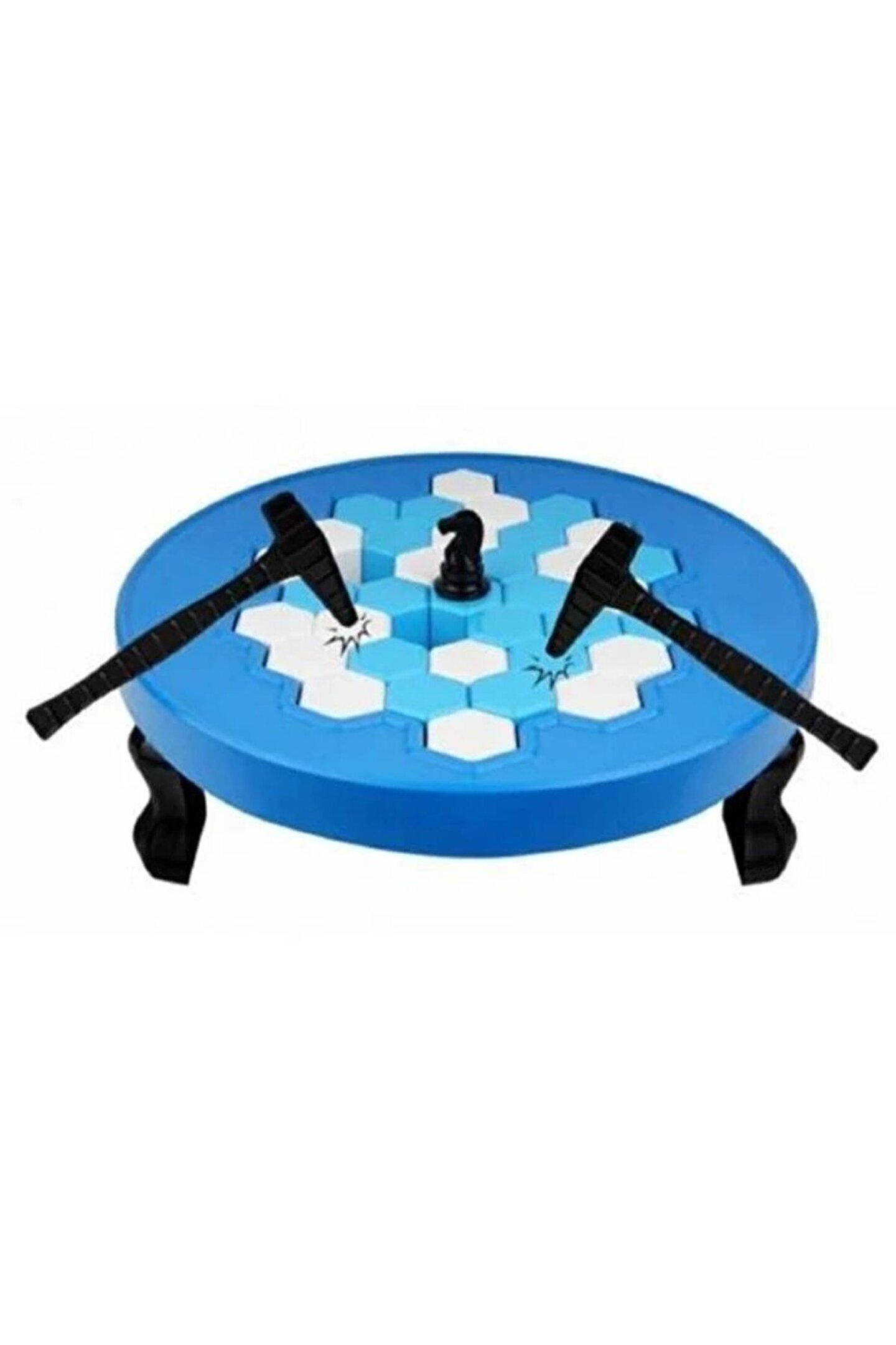 Buz Küpleri Zeka, Mantık ve Strateji Oyunu Buzu Kırma ile eğlence dolu dakikalar sizi bekliyor! Çocuklar bu strateji oyununda, buz küplerini tek tek düşürerek oyunu kazanmaya çalışır ama bu sırada At'ı düşüren oyunu kaybediyor. Atı buzdan düşürmeyip oyunda kalan son oyuncu oyunu kazanıyor. Oyun Hazırlanışı Oyun çerçevesinin ayakları takılır. Oyun çerçevesi düz bir zemine ters olarak çevirilir ve buz küpleri renk ayrımı olmaksızın yerleştirilir. Oyun çerçevesi ayaklarının üzerinde durabilecek şekilde düz çevirilir. Çerçevenin orta noktasındaki buz küpünün üzerine at yerleştirilir. Oyun Kuralları 2 oyuncu sıra ile buz küplerine birer vuruş yaparak küpü çerçevenin dışına çıkartır. ; ...