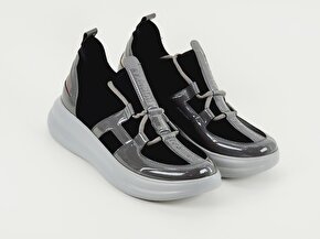 TOKYO Bağcıklı Ortopedik Taban Triko Detaylı Kadın Spor Ayakkabı TBT - GriTuruncu