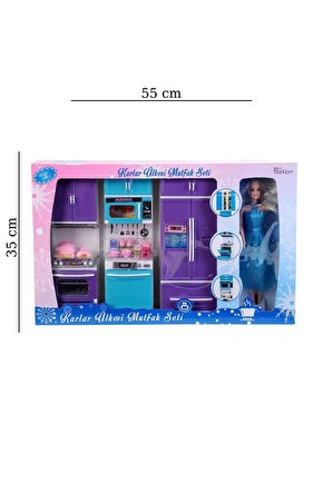 SÜRPRİZ MİNİK HEDİYESİ İLE GÖNDERİLMEKTEDİR.; Karlar ülkesi bebek ve 3'lü mutfak seti Bu oyuncak seti ile çocuklar eğlenceli vakit geçirecekler ve hayal dünyalarını geliştirecekler.; Çocuklar da artık anneleri gibi kendi mutfak setlerine sahipler.; En güzel yemeklerinizi bu mutfakta yapacaksınız.; Bebek yaklaşık 29 cm boyundadır.; Ürünler dönemsel olarak renk farklılığı gösterebilmektedir.; Yaş grubu : 3+ yaş Barkodu: 8893330023359 Item no : Oyd-02335 Kutu ölçüleri : 56,5 x 35 x 8,5 cm.; Desi değeri: 6