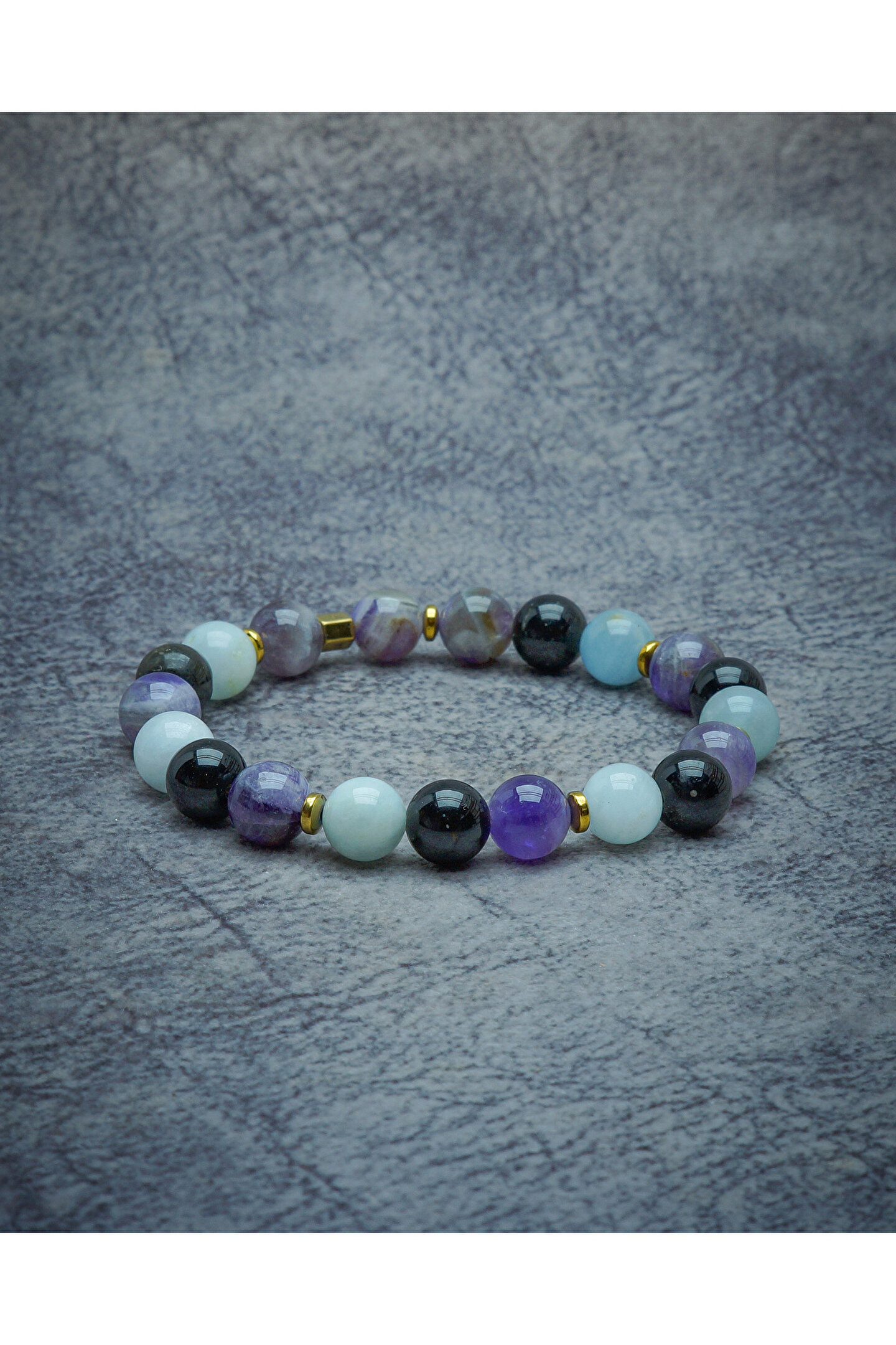 Ametist, obsidyen ve akuamarin, Akrep burcunun derin, tutkulu ve dönüşüme açık enerjisine mükemmel eşlik eder.; Ametist, zihni sakinleştirir, sezgisel gücü artırır ve duygusal denge sağlar; obsidyen ise güçlü koruma özelliğiyle negatif enerjileri keser, kişinin karanlık yönleriyle yüzleşmesine destek olur; akuamarin ise iletişimi güçlendirir, içsel huzuru artırır ve stresli durumlarda soğukkanlı kalmaya yardımcı olur.; Bu üç taşın bir arada kullanılması, Akrep in yoğun duygusal dünyasını yatıştırarak kendini ifade etmesini kolaylaştırır, dönüşüm sürecini güvenle tamamlamasını sağlar ve enerjisini dengede tutarak hem içsel hem de dışsal hayatında denge ve uyum yaratır.; Bilek çevrenizi ölçmek için bir mezureyi bileğinizin en geniş yerine, çok sıkmadan ancak tam oturacak şekilde dolayın.; Mezurenin başlangıç noktası ile birleştiği yeri okuyarak ölçünüzü belirleyin.; Eğer mezureniz yoksa, bir ip veya şerit kullanarak bileğinizi ölçüp, ardından bir cetvelle uzunluğunu belirleyebilirsiniz.; Doğal taşlar, yüzyıllardır farklı kültürlerde enerjileri ve faydalı etkileriyle tanınmış ve kullanılmıştır.; Ancak bu etkiler kişisel inanç, deneyim ve algıya bağlı olarak değişiklik gösterebilir.; Bu taşların doğal güzellikleri ve eşsiz enerjileri, günlük yaşamınıza estetik ve anlam katabilir.
