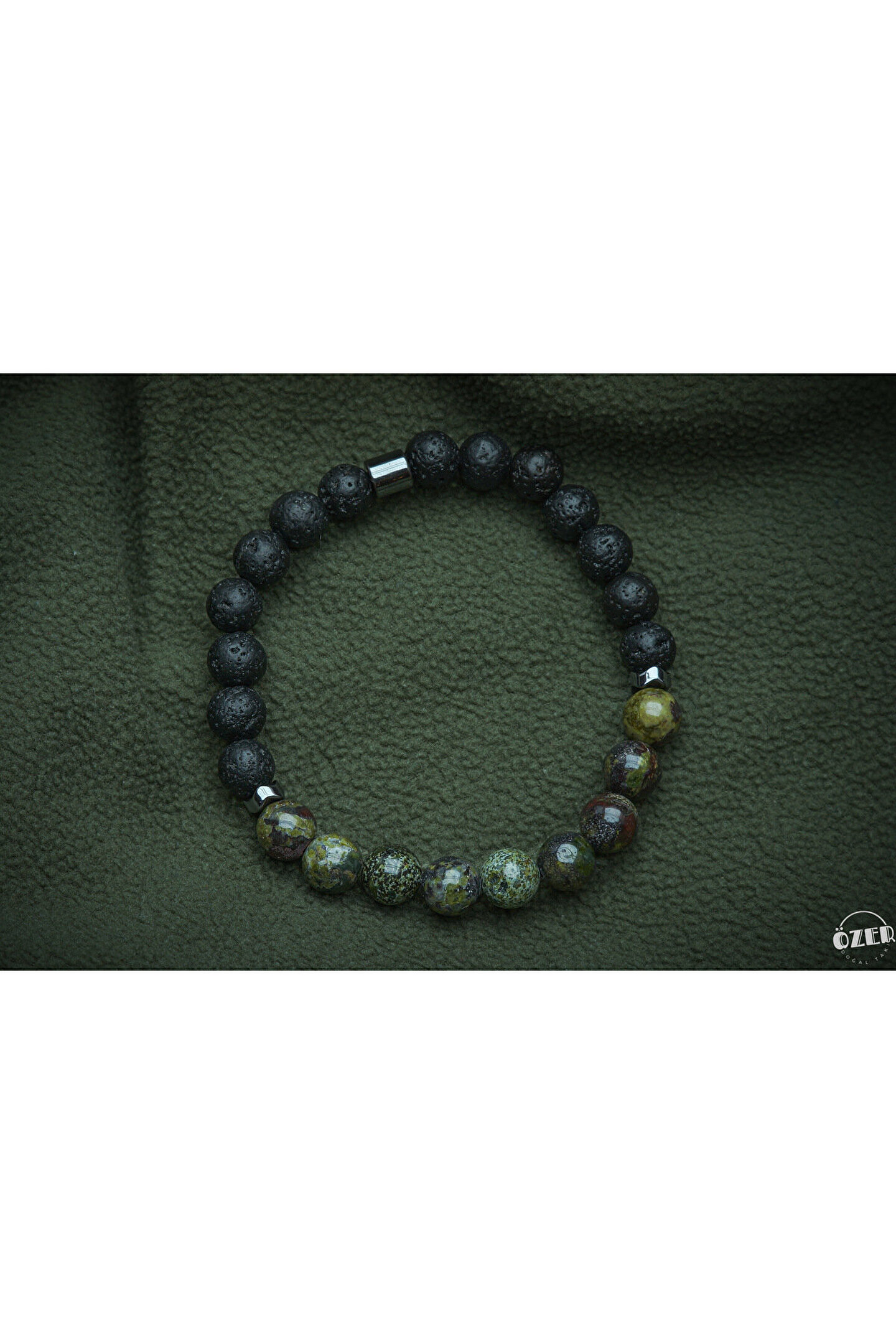 Doğanın enerjisiyle güç bulun, her adımda dengeyi hissedin!”Kan taşı, fiziksel ve ruhsal dayanıklılığı artırırken aynı zamanda cesareti ve özgüveni destekler.; Lav taşı ise volkanik kökeni sayesinde toprağın enerjisini taşıyarak denge ve koruma sağlar.; Bu bileklik, iki güçlü taşın enerjisini zarif bir tasarımla birleştirerek hem stilinizi hem de enerjinizi tamamlıyor.; Doğanın şifasını bileğinizde taşıyın.; Bilek çevrenizi ölçmek için bir mezureyi bileğinizin en geniş yerine, çok sıkmadan ancak tam oturacak şekilde dolayın.; Mezurenin başlangıç noktası ile birleştiği yeri okuyarak ölçünüzü belirleyin.; Eğer mezureniz yoksa, bir ip veya şerit kullanarak bileğinizi ölçüp, ardından bir cetvelle uzunluğunu belirleyebilirsiniz.; Doğal taşlar, yüzyıllardır farklı kültürlerde enerjileri ve faydalı etkileriyle tanınmış ve kullanılmıştır.; Ancak bu etkiler kişisel inanç, deneyim ve algıya bağlı olarak değişiklik gösterebilir.; Bu taşların doğal güzellikleri ve eşsiz enerjileri, günlük yaşamınıza estetik ve anlam katabilir.