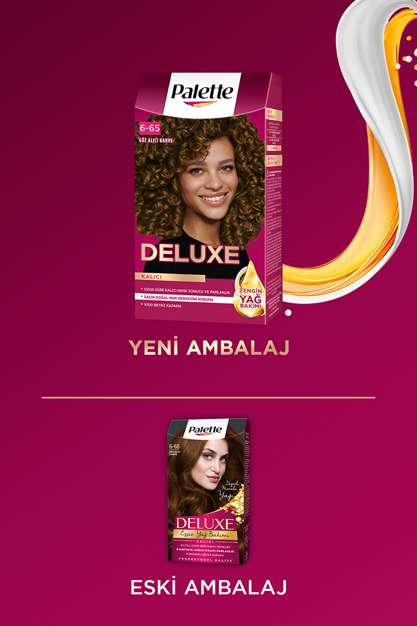 Palette Deluxe 6-65 Göz Alıcı Kahve Saç Boyası ;Uzun süre kalıcı renk sonucu ve parlaklık;Saçın doğal nem dengesini koruma;Zengin yağ içerikleri ile bakım;%100 beyaz kapama;saç boyası, saç bakımı, kalıcı renk sonucu, parlaklık, boyama sırasında bakım, zengin yağ bakımı, pürüzsüz ve ipeksi saç, Zengin Yağ Bakımı