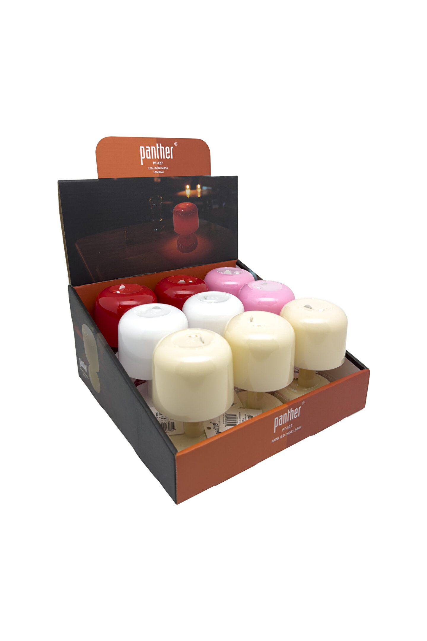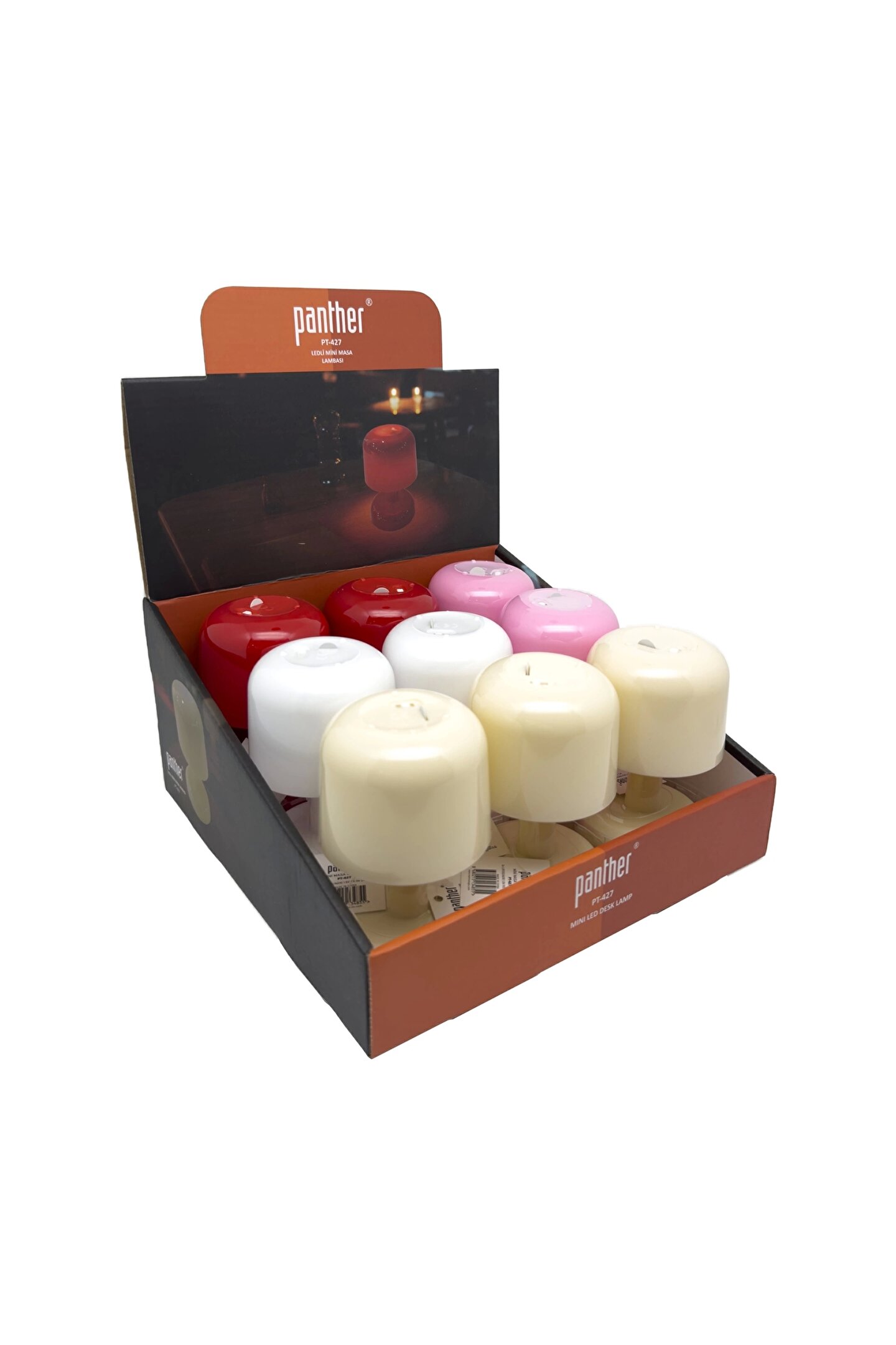 PANTHER PT-427 MİNİ LED MASA LAMBASIÖzelliklerLed IşıkYüksek Kaliteli PlastikGüvenli ve DayanıklıEvinizin her köşesinde, kafe ve restoranlarda hem dekorasyon hem aydınlatma amaçlı kullanılabilen ledli mini masa lambası.; Bu masa lambası şarjlı değildir, pil ile çalışır.3x LR1130/AG10 1.5V Pil ile çalışır.; Piller dahildir.; Uyarı:Bu ürün oyuncak değildir, çocuklardan uzak tutunuz.; Pilleri, pil yuvasına doğru yerleştirdiğinizden emin olunuz.; Işık seviyesinde azalma olduğunda pilleri değiştiriniz.; Kutu içi adet: 9Koli içi adet: 108