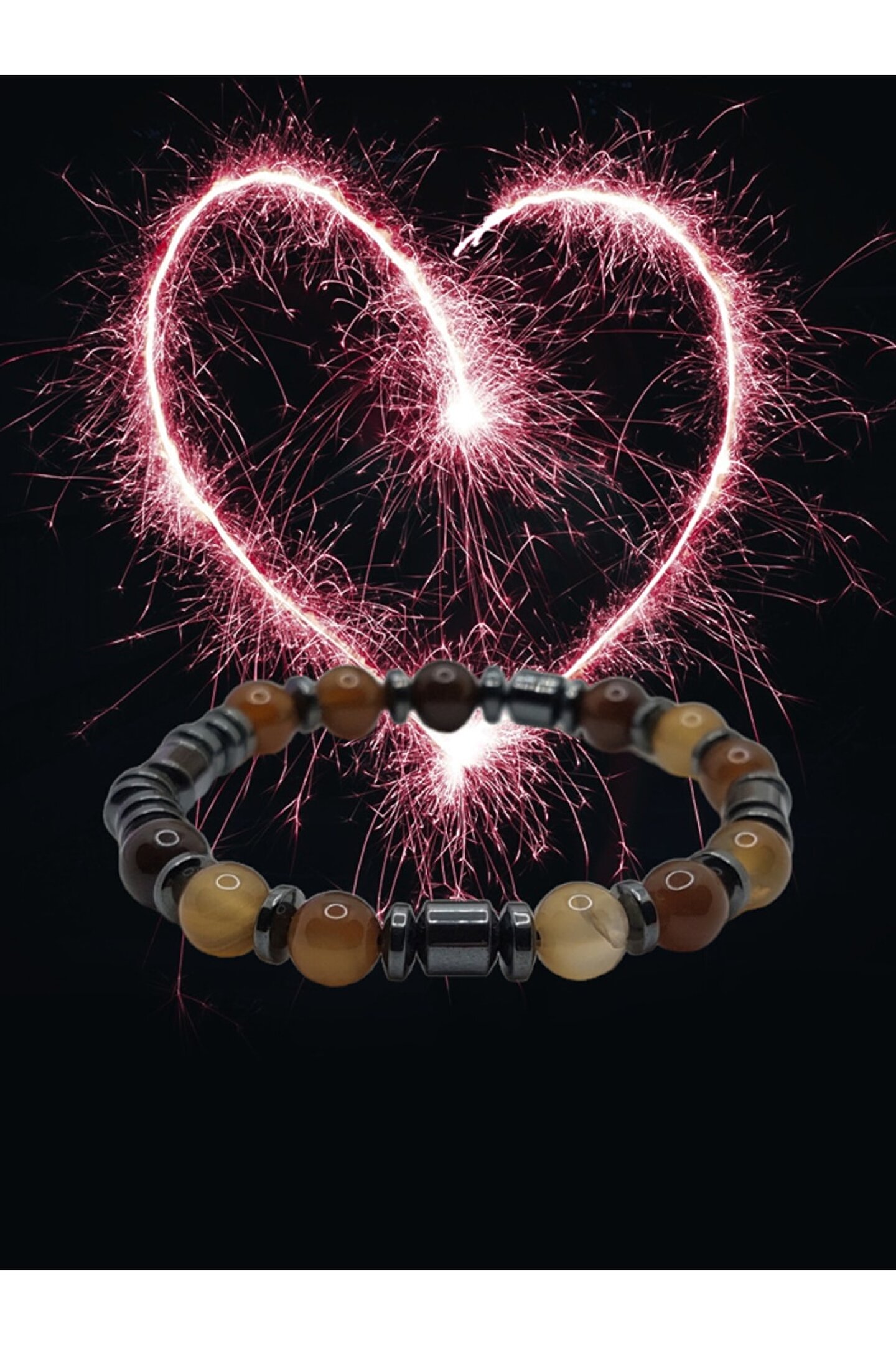 Akik: Akik başarı taşıdır. ; Stres, depresyon, zihin yorgunluğuna çok iyi gelir. ; Dolayısıyla panikatak için çok uygun bir taştır. ; Hematit: Açık yürekliliğe sahip kişilerin taşıdır. ; Kalbini yeni bir sevgiye açmak isteyenler üzerinde olumlu etkisi vardır. ; Ürünlerimiz, gerçek doğal taşlardan özenle hazırlanmaktadır.;