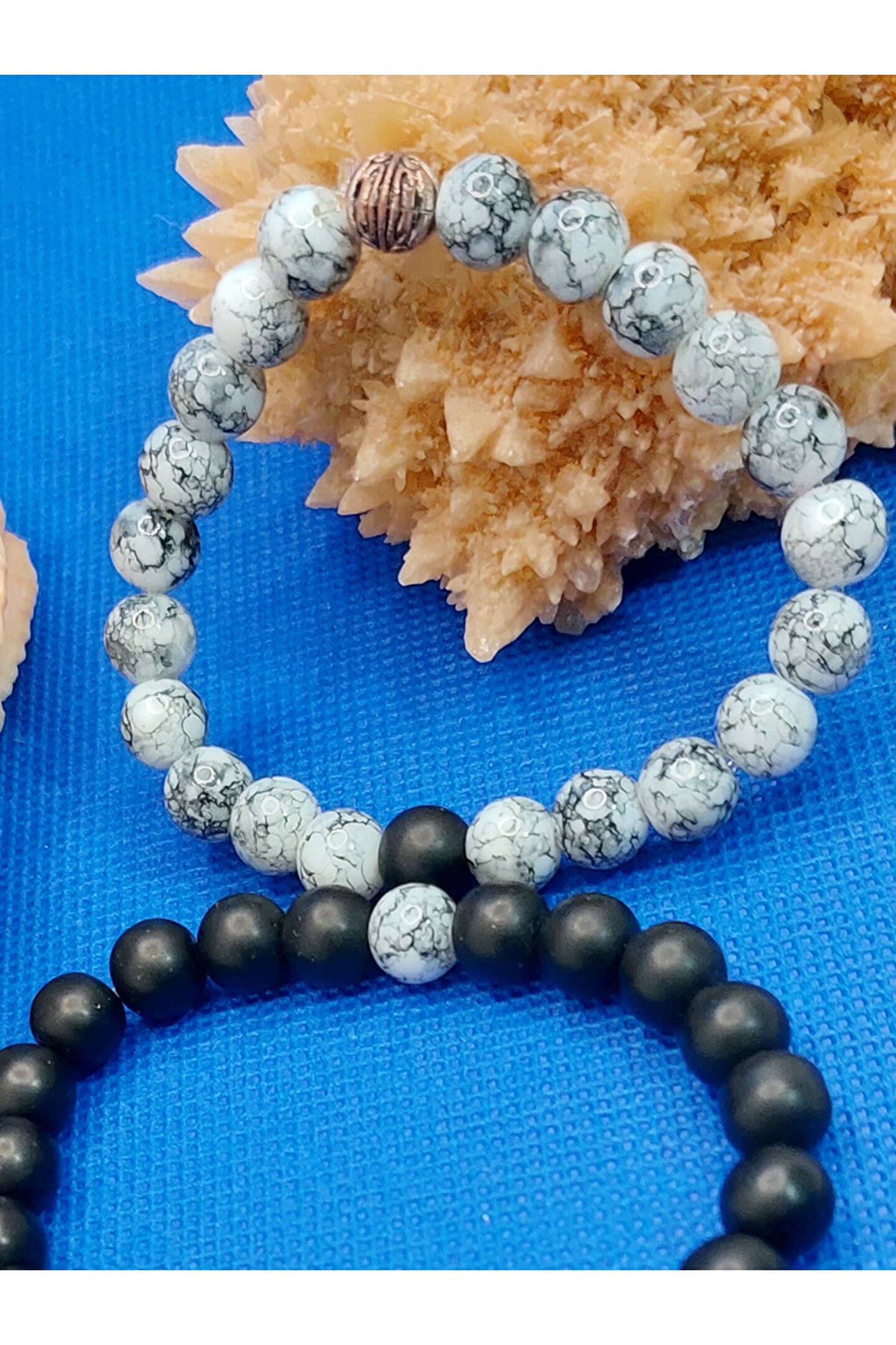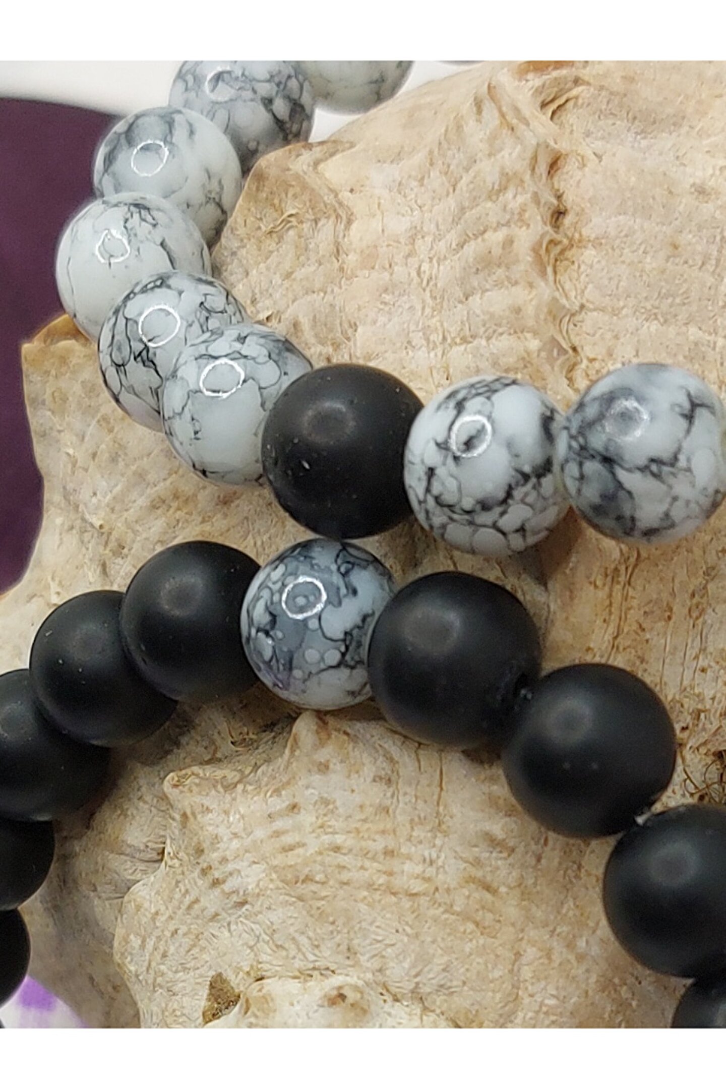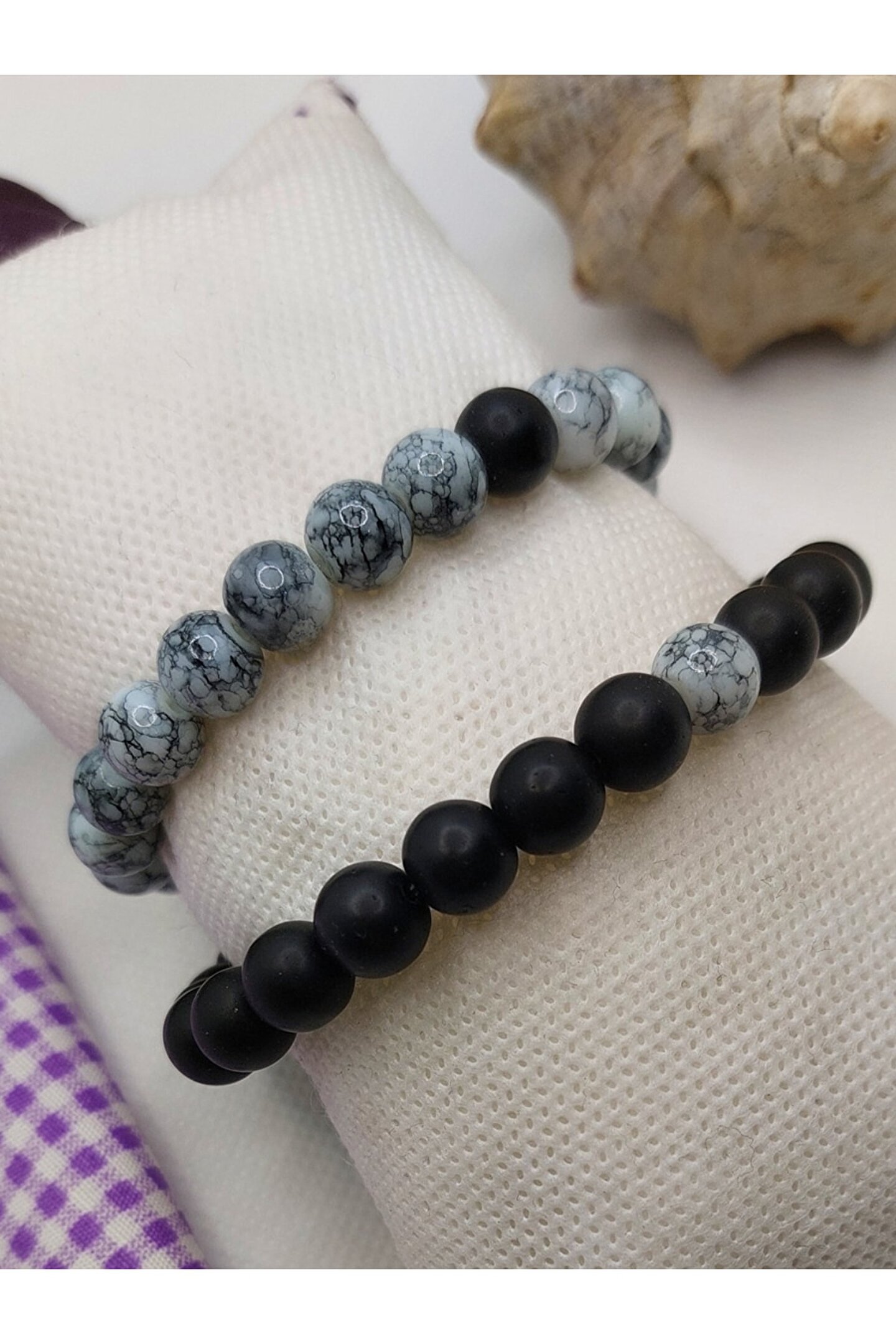 Doğal taş kullanımı sayesinde her bileklik benzersiz ve otantik bir görünüm sunar; Oniks ve havlit gibi değerli taşların birleşimi, şıklığı ve zarafeti bir arada barındırır; Çift sevgili bileklik tasarımı, sevginizi simgeleyen özel bir hediye seçeneği olarak öne çıkar; Taş materyalinin doğal yapısı, bilekliğin dayanıklılığını ve uzun ömürlü kullanımını garanti eder;
