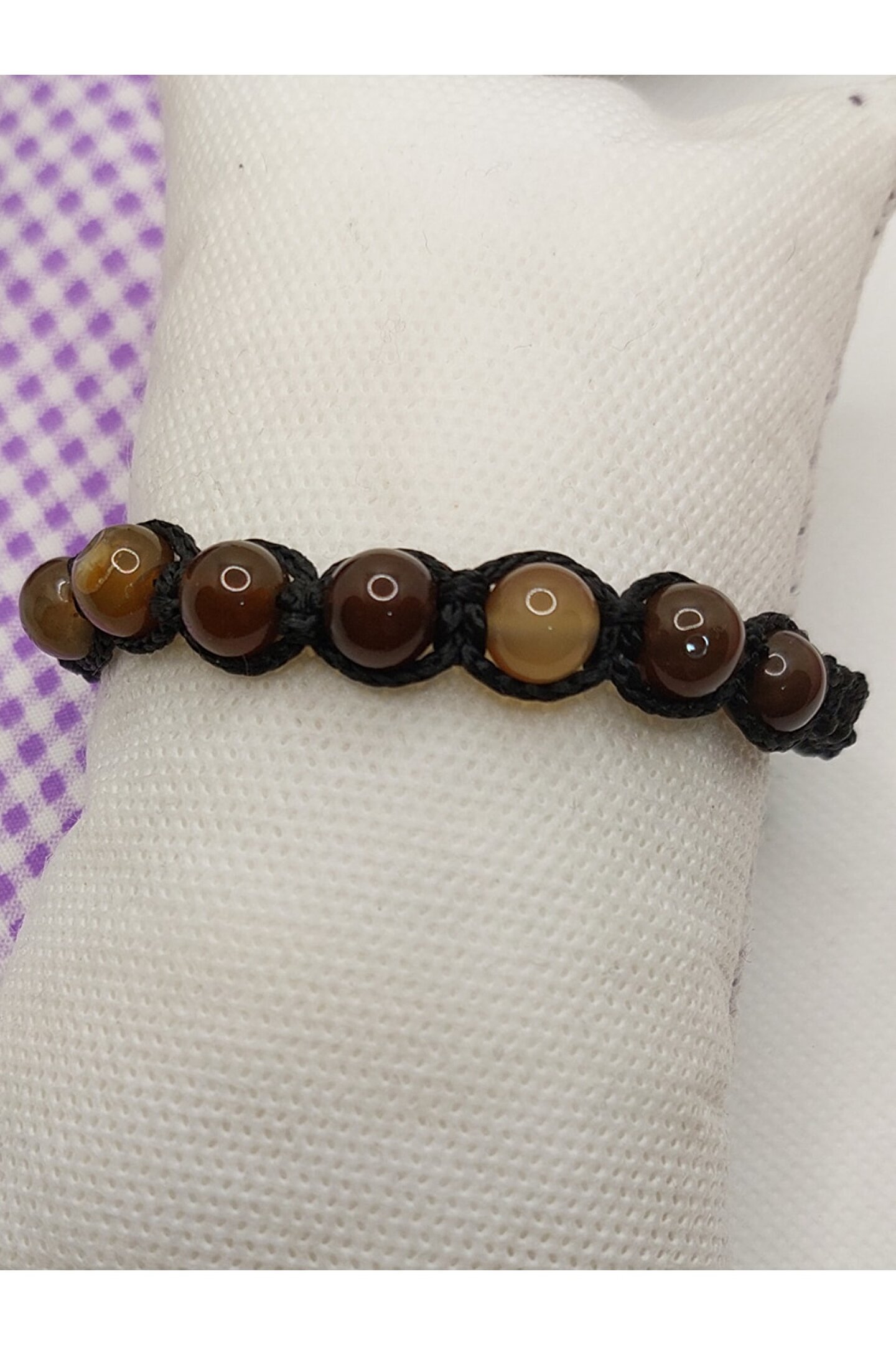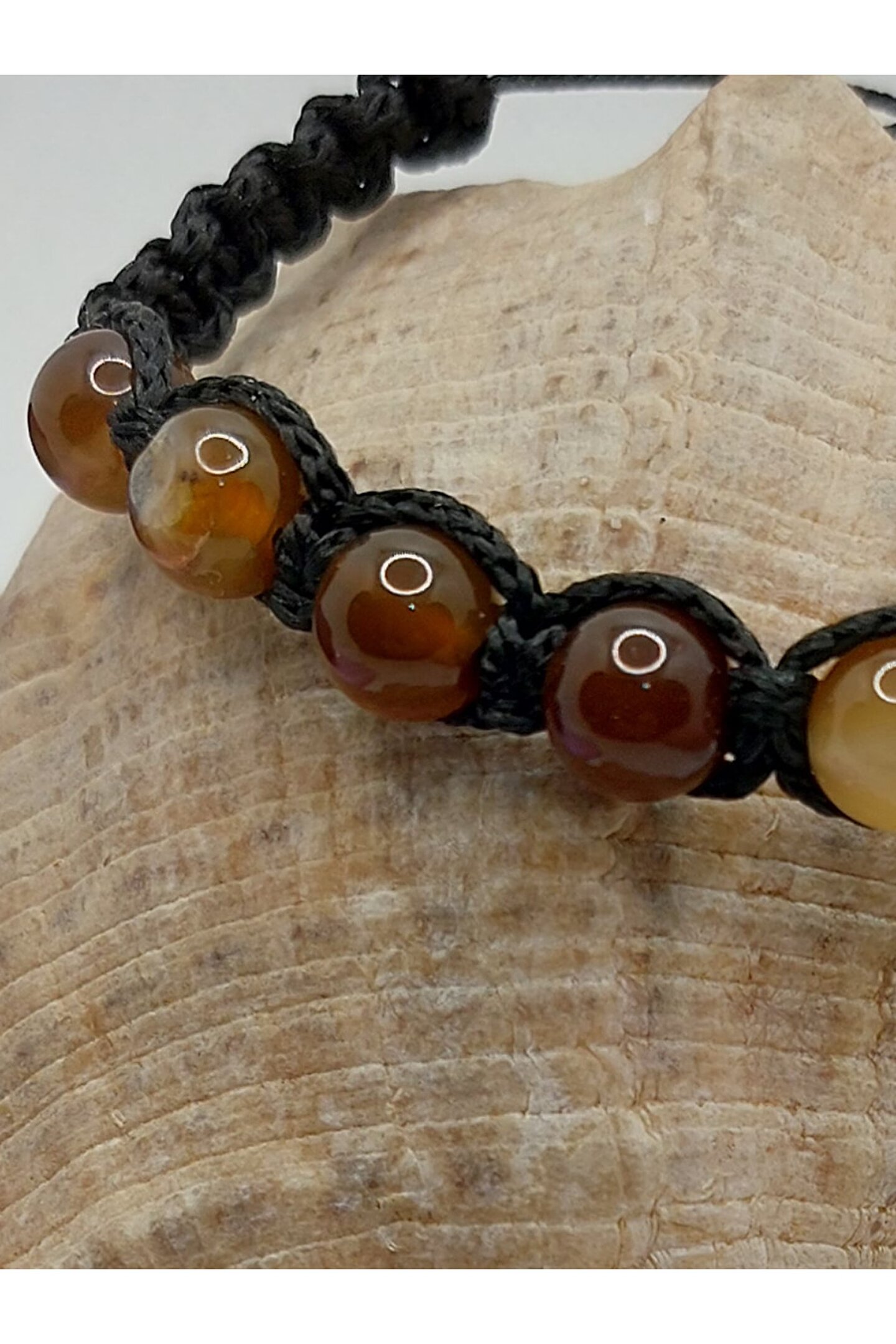 Doğal akik taşı kullanılarak üretilmiş, her bir bileklik benzersiz ve özgün bir tasarıma sahiptir; Asansörlü yapısı sayesinde bileklik, kolayca açılıp kapanabilir ve farklı boyutlarda ayarlanabilir; Kahverengi tonlarındaki akik taşı, zarif ve şık bir görünüm sunar; Doğal taş materyali ile hem dayanıklılık hem de estetik bir dokunuş sağlar;