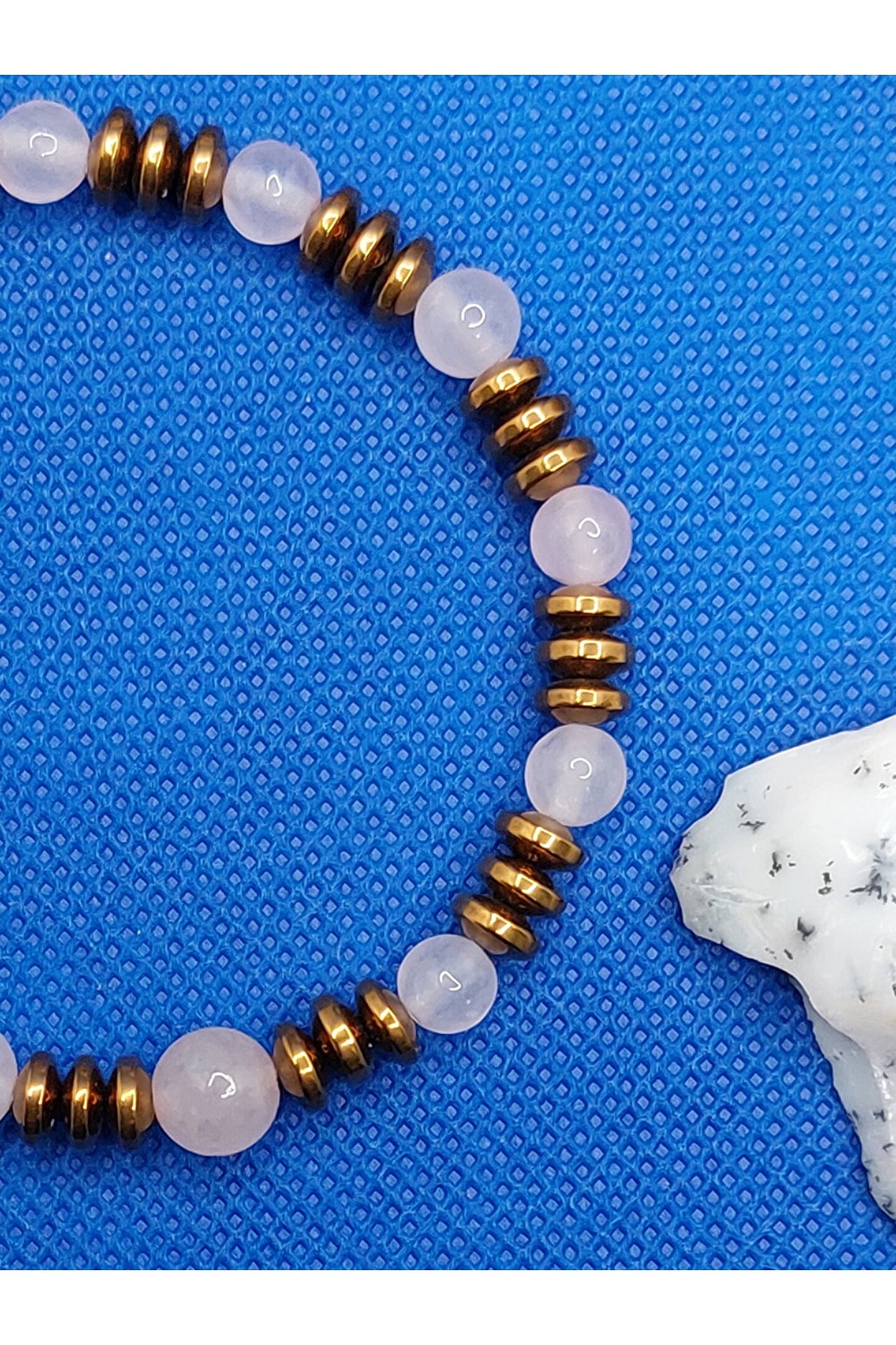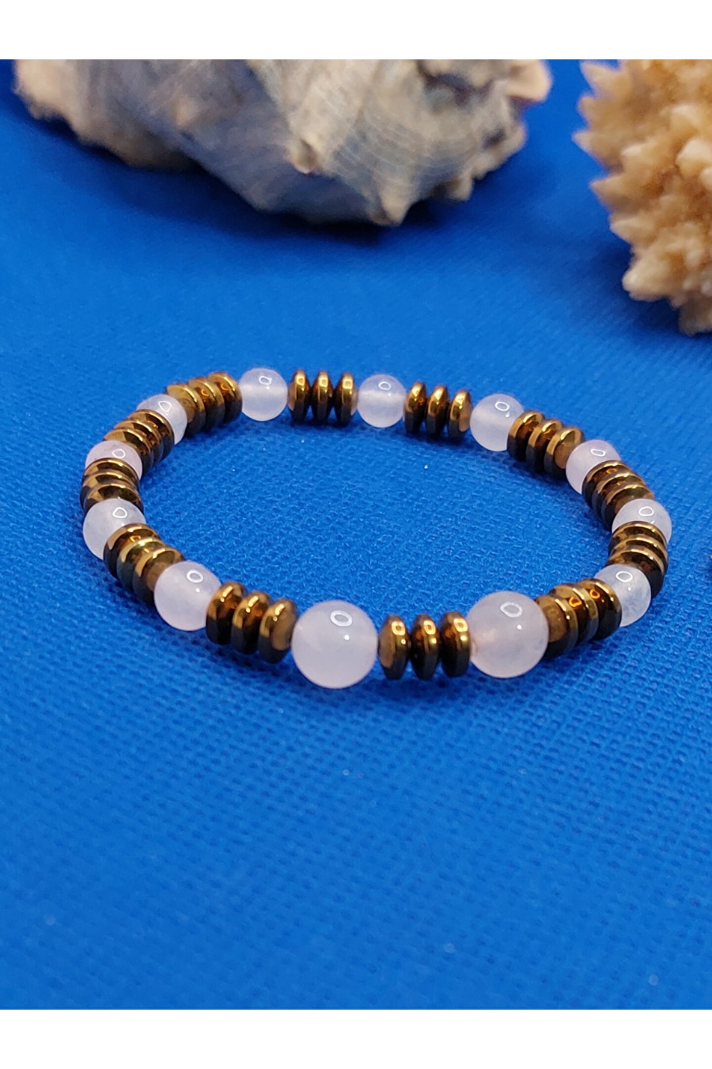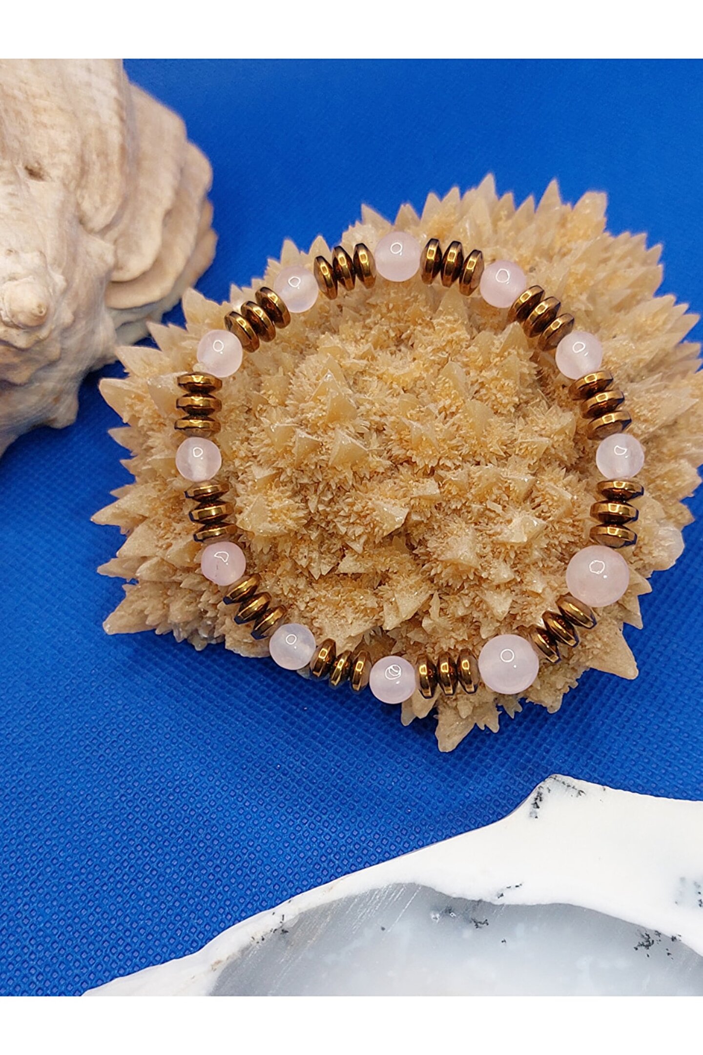 Pembe kuvars , kalp çakrasının taşıdır ve taşıyan kişiyi duygusal anlamda şifalandırır. ; Bulundurulduğu ortama sevgi, aşk, mutluluk ve huzur getirir. ; Olumsuz düşünceleri temizler, koşulsuz aşka yer açarak güçlenmesini sağlar. ; Romantik bağı teşvik eder. ; Hematit taşı, negatif enerjiyi temizlemeye yardımcı olur, stres ve endişe zamanlarında sakinleşmeyi sağlar . ; Çok koruyucu bir taştır ve topraklanmış kalmaya yardımcı olmak için taşınması çok iyidir. ; Kök Çakra ile çalışmak için de iyidir ve negatif enerjileri daha pozitif bir titreşime dönüştürmeye yardımcı olur. ; Ürünlerimiz, gerçek doğal taşlardan özenle üretilmiştir.;