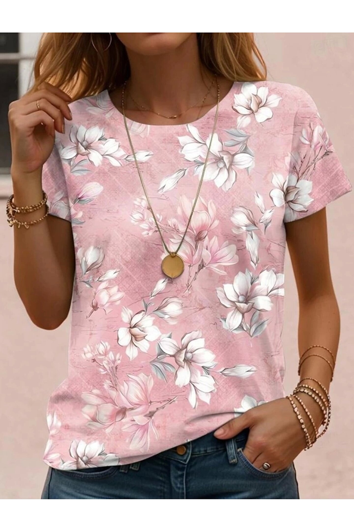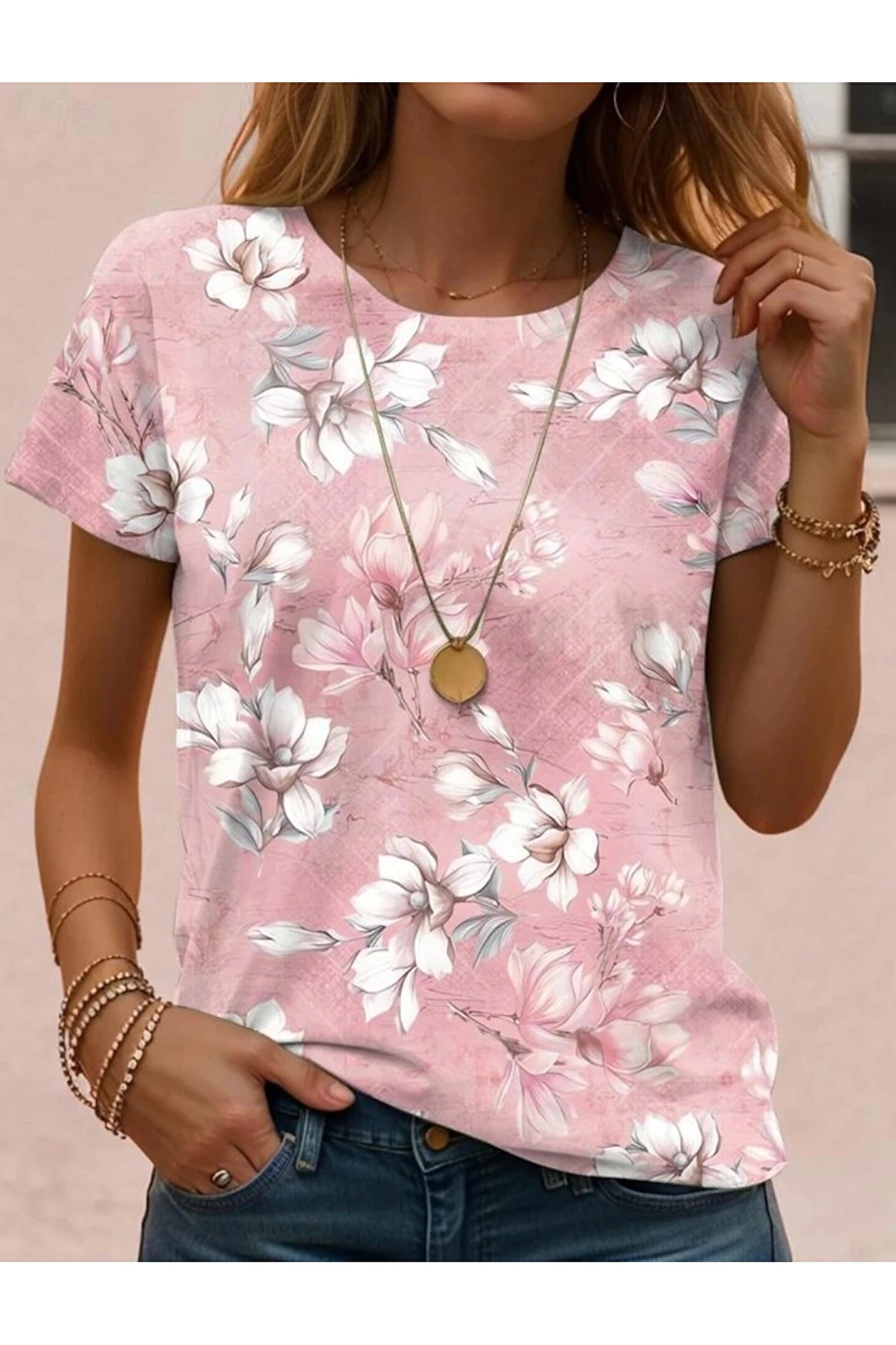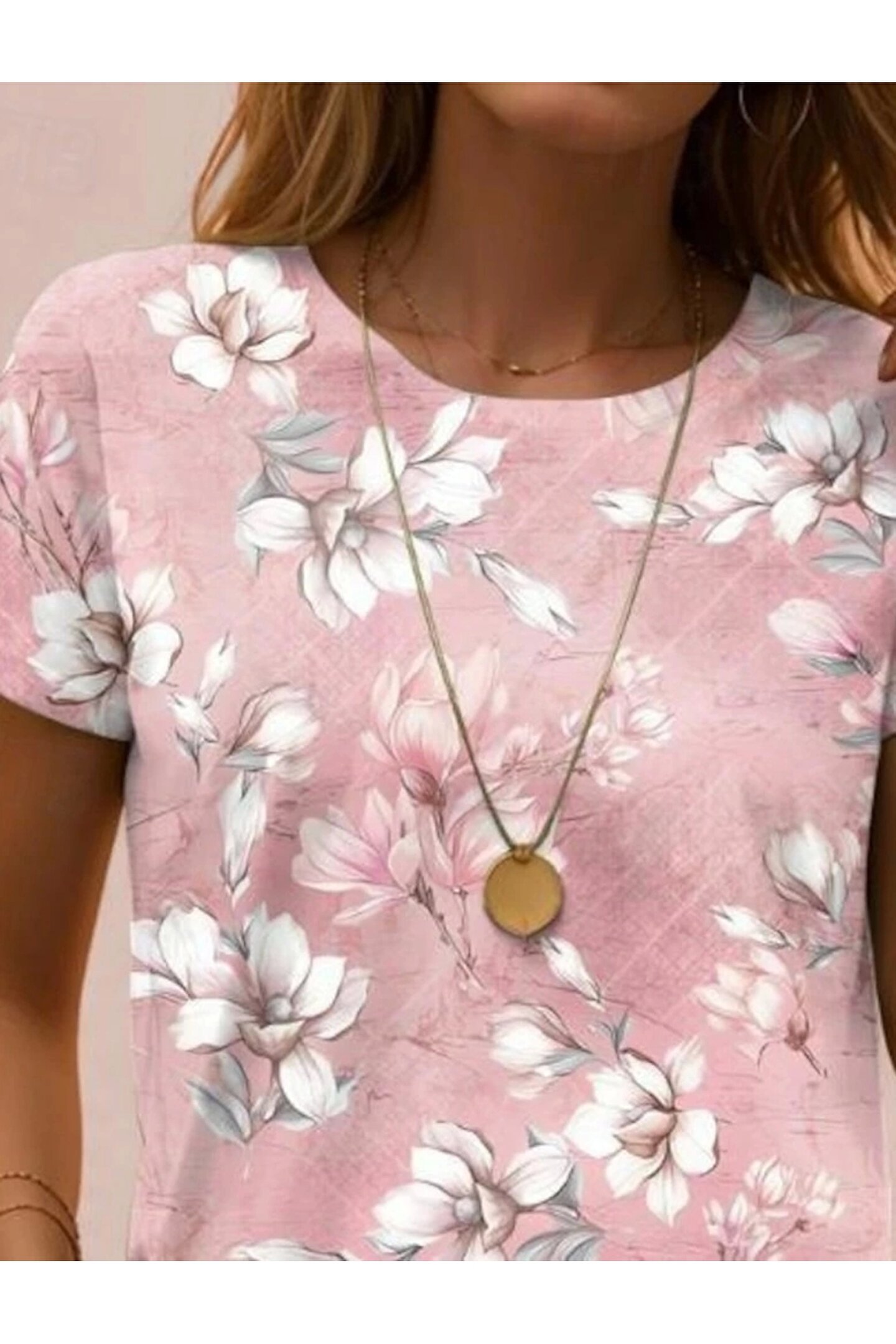 Kadın Kısa Kollu Bisiklet Yaka çiçek Desenli Viskon Bluz