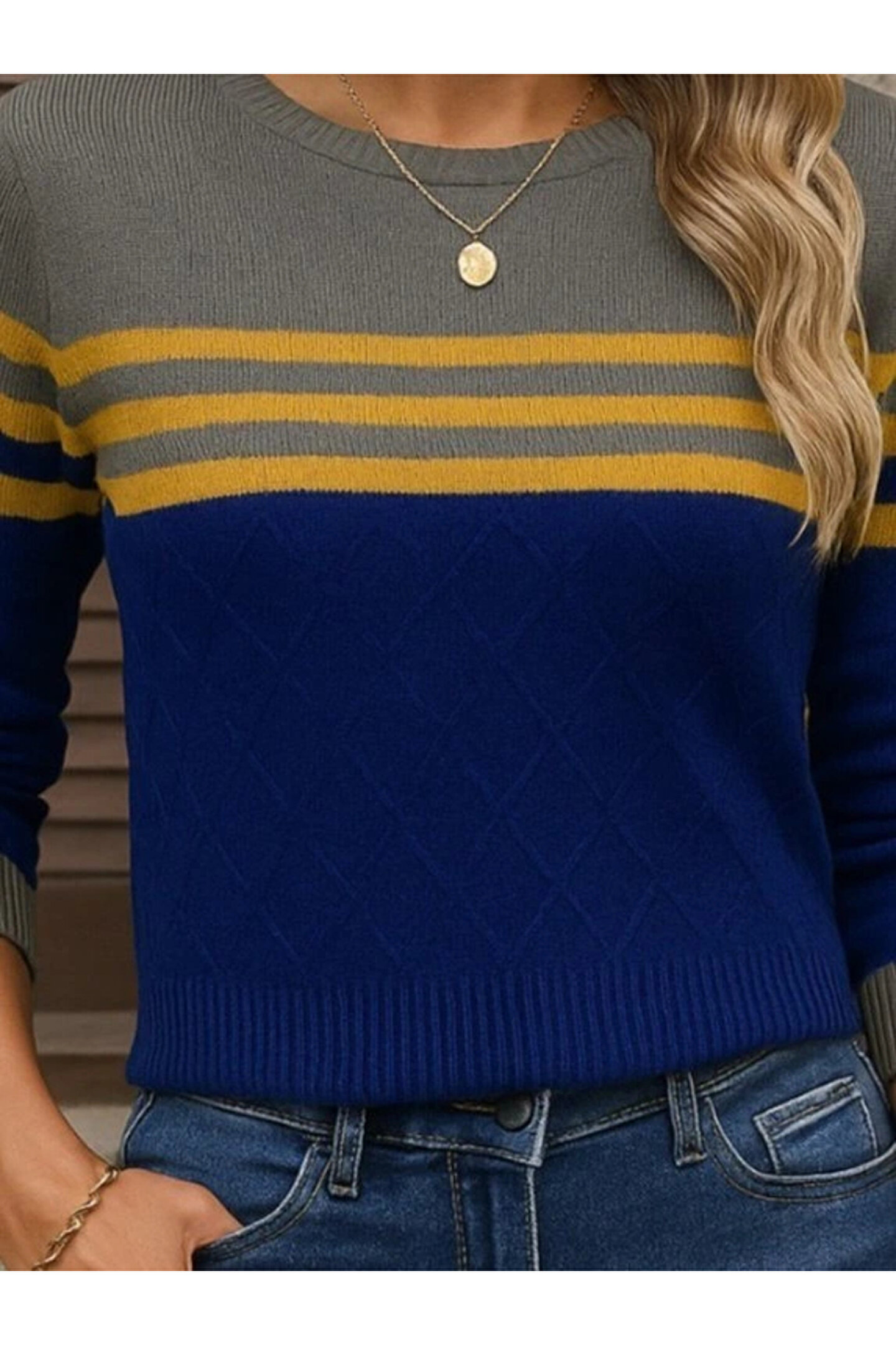 Kadın Uzun Kollu Bisiklet Yaka çok Renkli Triko Bluz