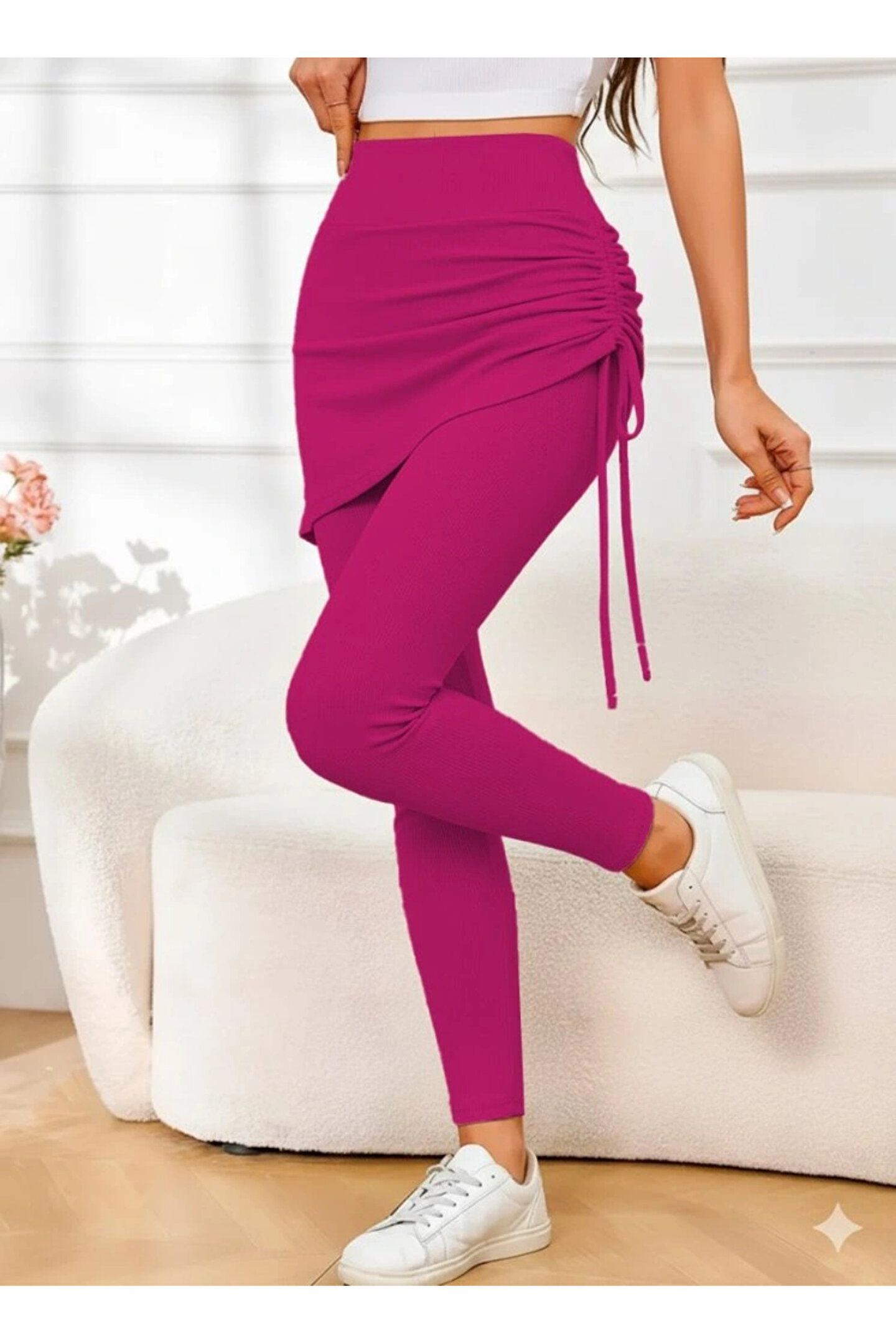 Kadın Yüksek Bel Yandan Büzgülü Alttan Uzun Kaşkorse Tayt Etek