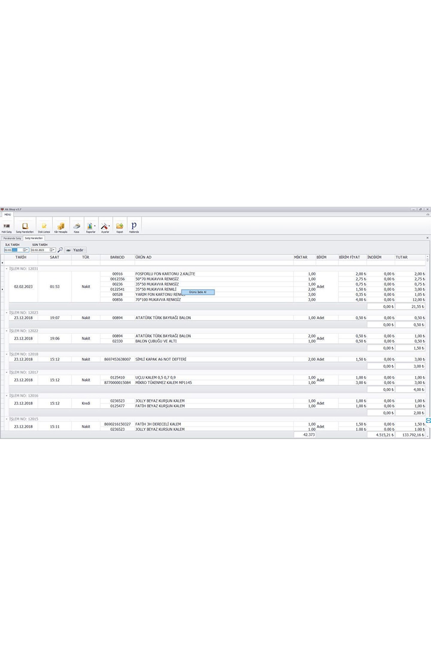 Barkodlu Satış Programı (1 Bilgisayara Özel Süresi Lisans) Ak Shop v3.7 Perakende Satış Programı , Barkodlu hızlı ve seri satış yapmak isteyen işletmeler için geliştirilmiştir.; Kullanışlı arayüzü ile zorluk yaşamadan kullanabileceğiniz, işyerinizi kolayca barkodlu satış uygulamasını geçirmenizde yardımcı olacak bir yazılımdır.; İşyerinizi yakınlarınıza emanet ettiğiniz zamanlarda yaşanabilecek eksik fiyatlardan ürün satışlarının önüne kolayca geçebilirsiniz.; Dokunmatik bilgisayarlar ile kullanılabilir.; Hızlı satış düğmeleri ile barkodsuz ürünleride kolayca bu sistemde kullanabileceksiniz.; Program Temel Özellikleri Barkodu olmayan ürünleri hızlı satış butonları ile kolayca satabilirsiniz.; ; Hızlı Satış butonları için ayrı ayrı grup sekmeleri oluştura bilirsiniz.; ; Hızlı Satış butonlarına ürün resimlerini ekleye bilirsiniz.; ; Müşteriler ödemelerinin bir kısmını Nakit bir kısmınıda Kredi Kartı ile yapabilir.; ; Ürün stok miktarlarını, ürün kartlarından kolayca değiştirebilirsiniz.; ; Ürün maliyeti hesaplatabilirsiniz.; ; Minimum Stok Miktarı uyarısı.; ; En Çok Satılan Ürünler ve En Çok Kâr Edilen Ürünleri grafik ile raporlama.; ; Filtreleme özelliği ile size aradığınız en uygun sonucu en kısa sürede getirecektir.; ; Satış sonunda müşterilerinize bilgi fişi verebilirsiniz.; ; Alınan para ve paraüstü iade özelliği ile eksik ya da fazla para vermenizi önler.; ; Yapılan satışları kasa bölümünden takip edebilirsiniz.; ; Satış miktarları raporu ile istediğiniz tarih aralıklarında hangi ürünlerin fazla sattığını görebilirsiniz.; ; Ciro raporu ile Cironuzu ve kazancınızı görebilirsiniz.; ; Satış işlemi sonrasında satılan ürünler otomatik olarak stokdan düşer.; ; Sepet özelliği ile aynı anda 4 faklı kişiye satış yapabilirsiniz.; ; Barkodlu Terazileri destekler.; ; Ürün satışı haricinde Gelir-Gider ekleyebilirsiniz.; ; Ürünlere 1 Fiyat tanımlayabilirsiniz.; ; Kullanıcı yetkilendirme.; ; -Kablosuz Barkod Okuyucu -Fiş Yazıcı Not: Kurulum Uzaktan bağlantı ile yapılmaktadır.; Sipariş verdikten sonra soru sor kısmından bizimle iletişime geçiniz.