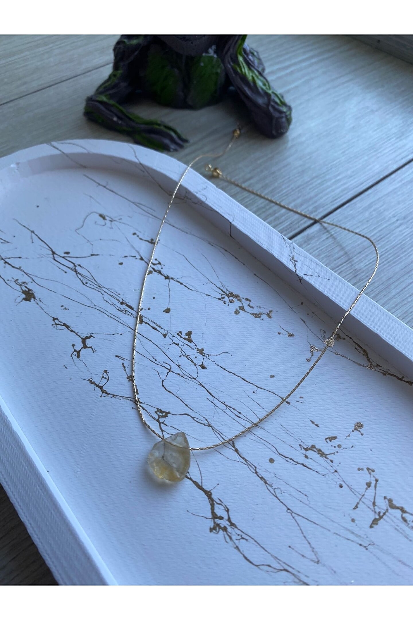 PelvedDesign Sitrin Doğal Taş Altın Kaplama Kolye