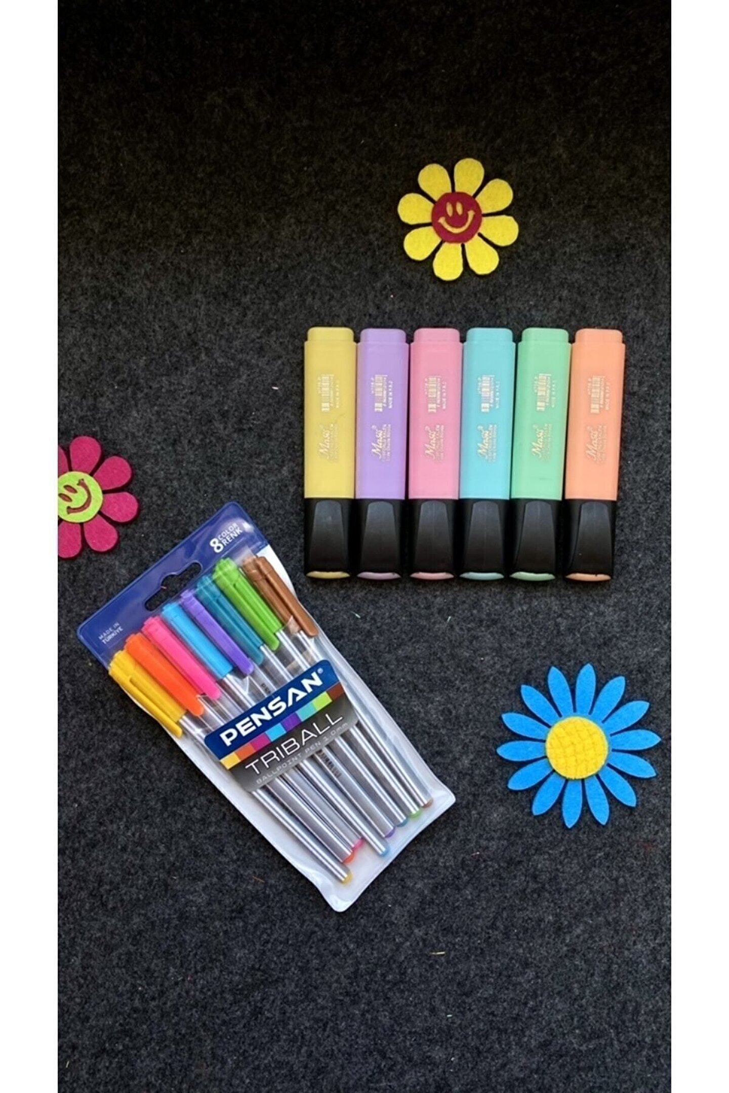 PENSAN TRİBALL TÜKENMEZ KALEM 8 RENK & MASİS PASTEL RENK FOSFORLU İŞARETLEME KALEMİ 6 RENK Masis Pastel Renk Fosforlu Kalem 6 Renk ile Yazıları Vurgulamanın Parlak Yolu Masis Fosforlu kalemler, özellikle notlarınızı veya belgelerinizi önemli bilgileri vurgulamak veya özetlemek için kullanılan popüler bir kırtasiye ürünüdür. Bu kalemler, renkli ve parlak mürekkepleri sayesinde belgeleri daha dikkat çekici hale getirir ve önemli noktaları daha belirgin hale getirir. ; Masis Fosforlu kalem ile 6 farklı renkte fosforlu kalemin sahibi olun. Her renk, belgenin belirli bir kısmını vurgulamak için kullanılabilir. Örneğin, kırmızı genellikle acil veya önemli bilgileri vurgulamak için kullanılırken, sarı veya yeşil daha az önemli bilgileri vurgulamak için tercih edilebilir. ; Masis Fosforlu kalemler; öğrenciler ders notlarını düzenlerken, iş profesyonelleri önemli belgeleri vurgularken veya herhangi birinin bilgiyi görsel olarak vurgulamak istediği herhangi bir durumda kullanışlıdır. Hem okul hem de iş dünyasında yaygın olarak kullanılan bu kalemler, bilgilerin daha iyi anlaşılmasına ve hatırlanmasına yardımcı olabilir. ; Sonuç olarak, Masis fosforlu kalemler, bilgileri vurgulamak ve önemli noktaları belirtmek için kullanılan pratik ve renkli bir araçtır. Belgenizdeki önemli bilgileri öne çıkarmak veya notlarınızı daha etkili bir şekilde düzenlemek istiyorsanız, bir fosforlu kalem tercih edebilirsiniz. ; Triball Tükenmez Kalem 8 Renk ile Yazma Dünyanızda Daimi Bir Yoldaş Kazanın Triball tükenmez kalemler, yazma dünyasının vazgeçilmez bir parçasıdır ve birçok insanın günlük yaşamında sıkça kullandığı yazma araçlarından biridir. Hem öğrencilerin hem de profesyonellerin tercih ettiği bu kalemler, çeşitli avantajları ve kullanışlı özellikleri ile bilinir. ; Bir tükenmez kalem, adını mürekkep deposunun tükenmez olmasından alır. Bu, kalem kullanıcılarına uzun süreli yazma deneyimi sunar, çünkü mürekkep depo tükenmeden çok sayıda sayfa yazabilirsiniz. Bu özellik, özellikle not almak veya uzun metinler yazmak için idealdir. ; Triball tükenmez kalemler, net ve kesintisiz bir yazma deneyimi sunar. Mürekkep akışı sorunsuzdur ve yazı yazarken sıçrama veya leke bırakma olasılığı oldukça düşüktür. Bu, yazıların temiz ve düzenli görünmesini sağlar. ; Triball tükenmez kalemlerin sunduğu 8 farklı renk seçeneği ile metinleri veya çizimleri renklendirmenize yardımcı olabilir. İş veya okul notlarından günlük günlüğe kadar her türlü yazım ihtiyacını karşılamak için çeşitli renklerde mürekkep bulabilirsiniz. ; Triball tükenmez kalem, uzun süreli yazma deneyimi, temiz ve düzenli yazılar ve çeşitli renk seçenekleri ile yazma dünyasının daimi bir yoldaşıdır. Hem iş hem de kişisel kullanım için mükemmel bir tercihtir ve yazı yazarken konfor ve güvenilirlik sunar. ;