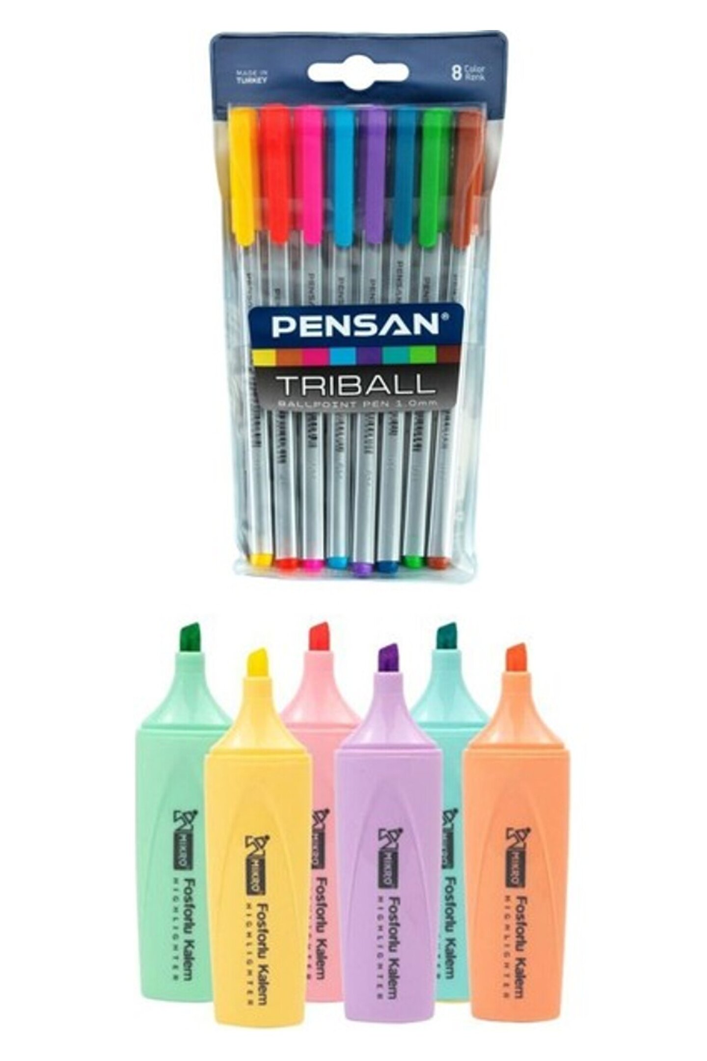 Pensan Triball Tükenmez Kalem Seti 8 Renk ve Mikro Fosforlu Kalem 6 Renk Kırtasiye Ürünleri