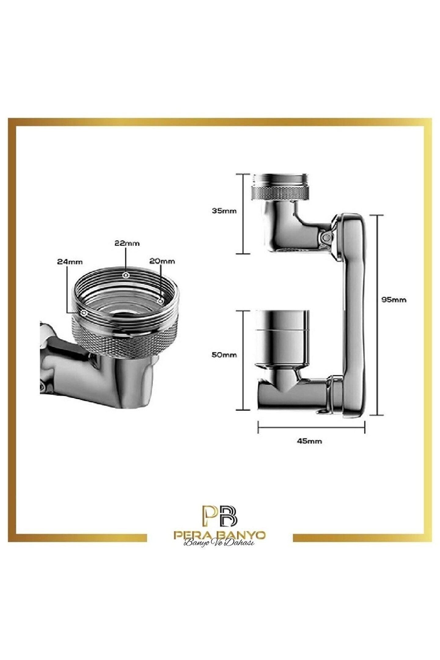 1080 derece dönen musluk ucu, geniş bir hareket alanı sunarak kullanım kolaylığı sağlar; Dayanıklı yapısı sayesinde sık kullanımlarda bile performansından ödün vermez;