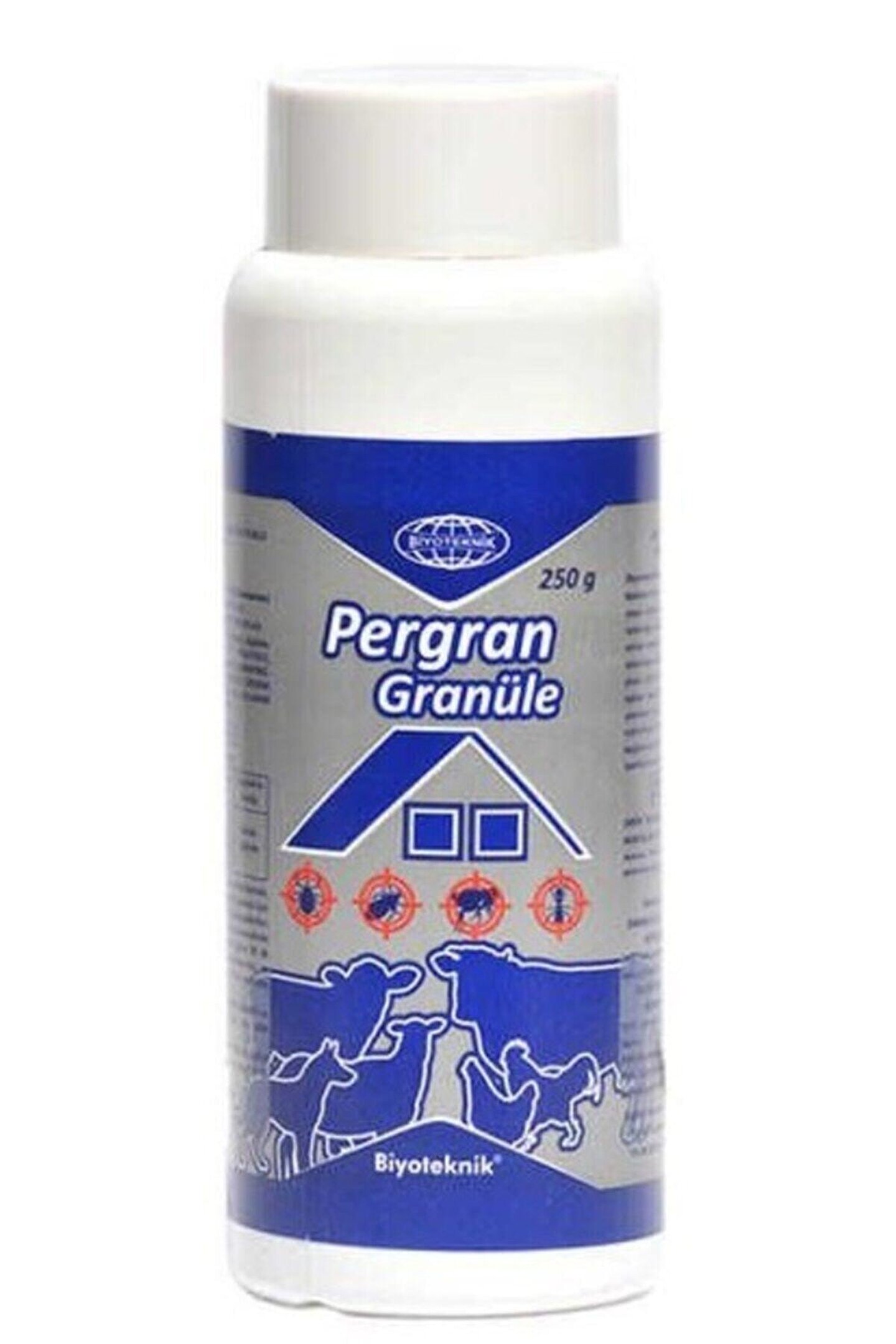 Biyo- Teknik Pergran Granüle 250 gr. Pergran granüle ahır, ahıl, boks gibi hayvan barınaklarında; Kanatlı hayvanların kümes ve tüneklerinde; Aşağıda belirtilen canlıların mücadesi için direkt serpme şeklinde tatbik edilir.; Uygulama alanına göre tabloda belirtilen miktarlarda kullanımı uygundur.; Kullanma Talimatı: Uygulama esnasında barınak ve kümeslerde yemlik ve suluk bulundurmamalıdır.; Uygulama yapıldıktan sonra ortam 30 dk kapalı tutulur.; Sonra yarım saat kadar boş kapalı alanı havalandırınız,; Uygulamadan arta kalan ürünü temizleyiniz.; Hayvanların ürün ile temasının ve yemesinin önüne geçiniz.; Kullanılacağı Zararlı Organizmalar: Kene İçin : ; Uygulama alanı ve şekli: Boş kapalı alan serpme şeklinde uygulanır. ; Uygulama Dozu: 20 gram ürün; Aktif madde dozu: m2 0,1 g.a.i /m2 ; Uygulama aralığı: Gerektiğinde; Bit İçin:; Uygulama alanı ve şekli: Boş kapalı alan serpme şeklinde uygulanır. ; Uygulama Dozu: 20 gram ürün; Aktif madde dozu: m2 0,1 g.a.i /m2 ; Uygulama aralığı: Gerektiğinde; Pire İçin:; Uygulama alanı ve şekli: Boş kapalı alan serpme şeklinde uygulanır. ; Uygulama Dozu: 20 gram ürün; Aktif madde dozu: m2 0,1 g.a.i /m2 ; Uygulama aralığı: Gerektiğinde; Karınca İçin:; Uygulama alanı ve şekli: Boş kapalı alan serpme şeklinde uygulanır. ; Uygulama Dozu: 30 gram ürün; Aktif madde dozu: m2 0,15 g.a.i; Uygulama aralığı: Gerektiğinde; Ağır siparişler genel olarak PTT Kargo ile gönderilmektedir. 10 desi/kg altındaki siparişler ise genel olarak Sürat Kargo ile gönderilecektir.