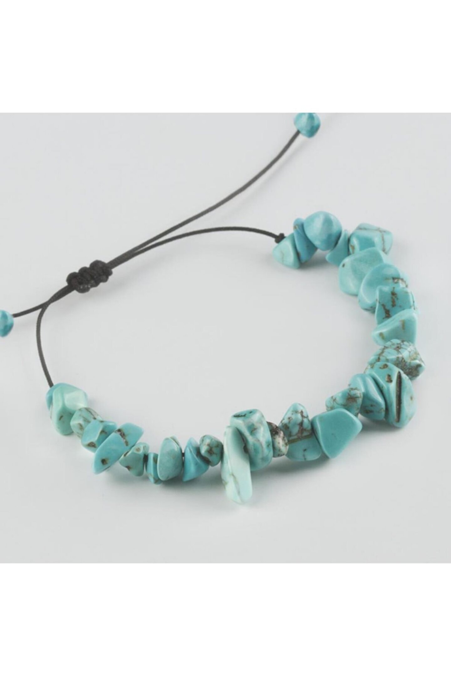 Doğal taş kullanımı sayesinde her bileklik benzersiz ve otantik bir görünüm sunar; Turkuaz rengi ile dikkat çeken bu bileklik, şıklığınızı tamamlayacak zarif bir aksesuardır; Kırık doğaltaş detayı, bilekliğe modern ve trend bir hava katarak günlük kullanım için idealdir; Doğal taşların sıcaklığını ve estetiğini yansıtan bu bileklik, her tür kıyafetle uyum sağlar;
