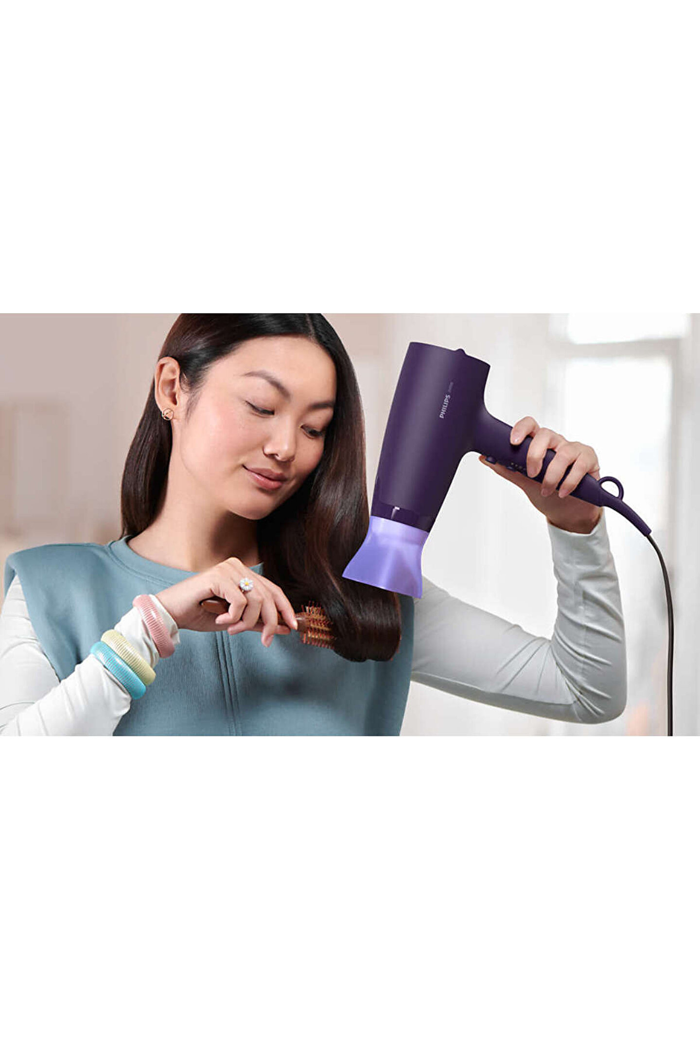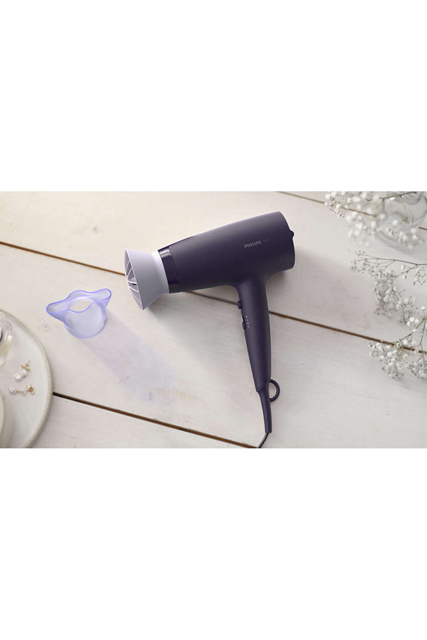3000 Serisi Saç Kurutma Makinesi BHD340/13 2100 W ile güçlü kurutma 2100 W gücündeki bu saç kurutma makinesi her gün güzel sonuçlar için güçlü hava akışı yaratır.; ThermoProtect etkisi: Benzersiz tasarımlı ThermoProtect başlığı, günlük bakım için sıcak ve soğuk havayı güçlü bir şekilde karıştırır.; Saçınızı hızla kuruturken sıcaklığı 15°C düşürür.