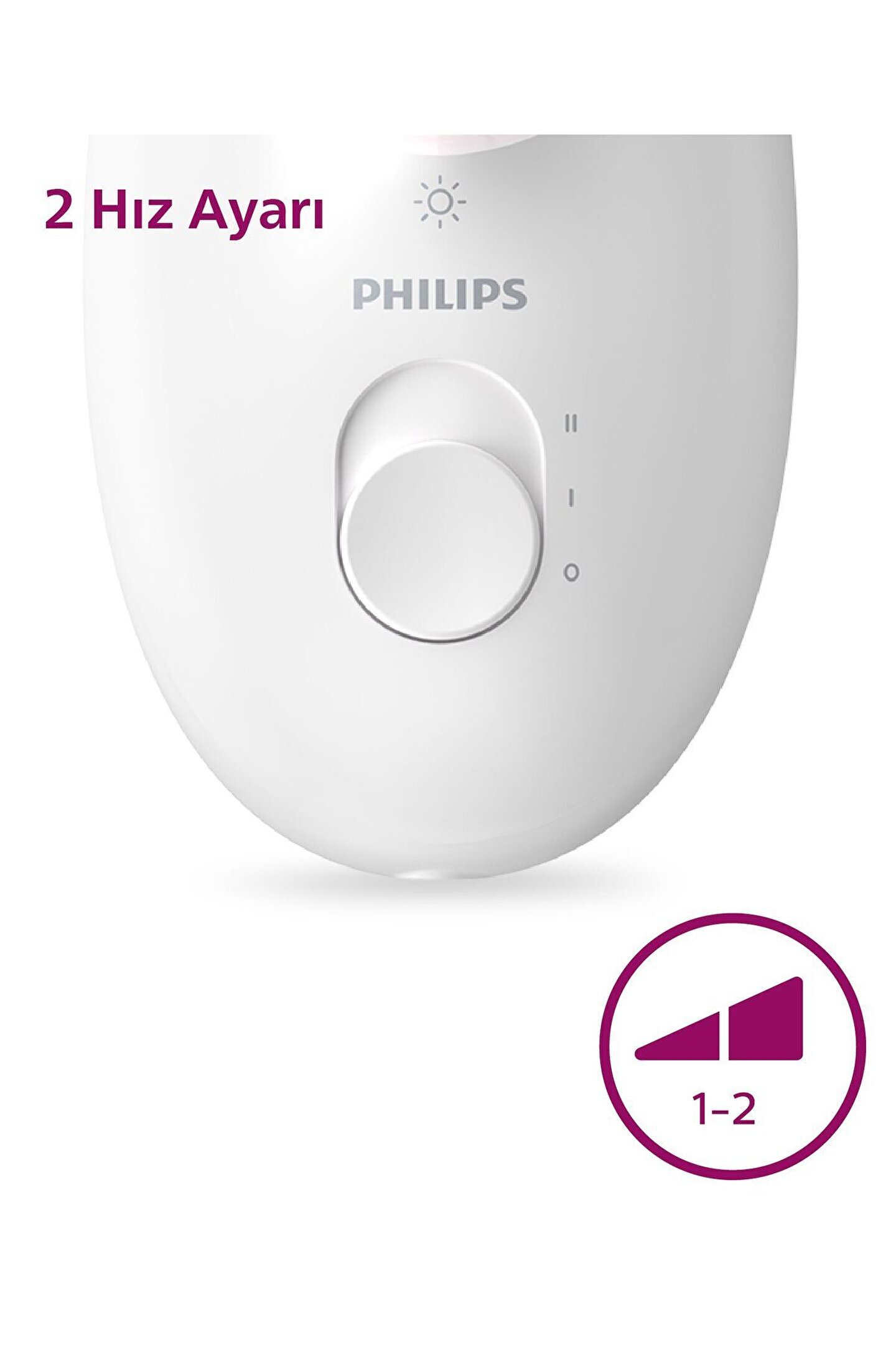 Philips epilatör 0.5 mm ölçüsüne kadarki tüyleri kolaylıkla alabilir.; Tüm vücut epilatör 2 hız ayarı ile yavaş ya da hızlı olarak kullanılır.; Kullanıldığı alanın tüy kalınlığına göre bu ayarlama yapılabilir.; Bikini bölgesi epilatör saklama çantası ile beraber sunulur.; Küçük boyutu sayesinde kolaylıkla taşınabilir.; Philips BRE255/05 15 volt değerindeki gerilim gücüne sahiptir.; Kadın epilasyon aleti ışıklı olması yönüyle görüş alanında olan tüylerin fark edilmesini ve böylece tamamen pürüzsüz bir görüntünün oluşmasını mümkün kılar.; Philips BRE255/05 Satinelle Essential kablolu kompakt epilatör gövdesi elle rahatlıkla kavranabilir ve vücut üzerindeki kıvrımlarda hereket etmek kolay hale gelir.; Kablolu epilasyon aleti başlığı çıkarılıp takılabilir.; Kurulumu oldukça basittir.; Epilatör koltuk altı cihazı hassas bölgeler için baskı kurmaması yönüyle tahriş oluşturmaz.; Bacak epilasyon aleti masaj başlığı ile birlikte sunulur.; Philips Bre 255/05 Satinelle Essential kablolu kompakt epilasyon cihazı hassas cımbız ve epilasyon disklerine sahiptir.; Yıkanabilir başlığa sahip olan Philips BRE255/05 Satinelle Essential temizlik yönünden avantaj sağlar.;