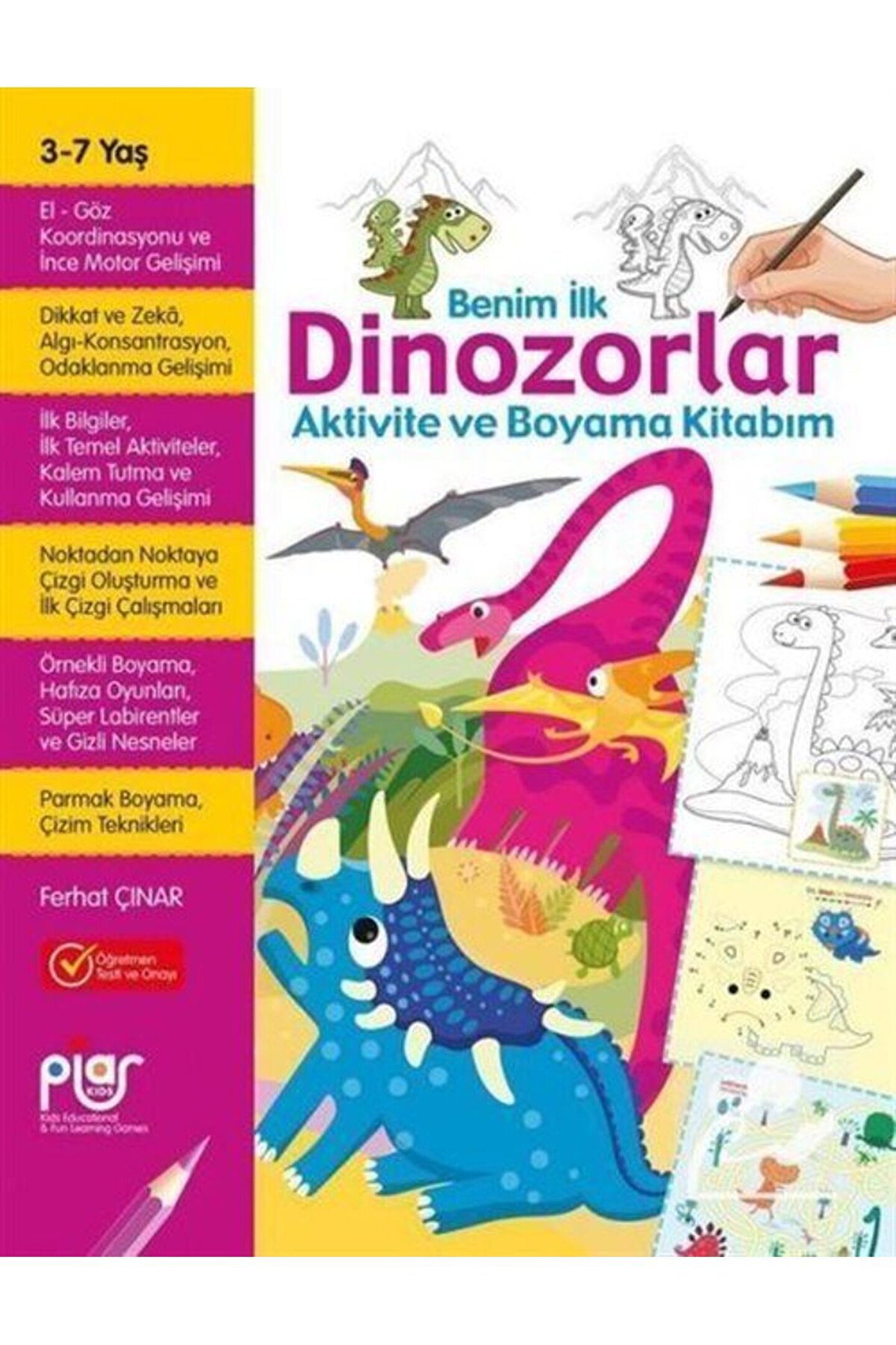 Benim İlk Dinozorlar Aktivite ve Boyama Kitabım / 3-7 Yaş / 48 Sayfa / Tamamı Renkli ve Resimli İlk Bilgiler, İlk Temel Aktiviteler, Kalem Tutma ve Kullanma Gelişimi, Noktadan Noktaya Çizgi ve Şekil Oluşturma, İlk Çizgi Çalışmaları, Örnekli Boyama Sayfaları, Hafıza Oyunları, Süper Labirentler, Parmak Boyama ve Çizim Teknikleri, Gizli Nesneler Erken çocukluk dönemi eğitici ve öğretici faaliyetlerde kullanılan yöntemlerden biri de etkinlik ve boyama çalışmalarıdır. "Dinozorlar" kitabındaki etkinlikler, çocukların gelişim özellikleri, ilgi ve ihtiyaçları göz önünde bulundurularak; “Okul Öncesi Eğitim Programı” kazanım ve göstergelerine uygun olarak hazırlanmıştır. Bu kitap; çocuklarda, ince motor gelişimini destekler. El-Göz Koordinasyon gelişimine katkı sağlar. Kalem kullanma becerisini geliştirir. Algı, odaklanma, konsantrasyon, düşünme ve düzen becerisi kazandırır. Ayrıca; mantık ve çıkarımda bulunma, zeka ve dikkat gelişimine destek sağlar.