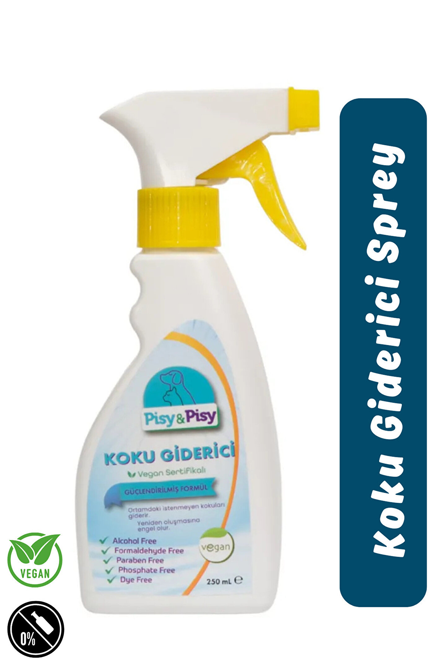 Pisy & Pisy ile istenmeyen Kokulara Elveda! Vegan sertifikalı Pisy & Pisy Koku Giderici, istenmeyen kokuları hapsederek değil, tamamen yok ederek ortamı ferahlatır! Evcil hayvanlarınızın tuvaletinde oluşan kokuların yanı sıra sigara, çöp ve ağır yemek kokuları gibi rahatsız edici kokuları da etkili bir şekilde giderir. Alkol, paraben, formaldehit, fosfat ve boya içermeyen güçlendirilmiş formülüyle sağlığınızı ön planda tutar. Kötü kokulara karşı kalıcı çözüm sunar ve yeniden oluşmalarını engeller. Doğal ve güvenilir bir ferahlık için Pisy & Pisy!