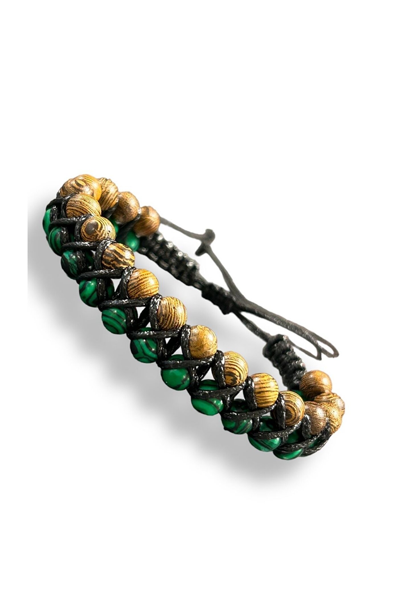 Aa kalite 6mm malahit taşı ve ud ağacı kullanılarak yapılmıştır. Tamamen el yapımıdır. Ayarlanabilir unisex bir bilekliktir. Her bileğe uygundur. 36 adet taş kulanılmaktadır. UD AĞACI: Öd ağacı uzun yıllardan beri varlığını sürdüren, ikiçenekliler sınıfına ait bir türdür. Ağaç Thymelaeaceae familyasına aittir. Meyveleri armut biçimindedir ve keskin bir kokusu vardır. Bu koku gövde ve dallarda çok daha yoğundur . Malahit taşı: Takı sektörü tarafından sıklıkla tercih edilen malakit taşının; sakinleştirici etkisi vardır ve negatif duyguları pozitife çevirmesiyle bilinir. Ayrıca vücudu rahatlatma, uykuya rahat dalma; suçluluk, korku, cesaretsizlik gibi duygulardan arınma, hafızayı güçlendirme, ağrıları kesme gibi özelliklere de sahiptir