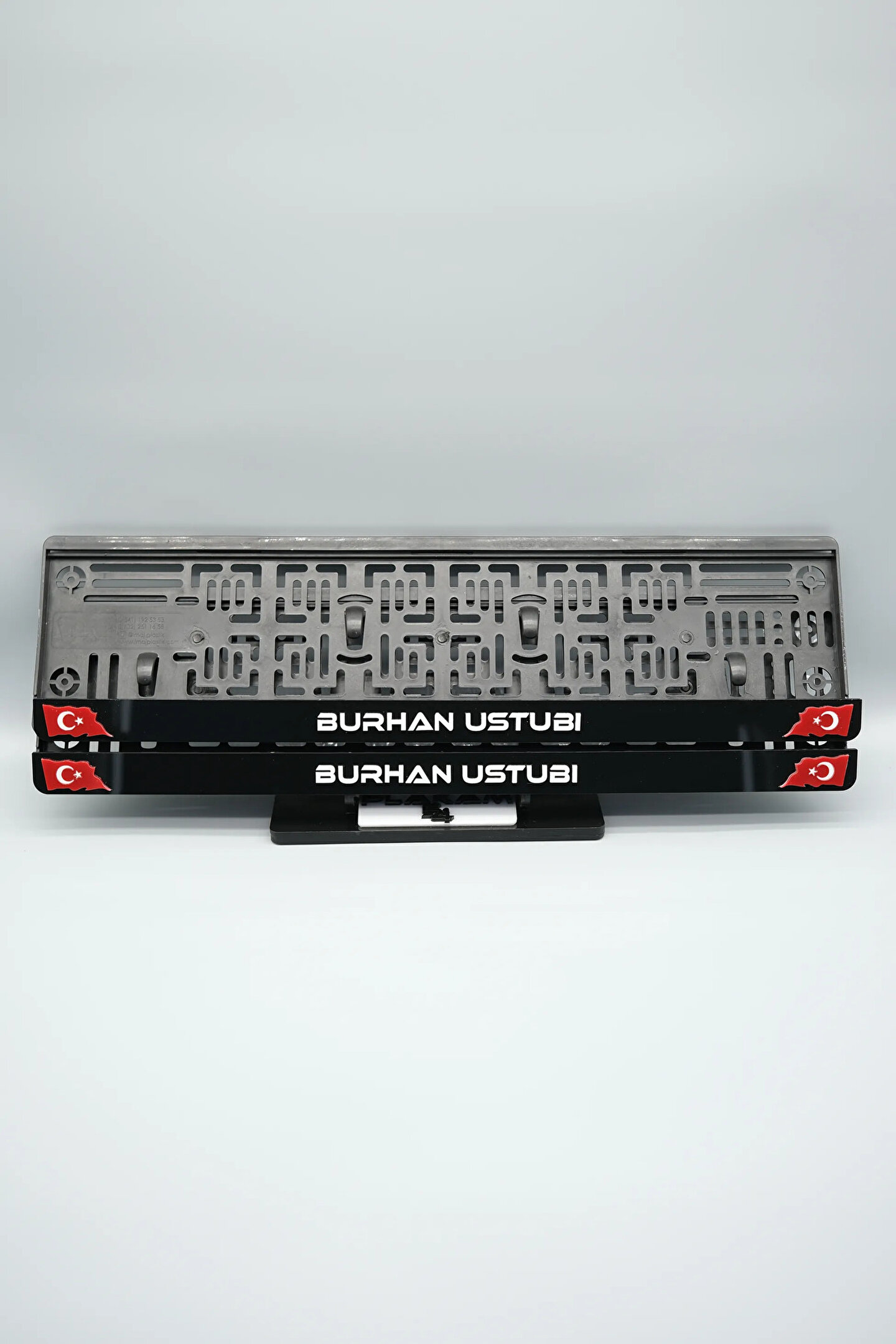 Sıradanı Sıradışıya Çevir! Lazer Kesim Plakalıklarımızla Tanışın!; Özellikler:; Alt çıta ve plakalık olmak üzere toplam 4 parçadan oluşur.; 3D kabartmalı veya gümüş tasarımı ile dikkat çeker.; UV baskı değil, silinme veya dökülme yapmaz.; Standart araba plakası ölçülerindedir (11x52 cm plakalar için uygundur).; Kalite ve Şıklığı Bir Arada Sunuyoruz:; Ürünlerimiz, parlak 1. sınıf kalitede pleksiyi lazer kesim kullanılarak özel yapıştırıcılarla birleştirilerek üretilir.; Sadece plaka değil, aracınıza özgü bir tarz katmanın en havalı yolu!; Dayanıklılıkta Sınır Tanımıyoruz:; Uzun süreli kullanıma uygun olan plakalıklarımız, özel yapıştırıcı teknolojisi ile birleşerek aracınızın stilini korur.; Silinme veya dökülme gibi sorunlarla karşılaşmadan uzun ömürlü bir deneyim sunar.; 3D Kabartmalı Tasarım:; Plakalıklarımızın eşsiz 3D kabartma tasarımı, sizi diğer araçlardan farklı kılacak.; Görsel şölenimiz aracınıza estetik bir dokunuş katıyor.; Kolay Montaj, Büyük Etki:; Aracınıza özel tasarımı hemen kullanmaya başlamak için ürünlerimizin montajı oldukça basittir.; Size zahmetsiz bir kişiselleştirme deneyimi sunuyoruz.;Gerçek Görseller, Gerçek Ürün:; ürün görsellerimizle alacağınız ürün arasında çita malzeme fark yok.; Ürün özellikleri ile ilgili olan sorularınızı ürünün altında yer alan Satıcı Soruları bölümünü tıklayarak sorabilirsiniz.;Siparişiniz ile ilgili sorularınızı veya taleplerinizi Sipariş Detay'da yer alan Soru Sor bölümünden iletebilirsiniz.;Siparişi oluşturduktan sonra Örnek sipariş:"Sipariş numaram: 1111111111, Plakalık Üstüne Yazılacak yazı: ADINIZ SOYADINIZ Üstübi"şeklinde bizlere sipariş bilgilerinizi iletebilirsiniz.;Sipariş sonrası ürün soru sor kısmına üründeki seçmiş olduğunuz plakalığa yazılacak yazıyı belirtiniz.;Yazınızı belirtmediğiniz taktirde görselde yer alan modele siparişteki isim yazılarak gönderilecektir.; Farklı modeller için diğer ürünlerimizi inceleyebilirsiniz.;Ürünlerimiz takım olup 2 adet gönderilecektir.;Plaka çerçevesine yazmak istediğiniz en fazla 30 karakter giriniz; NOT Büyük Küçük harf Font uyumuna bağlıdır Küçük Harfler ile yazlı olan bilgileriniz font uyumlu ise küçük harflerde kullanılır.;Güvenle satın alın ve aracınızı şık ve özgün kılın.; Aracınızı Kişiselleştirin, Stilinizi Yansıtın!;