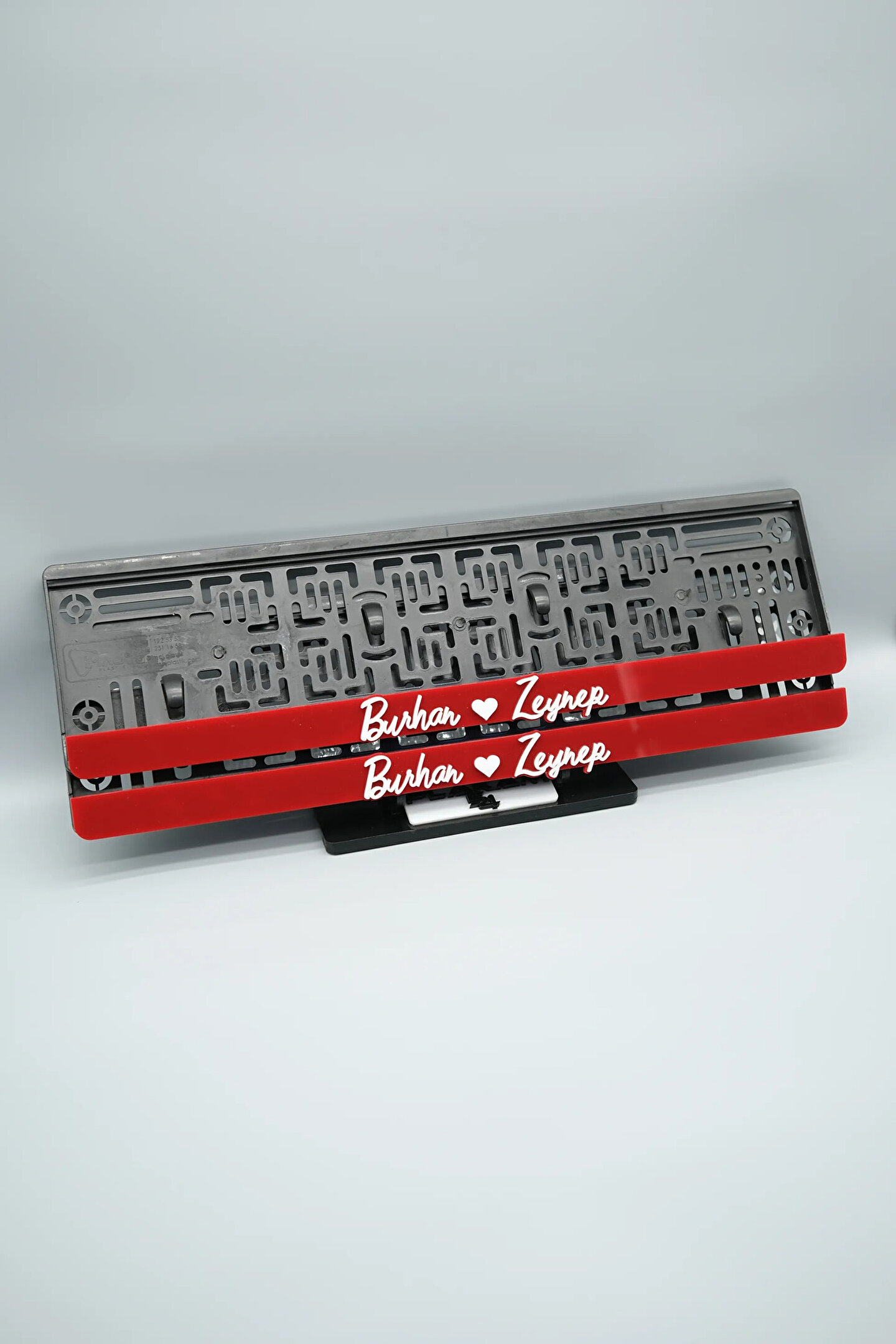 Plakam54 EL YAZI FONTLU KALPLİ KIRMIZI BEYAZ ÇİFTLERE ÖZEL İSİMLİ PLEKSİ ARABA PLAKALIĞI