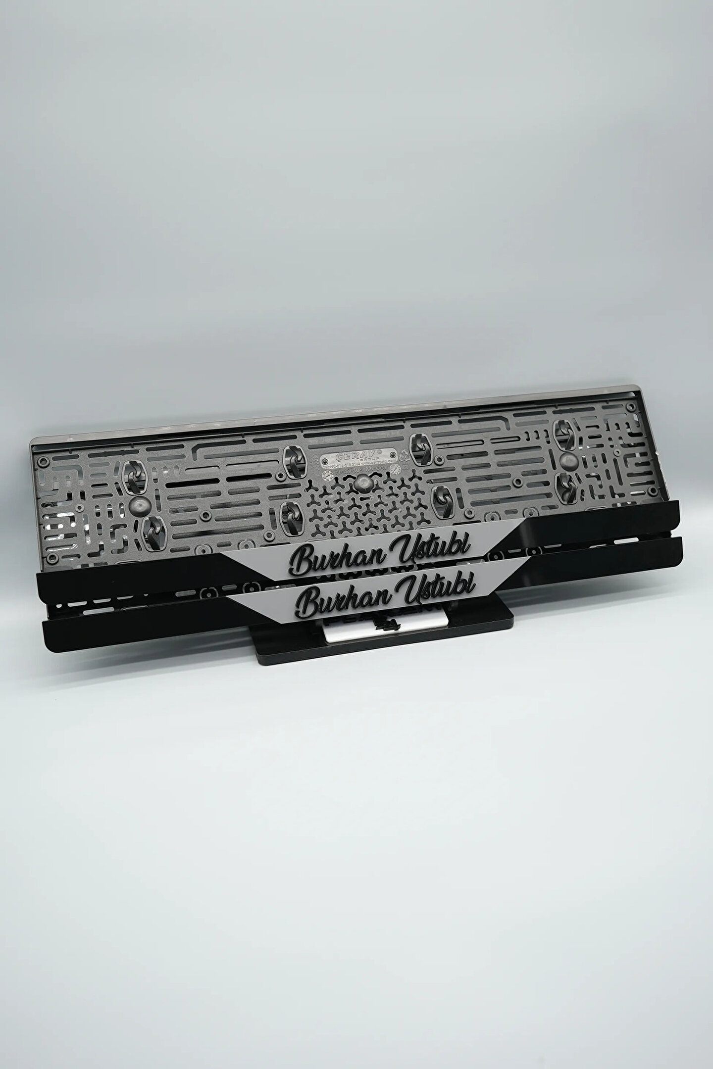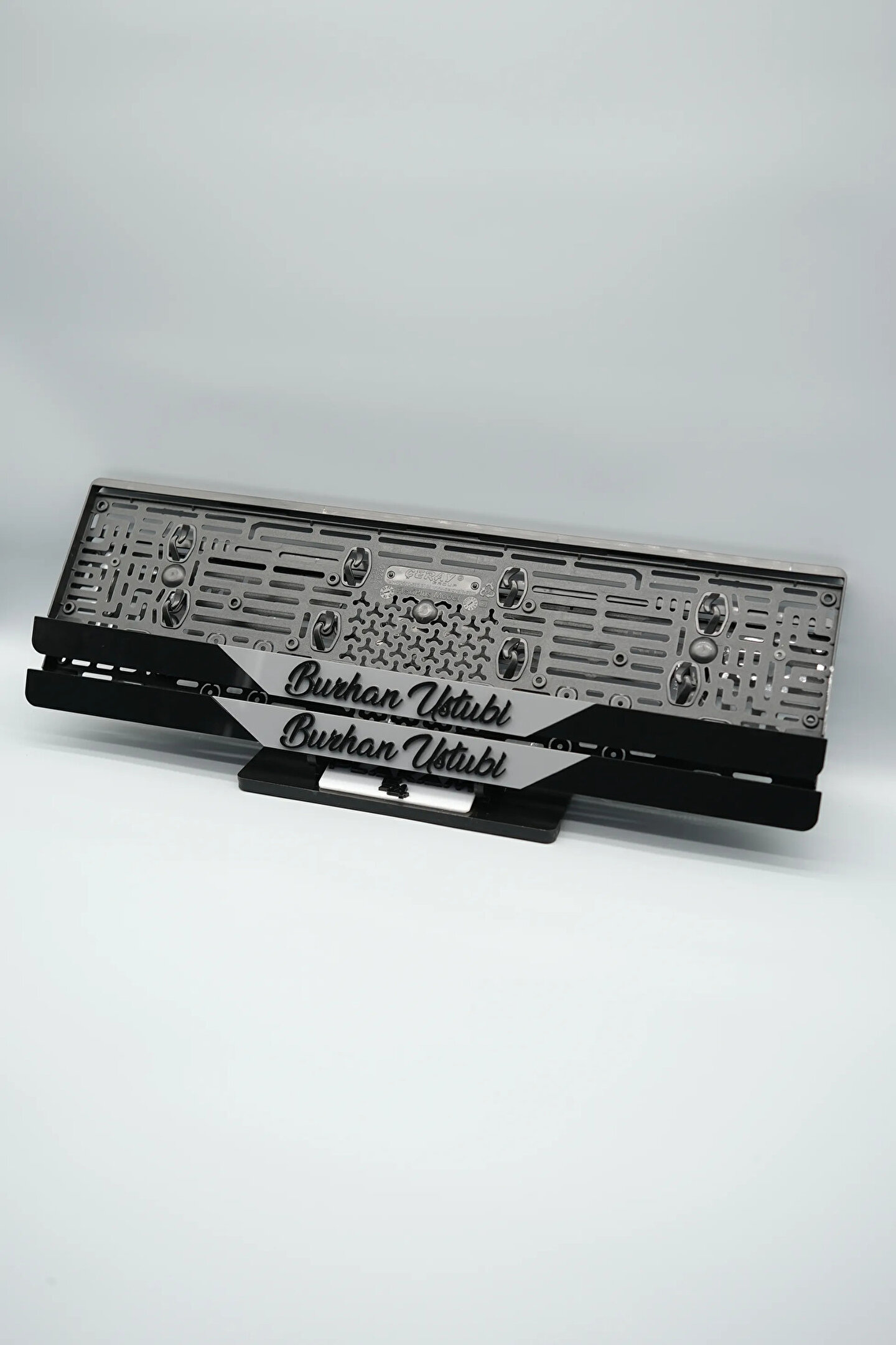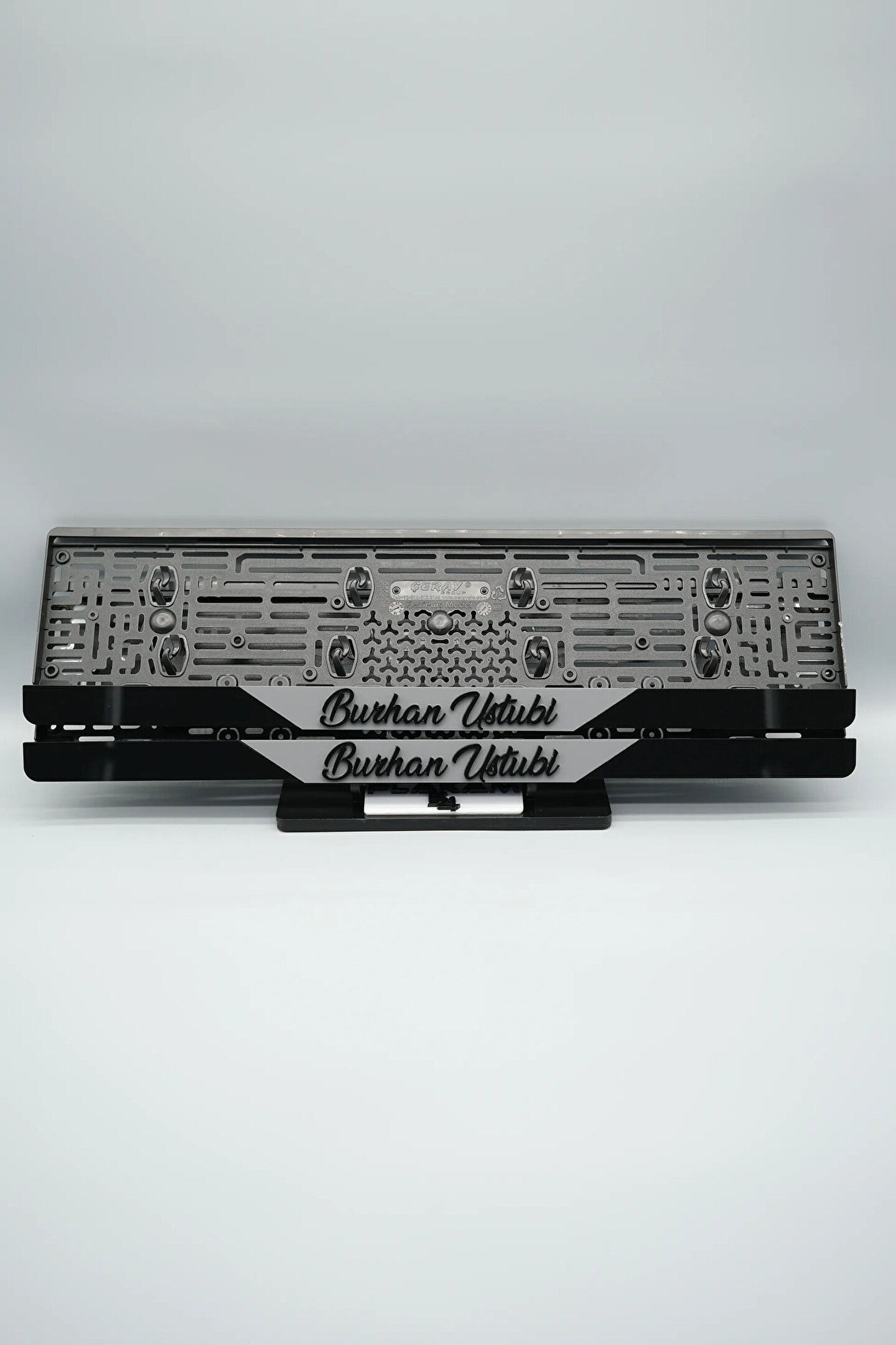 Sıradanı Sıradışıya Çevir! Lazer Kesim Plakalıklarımızla Tanışın!; Özellikler:; Alt çıta ve plakalık olmak üzere toplam 4 parçadan oluşur.; 3D kabartmalı veya gümüş tasarımı ile dikkat çeker.; UV baskı değil, silinme veya dökülme yapmaz.; Standart araba plakası ölçülerindedir (11x52 cm plakalar için uygundur).; Kalite ve Şıklığı Bir Arada Sunuyoruz:; Ürünlerimiz, parlak 1. sınıf kalitede pleksiyi lazer kesim kullanılarak özel yapıştırıcılarla birleştirilerek üretilir.; Sadece plaka değil, aracınıza özgü bir tarz katmanın en havalı yolu!; Dayanıklılıkta Sınır Tanımıyoruz:; Uzun süreli kullanıma uygun olan plakalıklarımız, özel yapıştırıcı teknolojisi ile birleşerek aracınızın stilini korur.; Silinme veya dökülme gibi sorunlarla karşılaşmadan uzun ömürlü bir deneyim sunar.; 3D Kabartmalı Tasarım:; Plakalıklarımızın eşsiz 3D kabartma tasarımı, sizi diğer araçlardan farklı kılacak.; Görsel şölenimiz aracınıza estetik bir dokunuş katıyor.; Kolay Montaj, Büyük Etki:; Aracınıza özel tasarımı hemen kullanmaya başlamak için ürünlerimizin montajı oldukça basittir.; Size zahmetsiz bir kişiselleştirme deneyimi sunuyoruz.;Gerçek Görseller, Gerçek Ürün:; ürün görsellerimizle alacağınız ürün arasında çita malzeme fark yok.; Ürün özellikleri ile ilgili olan sorularınızı ürünün altında yer alan Satıcı Soruları bölümünü tıklayarak sorabilirsiniz.;Siparişiniz ile ilgili sorularınızı veya taleplerinizi Sipariş Detay'da yer alan Soru Sor bölümünden iletebilirsiniz.;Siparişi oluşturduktan sonra Örnek sipariş:"Sipariş numaram: 1111111111, Plakalık Üstüne Yazılacak yazı: ADINIZ SOYADINIZ Üstübi"şeklinde bizlere sipariş bilgilerinizi iletebilirsiniz.;Sipariş sonrası ürün soru sor kısmına üründeki seçmiş olduğunuz plakalığa yazılacak yazıyı belirtiniz.;Yazınızı belirtmediğiniz taktirde görselde yer alan modele siparişteki isim yazılarak gönderilecektir.; Farklı modeller için diğer ürünlerimizi inceleyebilirsiniz.;Ürünlerimiz takım olup 2 adet gönderilecektir.;Plaka çerçevesine yazmak istediğiniz en fazla 30 karakter giriniz; NOT Büyük Küçük harf Font uyumuna bağlıdır Küçük Harfler ile yazlı olan bilgileriniz font uyumlu ise küçük harflerde kullanılır.;Güvenle satın alın ve aracınızı şık ve özgün kılın.; Aracınızı Kişiselleştirin, Stilinizi Yansıtın!;