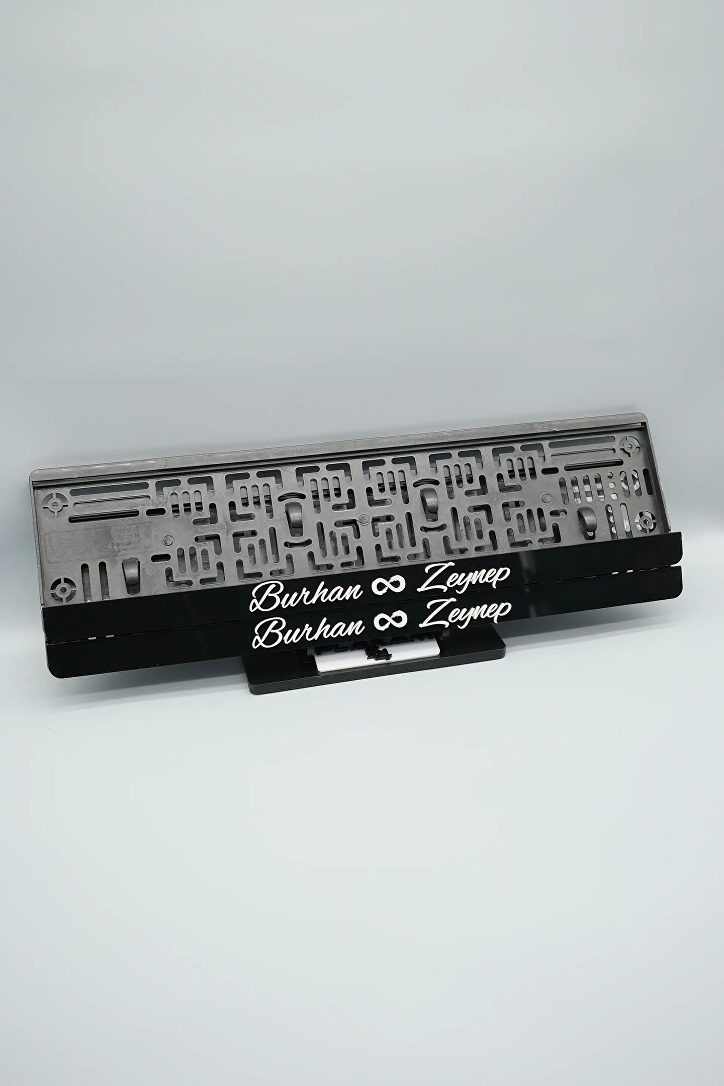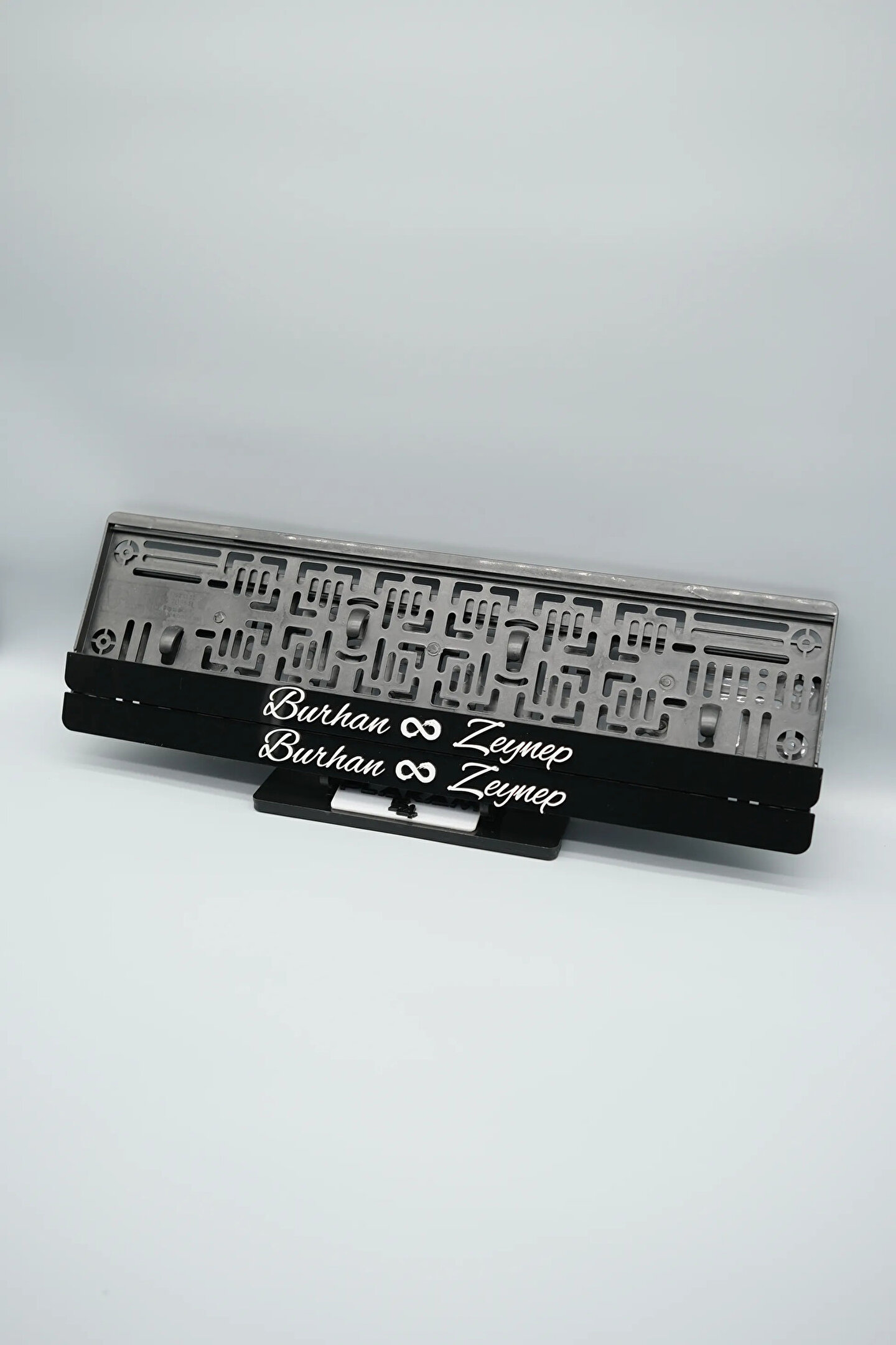 Plakam54 EL YAZI FONTLU SONSUZLUK İŞARETLİ SİYAH BEYAZ ÇİFTLERE ÖZEL İSİMLİ PLEKSİ ARABA PLAKALIĞI