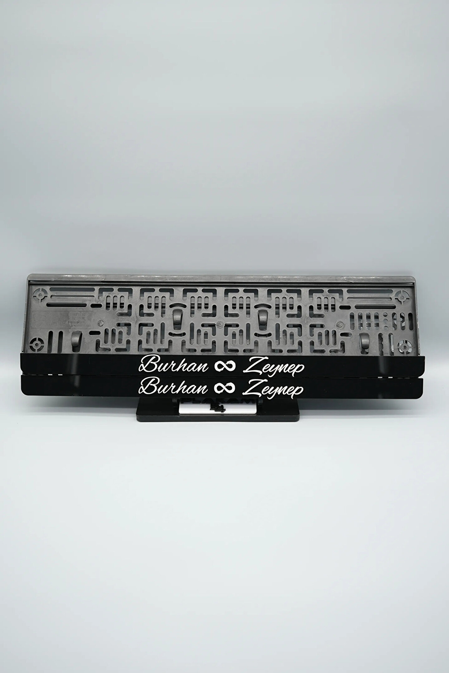 Sıradanı Sıradışıya Çevir! Lazer Kesim Plakalıklarımızla Tanışın!; Özellikler:; Alt çıta ve plakalık olmak üzere toplam 4 parçadan oluşur.; 3D kabartmalı veya gümüş tasarımı ile dikkat çeker.; UV baskı değil, silinme veya dökülme yapmaz.; Standart araba plakası ölçülerindedir (11x52 cm plakalar için uygundur).; Kalite ve Şıklığı Bir Arada Sunuyoruz:; Ürünlerimiz, parlak 1. sınıf kalitede pleksiyi lazer kesim kullanılarak özel yapıştırıcılarla birleştirilerek üretilir.; Sadece plaka değil, aracınıza özgü bir tarz katmanın en havalı yolu!; Dayanıklılıkta Sınır Tanımıyoruz:; Uzun süreli kullanıma uygun olan plakalıklarımız, özel yapıştırıcı teknolojisi ile birleşerek aracınızın stilini korur.; Silinme veya dökülme gibi sorunlarla karşılaşmadan uzun ömürlü bir deneyim sunar.; 3D Kabartmalı Tasarım:; Plakalıklarımızın eşsiz 3D kabartma tasarımı, sizi diğer araçlardan farklı kılacak.; Görsel şölenimiz aracınıza estetik bir dokunuş katıyor.; Kolay Montaj, Büyük Etki:; Aracınıza özel tasarımı hemen kullanmaya başlamak için ürünlerimizin montajı oldukça basittir.; Size zahmetsiz bir kişiselleştirme deneyimi sunuyoruz.;Gerçek Görseller, Gerçek Ürün:; ürün görsellerimizle alacağınız ürün arasında çita malzeme fark yok.; Ürün özellikleri ile ilgili olan sorularınızı ürünün altında yer alan Satıcı Soruları bölümünü tıklayarak sorabilirsiniz.;Siparişiniz ile ilgili sorularınızı veya taleplerinizi Sipariş Detay'da yer alan Soru Sor bölümünden iletebilirsiniz.;Siparişi oluşturduktan sonra Örnek sipariş:"Sipariş numaram: 1111111111, Plakalık Üstüne Yazılacak yazı: ADINIZ SOYADINIZ Üstübi"şeklinde bizlere sipariş bilgilerinizi iletebilirsiniz.;Sipariş sonrası ürün soru sor kısmına üründeki seçmiş olduğunuz plakalığa yazılacak yazıyı belirtiniz.;Yazınızı belirtmediğiniz taktirde görselde yer alan modele siparişteki isim yazılarak gönderilecektir.; Farklı modeller için diğer ürünlerimizi inceleyebilirsiniz.;Ürünlerimiz takım olup 2 adet gönderilecektir.;Plaka çerçevesine yazmak istediğiniz en fazla 30 karakter giriniz; NOT Büyük Küçük harf Font uyumuna bağlıdır Küçük Harfler ile yazlı olan bilgileriniz font uyumlu ise küçük harflerde kullanılır.;Güvenle satın alın ve aracınızı şık ve özgün kılın.; Aracınızı Kişiselleştirin, Stilinizi Yansıtın!;