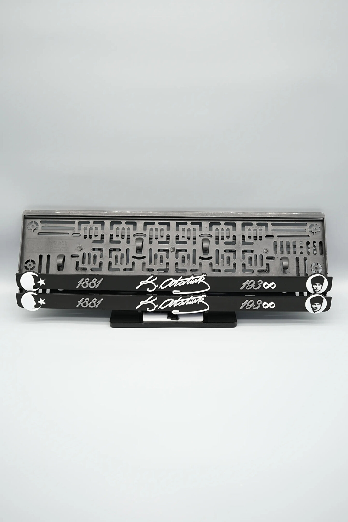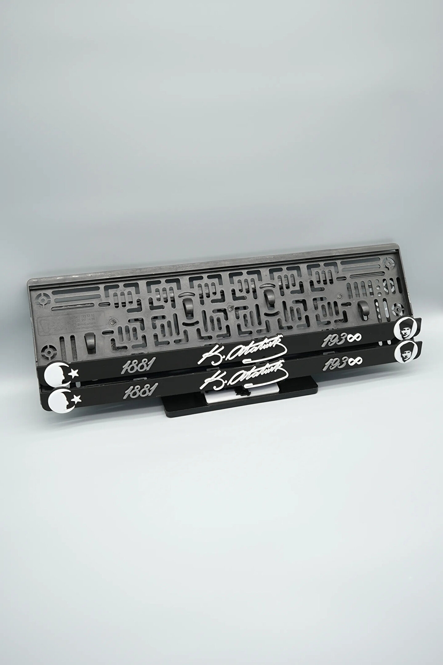 Sıradanı Sıradışıya Çevir! Lazer Kesim Plakalıklarımızla Tanışın!; Özellikler:; Alt çıta ve plakalık olmak üzere toplam 4 parçadan oluşur.; 3D kabartmalı veya gümüş tasarımı ile dikkat çeker.; UV baskı değil, silinme veya dökülme yapmaz.; Standart araba plakası ölçülerindedir (11x52 cm plakalar için uygundur).; Kalite ve Şıklığı Bir Arada Sunuyoruz:; Ürünlerimiz, parlak 1. sınıf kalitede pleksiyi lazer kesim kullanılarak özel yapıştırıcılarla birleştirilerek üretilir.; Sadece plaka değil, aracınıza özgü bir tarz katmanın en havalı yolu!; Dayanıklılıkta Sınır Tanımıyoruz:; Uzun süreli kullanıma uygun olan plakalıklarımız, özel yapıştırıcı teknolojisi ile birleşerek aracınızın stilini korur.; Silinme veya dökülme gibi sorunlarla karşılaşmadan uzun ömürlü bir deneyim sunar.; 3D Kabartmalı Tasarım:; Plakalıklarımızın eşsiz 3D kabartma tasarımı, sizi diğer araçlardan farklı kılacak.; Görsel şölenimiz aracınıza estetik bir dokunuş katıyor.; Kolay Montaj, Büyük Etki:; Aracınıza özel tasarımı hemen kullanmaya başlamak için ürünlerimizin montajı oldukça basittir.; Size zahmetsiz bir kişiselleştirme deneyimi sunuyoruz.; Gerçek Görseller, Gerçek Ürün:; ürün görsellerimizle alacağınız ürün arasında hiçbir fark yok.; Güvenle satın alın ve aracınızı şık ve özgün kılın.; Aracınızı Kişiselleştirin, Stilinizi Yansıtın!;