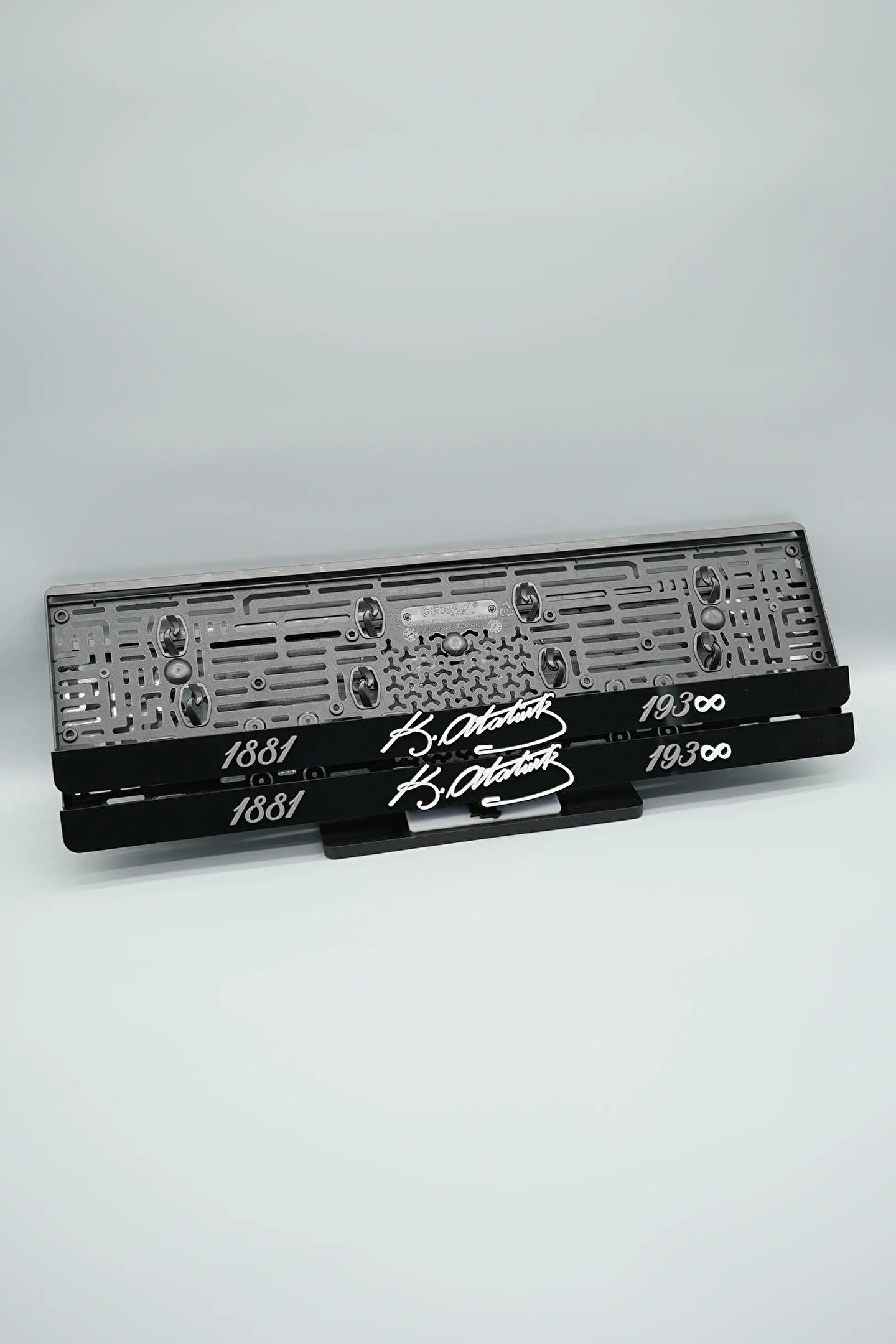 Sıradanı Sıradışıya Çevir! Lazer Kesim Plakalıklarımızla Tanışın!; Özellikler:; Alt çıta ve plakalık olmak üzere toplam 4 parçadan oluşur.; 3D kabartmalı veya gümüş tasarımı ile dikkat çeker.; UV baskı değil, silinme veya dökülme yapmaz.; Standart araba plakası ölçülerindedir (11x52 cm plakalar için uygundur).; Kalite ve Şıklığı Bir Arada Sunuyoruz:; Ürünlerimiz, parlak 1. sınıf kalitede pleksiyi lazer kesim kullanılarak özel yapıştırıcılarla birleştirilerek üretilir.; Sadece plaka değil, aracınıza özgü bir tarz katmanın en havalı yolu!; Dayanıklılıkta Sınır Tanımıyoruz:; Uzun süreli kullanıma uygun olan plakalıklarımız, özel yapıştırıcı teknolojisi ile birleşerek aracınızın stilini korur.; Silinme veya dökülme gibi sorunlarla karşılaşmadan uzun ömürlü bir deneyim sunar.; 3D Kabartmalı Tasarım:; Plakalıklarımızın eşsiz 3D kabartma tasarımı, sizi diğer araçlardan farklı kılacak.; Görsel şölenimiz aracınıza estetik bir dokunuş katıyor.; Kolay Montaj, Büyük Etki:; Aracınıza özel tasarımı hemen kullanmaya başlamak için ürünlerimizin montajı oldukça basittir.; Size zahmetsiz bir kişiselleştirme deneyimi sunuyoruz.; Gerçek Görseller, Gerçek Ürün:; ürün görsellerimizle alacağınız ürün arasında hiçbir fark yok.; Güvenle satın alın ve aracınızı şık ve özgün kılın.; Aracınızı Kişiselleştirin, Stilinizi Yansıtın!;
