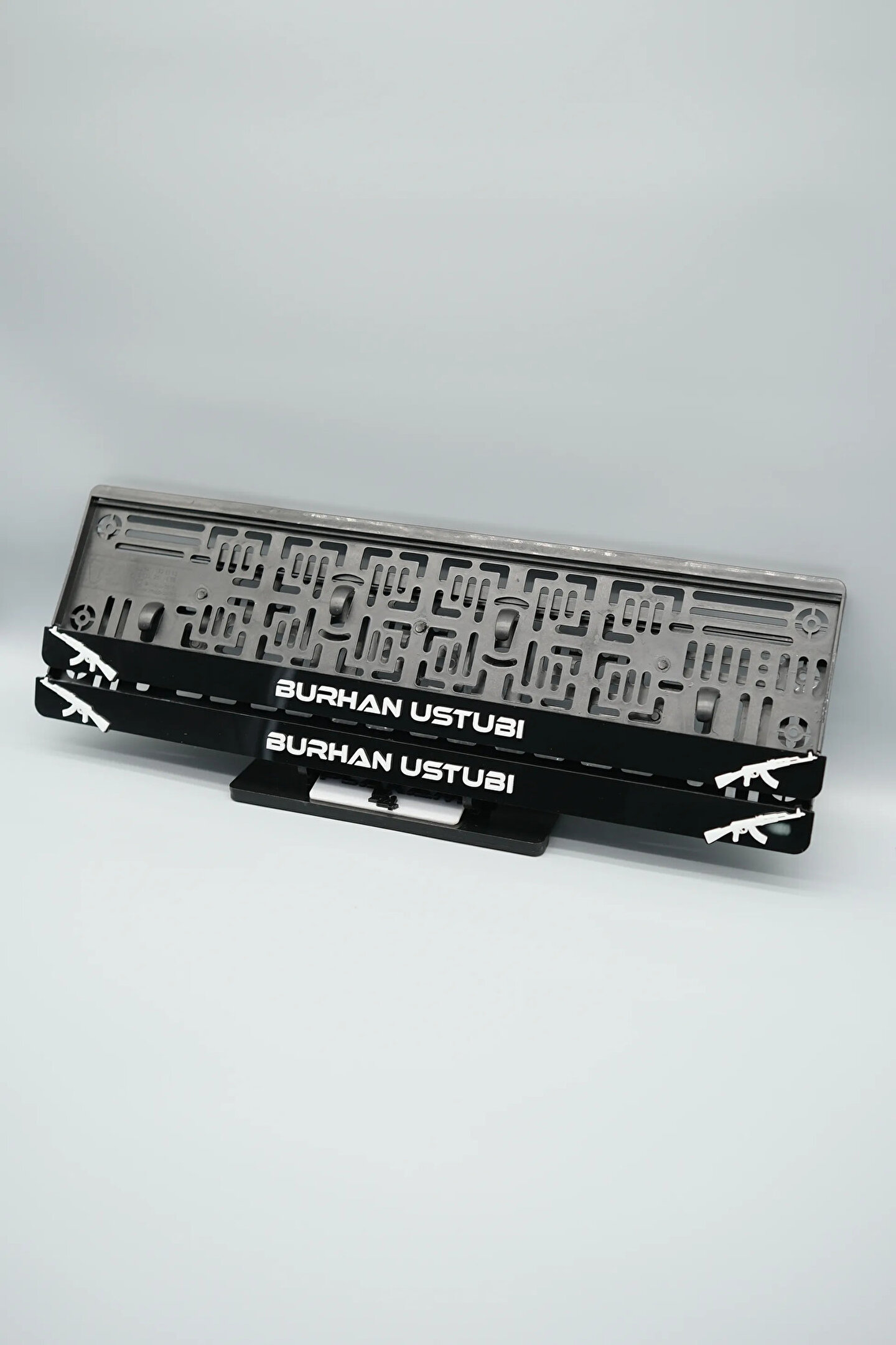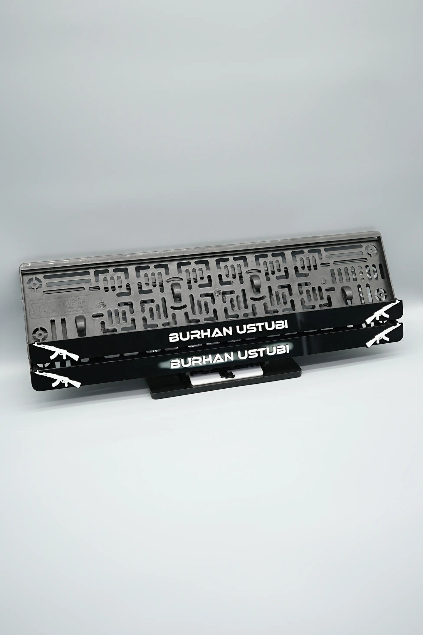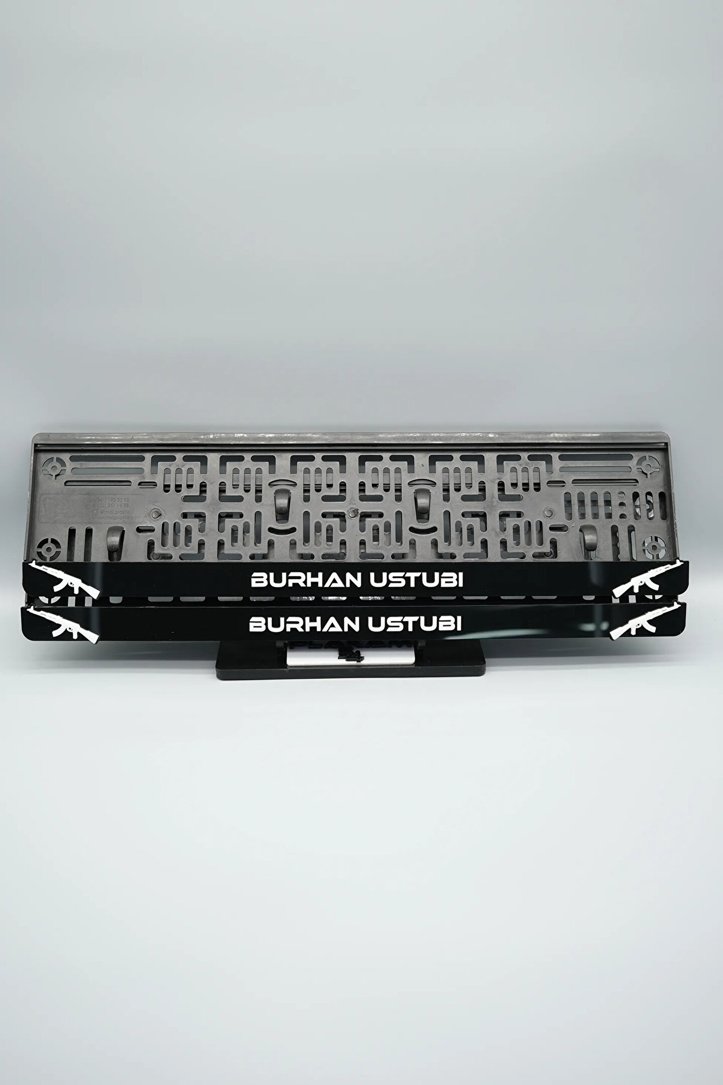 Sıradanı Sıradışıya Çevir! Lazer Kesim Plakalıklarımızla Tanışın!; Özellikler:; Alt çıta ve plakalık olmak üzere toplam 4 parçadan oluşur.; 3D kabartmalı veya gümüş tasarımı ile dikkat çeker.; UV baskı değil, silinme veya dökülme yapmaz.; Standart araba plakası ölçülerindedir (11x52 cm plakalar için uygundur).; Kalite ve Şıklığı Bir Arada Sunuyoruz:; Ürünlerimiz, parlak 1. sınıf kalitede pleksiyi lazer kesim kullanılarak özel yapıştırıcılarla birleştirilerek üretilir.; Sadece plaka değil, aracınıza özgü bir tarz katmanın en havalı yolu!; Dayanıklılıkta Sınır Tanımıyoruz:; Uzun süreli kullanıma uygun olan plakalıklarımız, özel yapıştırıcı teknolojisi ile birleşerek aracınızın stilini korur.; Silinme veya dökülme gibi sorunlarla karşılaşmadan uzun ömürlü bir deneyim sunar.; 3D Kabartmalı Tasarım:; Plakalıklarımızın eşsiz 3D kabartma tasarımı, sizi diğer araçlardan farklı kılacak.; Görsel şölenimiz aracınıza estetik bir dokunuş katıyor.; Kolay Montaj, Büyük Etki:; Aracınıza özel tasarımı hemen kullanmaya başlamak için ürünlerimizin montajı oldukça basittir.; Size zahmetsiz bir kişiselleştirme deneyimi sunuyoruz.;Gerçek Görseller, Gerçek Ürün:; ürün görsellerimizle alacağınız ürün arasında çita malzeme fark yok.; Ürün özellikleri ile ilgili olan sorularınızı ürünün altında yer alan Satıcı Soruları bölümünü tıklayarak sorabilirsiniz.;Siparişiniz ile ilgili sorularınızı veya taleplerinizi Sipariş Detay'da yer alan Soru Sor bölümünden iletebilirsiniz.;Siparişi oluşturduktan sonra Örnek sipariş:"Sipariş numaram: 1111111111, Plakalık Üstüne Yazılacak yazı: ADINIZ SOYADINIZ Üstübi"şeklinde bizlere sipariş bilgilerinizi iletebilirsiniz.;Sipariş sonrası ürün soru sor kısmına üründeki seçmiş olduğunuz plakalığa yazılacak yazıyı belirtiniz.;Yazınızı belirtmediğiniz taktirde görselde yer alan modele siparişteki isim yazılarak gönderilecektir.; Farklı modeller için diğer ürünlerimizi inceleyebilirsiniz.;Ürünlerimiz takım olup 2 adet gönderilecektir.;Plaka çerçevesine yazmak istediğiniz en fazla 30 karakter giriniz; NOT Büyük Küçük harf Font uyumuna bağlıdır Küçük Harfler ile yazlı olan bilgileriniz font uyumlu ise küçük harflerde kullanılır.;Güvenle satın alın ve aracınızı şık ve özgün kılın.; Aracınızı Kişiselleştirin, Stilinizi Yansıtın!;