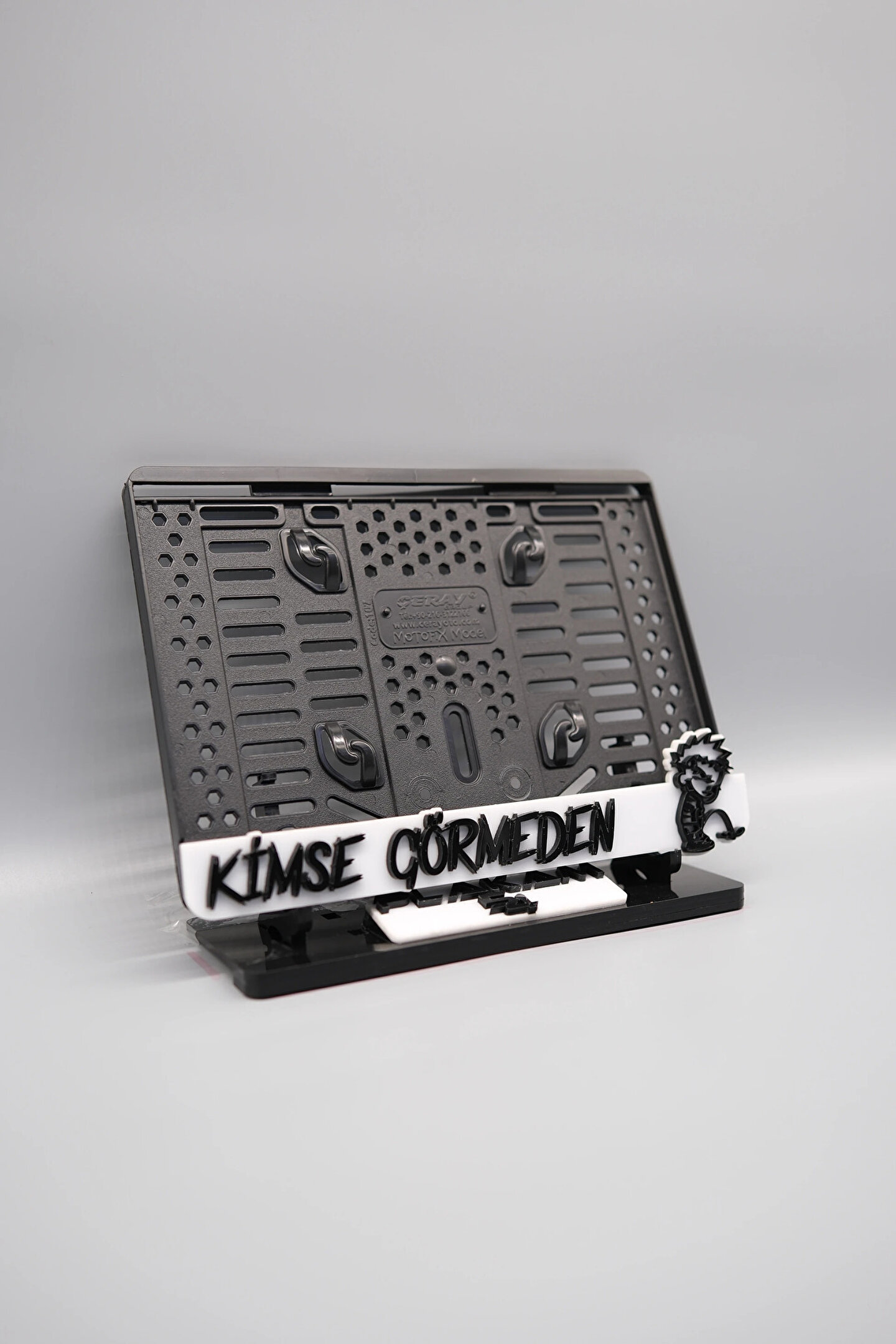 Plakam54 KİMSE GÖRMEDEN 3D KABARTMALI BEYAZ PLEKSİ MOTOR PLAKALIĞI