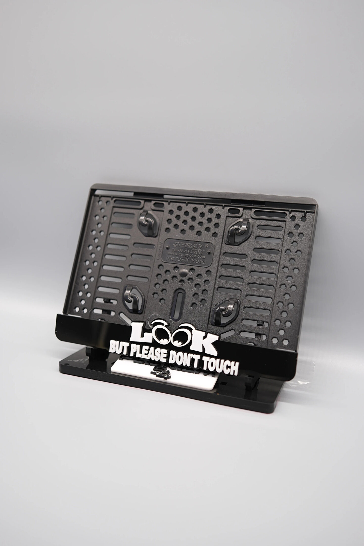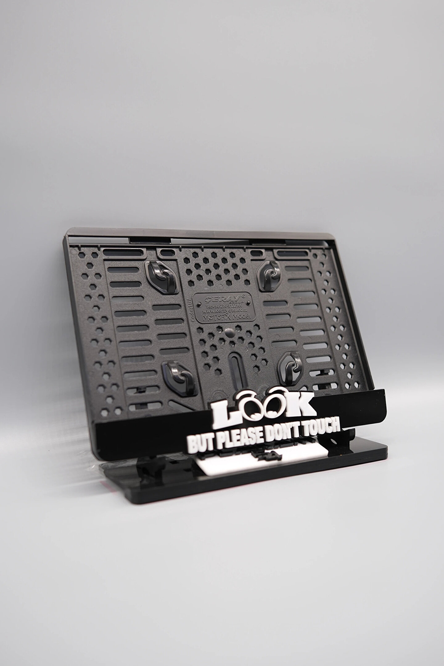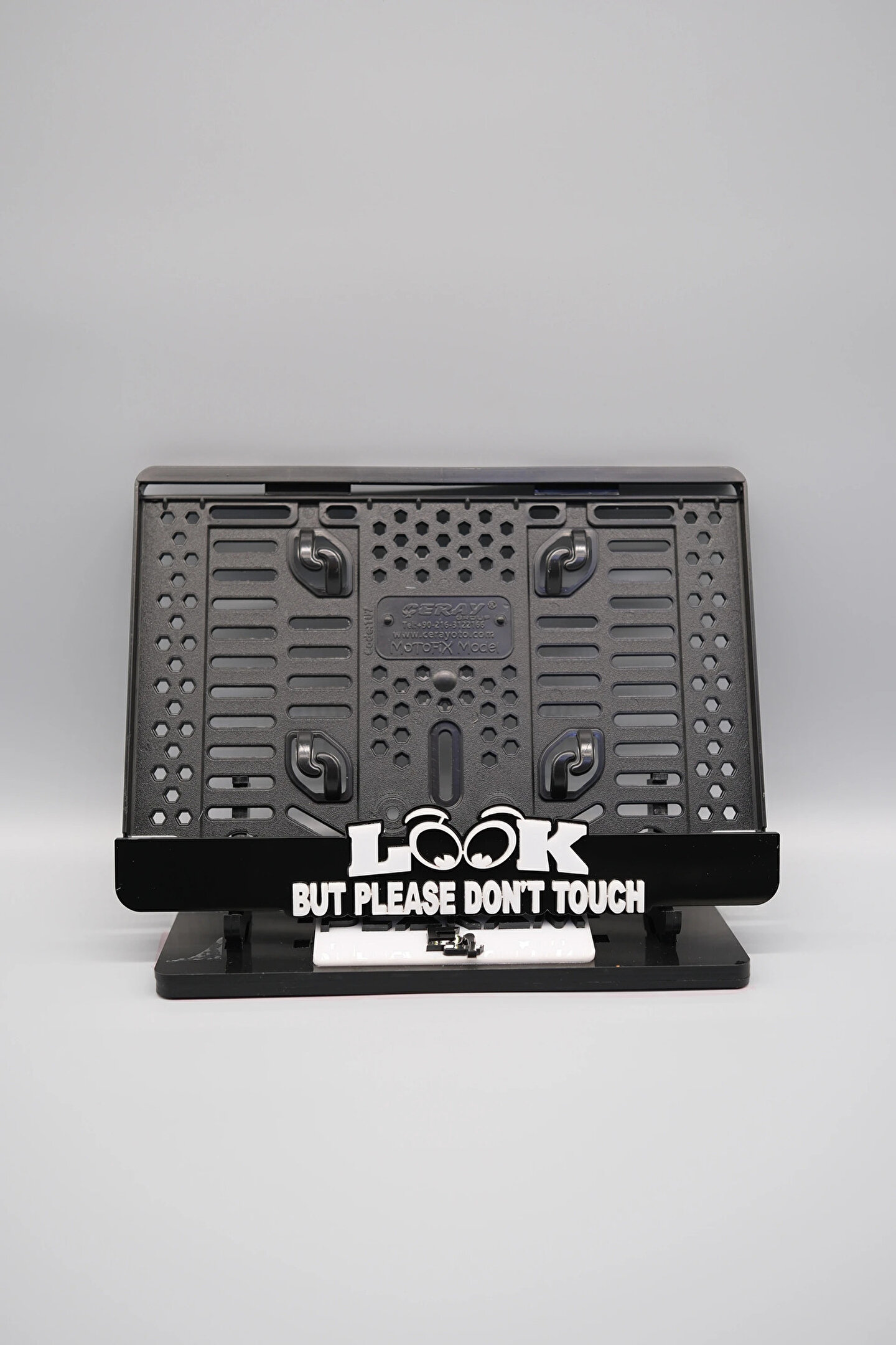 Plakam54 LOOK PLEASE DONT TOUCH 3D KABARTMALI BEYAZ PLEKSİ MOTOR PLAKALIĞI