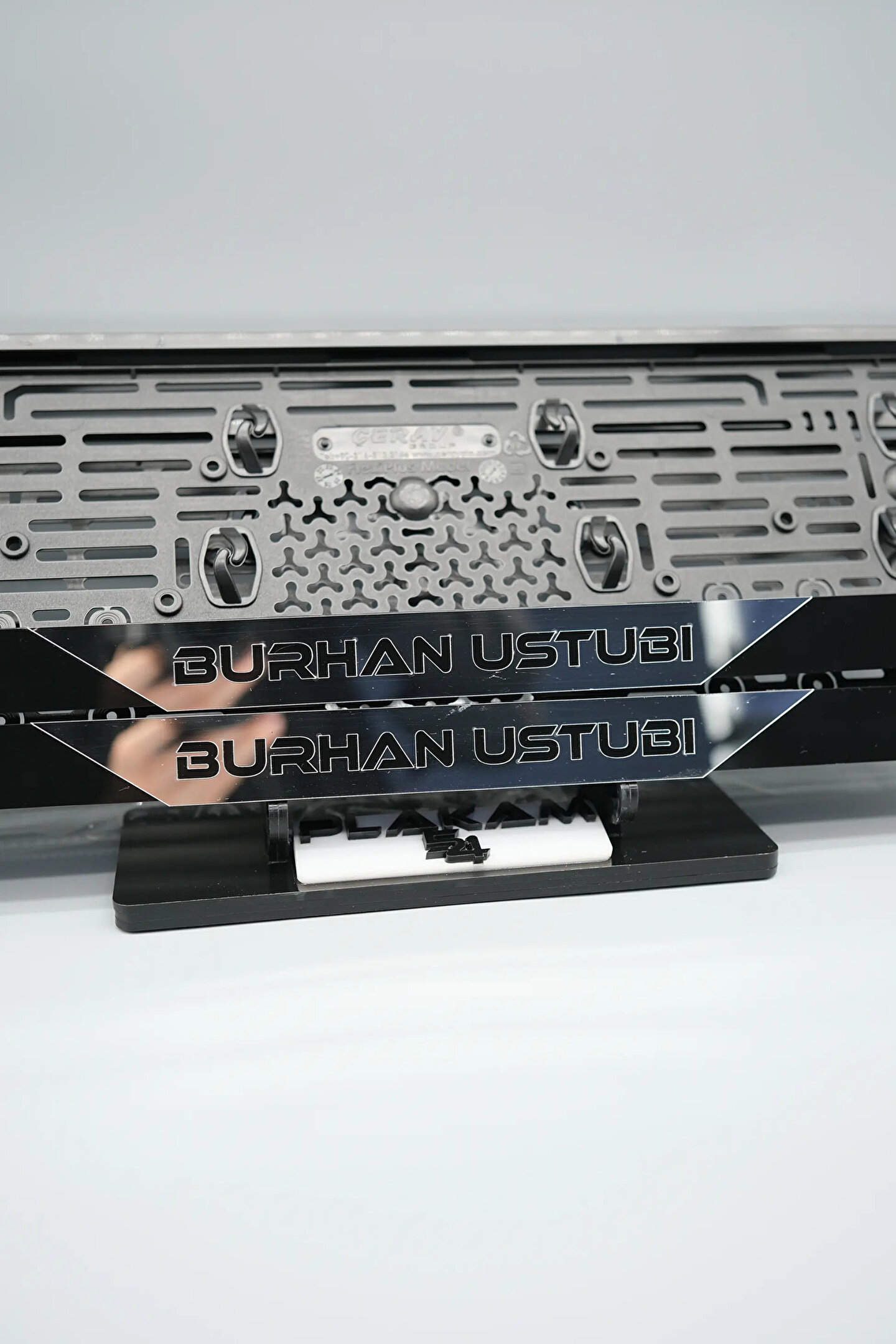 Sıradanı Sıradışıya Çevir! Lazer Kesim Plakalıklarımızla Tanışın!; Özellikler:; Alt çıta ve plakalık olmak üzere toplam 4 parçadan oluşur.; 3D kabartmalı veya gümüş tasarımı ile dikkat çeker.; UV baskı değil, silinme veya dökülme yapmaz.; Standart araba plakası ölçülerindedir (11x52 cm plakalar için uygundur).; Kalite ve Şıklığı Bir Arada Sunuyoruz:; Ürünlerimiz, parlak 1. sınıf kalitede pleksiyi lazer kesim kullanılarak özel yapıştırıcılarla birleştirilerek üretilir.; Sadece plaka değil, aracınıza özgü bir tarz katmanın en havalı yolu!; Dayanıklılıkta Sınır Tanımıyoruz:; Uzun süreli kullanıma uygun olan plakalıklarımız, özel yapıştırıcı teknolojisi ile birleşerek aracınızın stilini korur.; Silinme veya dökülme gibi sorunlarla karşılaşmadan uzun ömürlü bir deneyim sunar.; 3D Kabartmalı Tasarım:; Plakalıklarımızın eşsiz 3D kabartma tasarımı, sizi diğer araçlardan farklı kılacak.; Görsel şölenimiz aracınıza estetik bir dokunuş katıyor.; Kolay Montaj, Büyük Etki:; Aracınıza özel tasarımı hemen kullanmaya başlamak için ürünlerimizin montajı oldukça basittir.; Size zahmetsiz bir kişiselleştirme deneyimi sunuyoruz.;Gerçek Görseller, Gerçek Ürün:; ürün görsellerimizle alacağınız ürün arasında çita malzeme fark yok.; Ürün özellikleri ile ilgili olan sorularınızı ürünün altında yer alan Satıcı Soruları bölümünü tıklayarak sorabilirsiniz.;Siparişiniz ile ilgili sorularınızı veya taleplerinizi Sipariş Detay'da yer alan Soru Sor bölümünden iletebilirsiniz.;Siparişi oluşturduktan sonra Örnek sipariş:"Sipariş numaram: 1111111111, Plakalık Üstüne Yazılacak yazı: ADINIZ SOYADINIZ Üstübi"şeklinde bizlere sipariş bilgilerinizi iletebilirsiniz.;Sipariş sonrası ürün soru sor kısmına üründeki seçmiş olduğunuz plakalığa yazılacak yazıyı belirtiniz.;Yazınızı belirtmediğiniz taktirde görselde yer alan modele siparişteki isim yazılarak gönderilecektir.; Farklı modeller için diğer ürünlerimizi inceleyebilirsiniz.;Ürünlerimiz takım olup 2 adet gönderilecektir.;Plaka çerçevesine yazmak istediğiniz en fazla 30 karakter giriniz; NOT Büyük Küçük harf Font uyumuna bağlıdır Küçük Harfler ile yazlı olan bilgileriniz font uyumlu ise küçük harflerde kullanılır.;Güvenle satın alın ve aracınızı şık ve özgün kılın.; Aracınızı Kişiselleştirin, Stilinizi Yansıtın!;