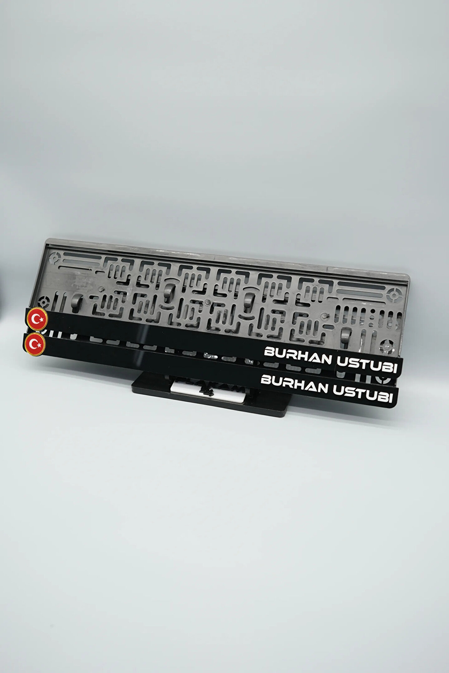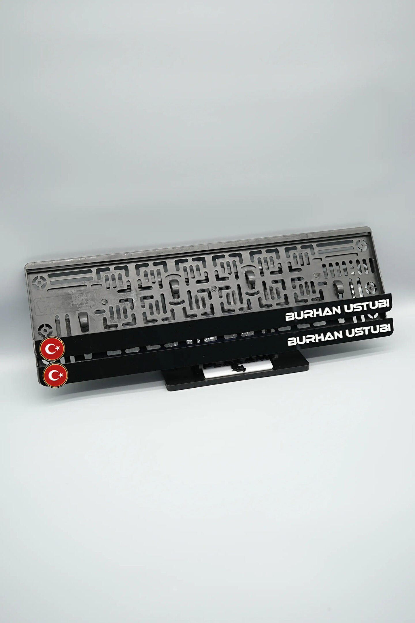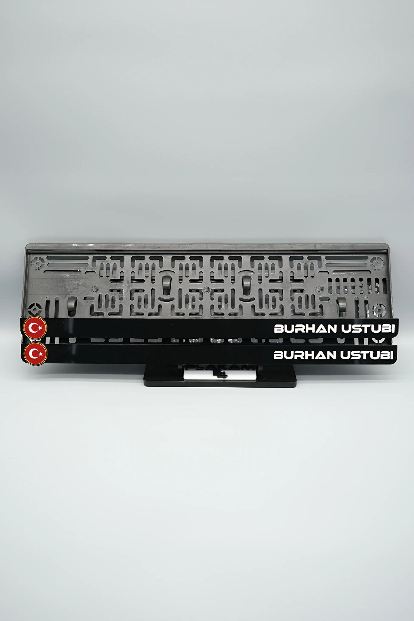 Sıradanı Sıradışıya Çevir! Lazer Kesim Plakalıklarımızla Tanışın!; Özellikler:; Alt çıta ve plakalık olmak üzere toplam 4 parçadan oluşur.; 3D kabartmalı veya gümüş tasarımı ile dikkat çeker.; UV baskı değil, silinme veya dökülme yapmaz.; Standart araba plakası ölçülerindedir (11x52 cm plakalar için uygundur).; Kalite ve Şıklığı Bir Arada Sunuyoruz:; Ürünlerimiz, parlak 1. sınıf kalitede pleksiyi lazer kesim kullanılarak özel yapıştırıcılarla birleştirilerek üretilir.; Sadece plaka değil, aracınıza özgü bir tarz katmanın en havalı yolu!; Dayanıklılıkta Sınır Tanımıyoruz:; Uzun süreli kullanıma uygun olan plakalıklarımız, özel yapıştırıcı teknolojisi ile birleşerek aracınızın stilini korur.; Silinme veya dökülme gibi sorunlarla karşılaşmadan uzun ömürlü bir deneyim sunar.; 3D Kabartmalı Tasarım:; Plakalıklarımızın eşsiz 3D kabartma tasarımı, sizi diğer araçlardan farklı kılacak.; Görsel şölenimiz aracınıza estetik bir dokunuş katıyor.; Kolay Montaj, Büyük Etki:; Aracınıza özel tasarımı hemen kullanmaya başlamak için ürünlerimizin montajı oldukça basittir.; Size zahmetsiz bir kişiselleştirme deneyimi sunuyoruz.;Gerçek Görseller, Gerçek Ürün:; ürün görsellerimizle alacağınız ürün arasında çita malzeme fark yok.; Ürün özellikleri ile ilgili olan sorularınızı ürünün altında yer alan Satıcı Soruları bölümünü tıklayarak sorabilirsiniz.;Siparişiniz ile ilgili sorularınızı veya taleplerinizi Sipariş Detay'da yer alan Soru Sor bölümünden iletebilirsiniz.;Siparişi oluşturduktan sonra Örnek sipariş:"Sipariş numaram: 1111111111, Plakalık Üstüne Yazılacak yazı: ADINIZ SOYADINIZ Üstübi"şeklinde bizlere sipariş bilgilerinizi iletebilirsiniz.;Sipariş sonrası ürün soru sor kısmına üründeki seçmiş olduğunuz plakalığa yazılacak yazıyı belirtiniz.;Yazınızı belirtmediğiniz taktirde görselde yer alan modele siparişteki isim yazılarak gönderilecektir.; Farklı modeller için diğer ürünlerimizi inceleyebilirsiniz.;Ürünlerimiz takım olup 2 adet gönderilecektir.;Plaka çerçevesine yazmak istediğiniz en fazla 30 karakter giriniz; NOT Büyük Küçük harf Font uyumuna bağlıdır Küçük Harfler ile yazlı olan bilgileriniz font uyumlu ise küçük harflerde kullanılır.;Güvenle satın alın ve aracınızı şık ve özgün kılın.; Aracınızı Kişiselleştirin, Stilinizi Yansıtın!;