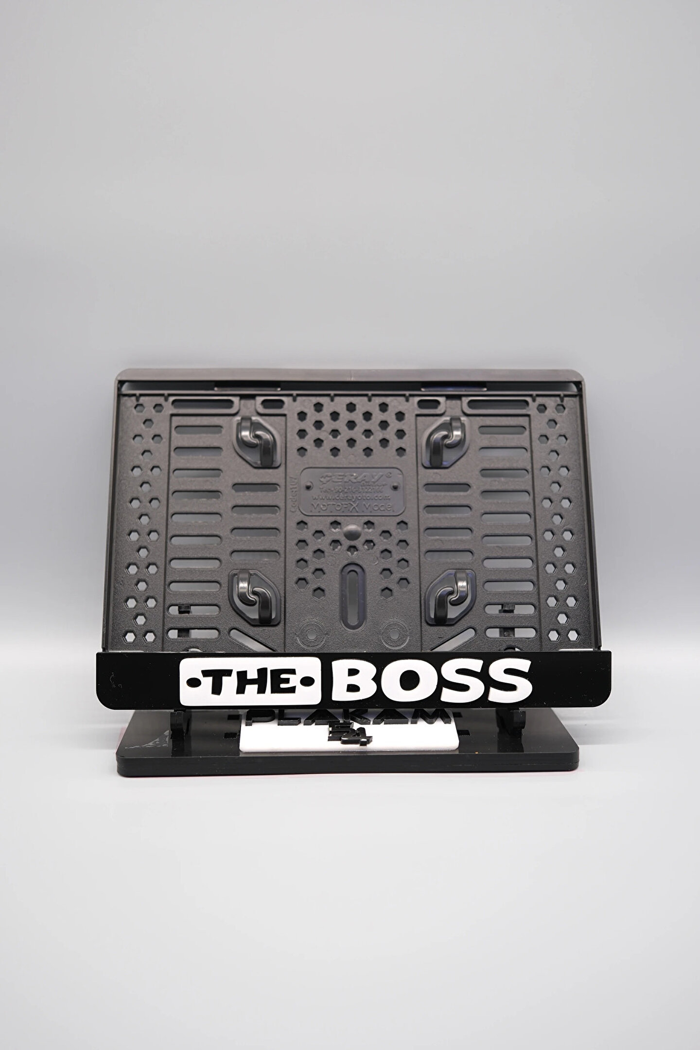 Plakam54 THE BOSS 3D KABARTMALI BEYAZ PLEKSİ MOTOR PLAKALIĞI