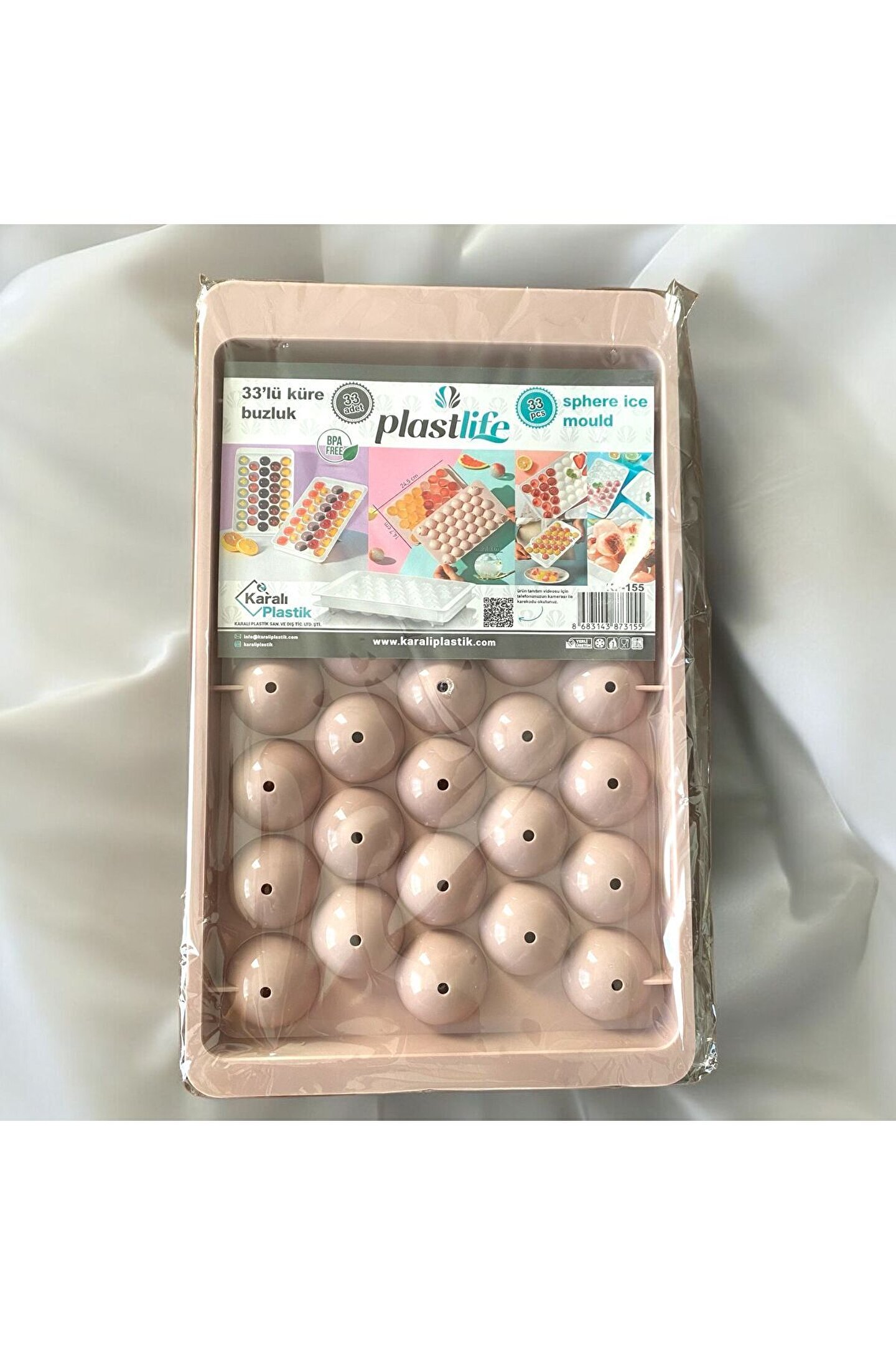 Plastlife PUDRA PEMBE 33’LÜ KÜRE BUZ KALIBI YUVARLAK BUZ KALIBI 25 x 15 Plastik