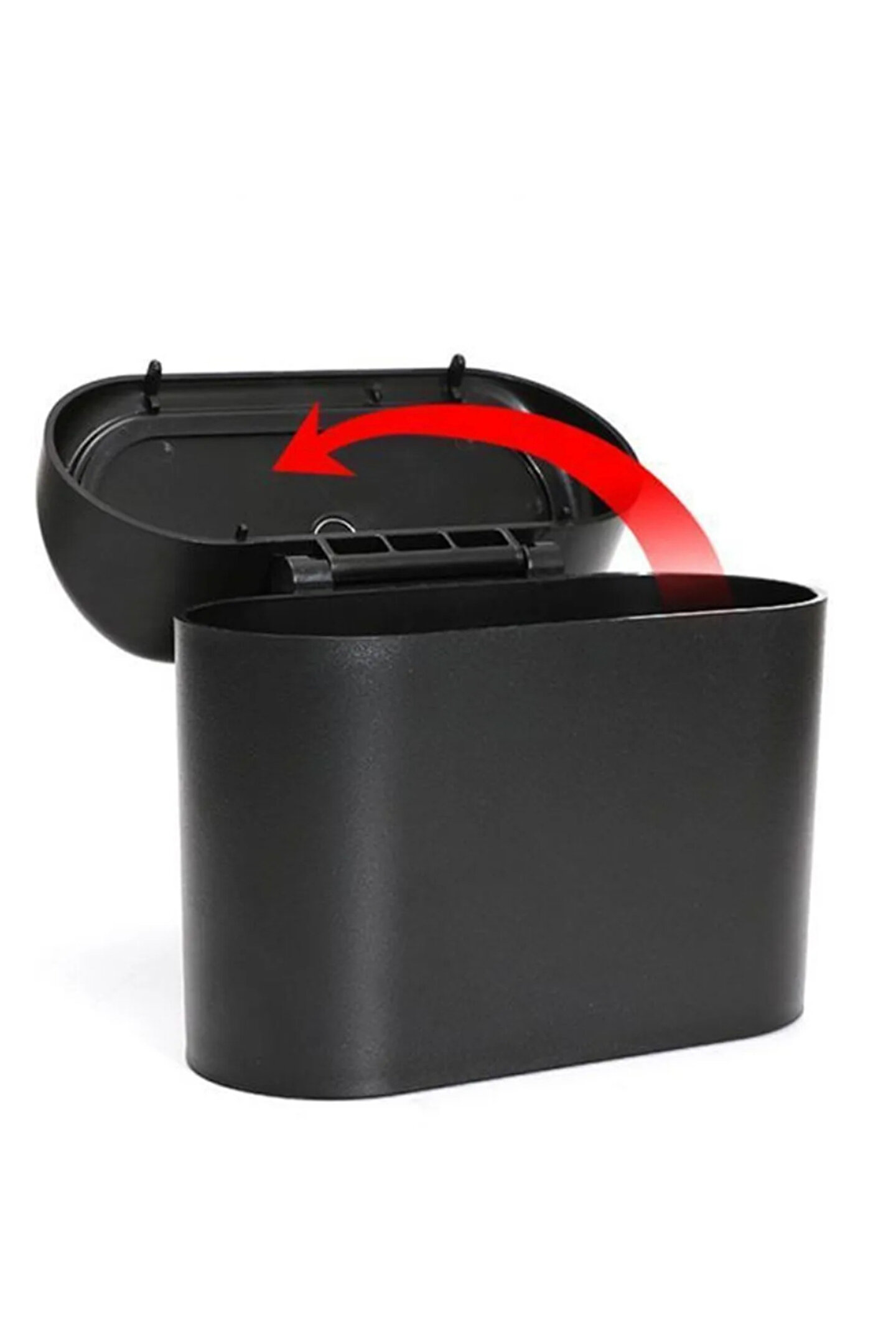 PlusOto Araba Çöp Kutusu Siyah Portatif Araç İçi Taşınabilir Kapaklı Organizer Çöp Kovası