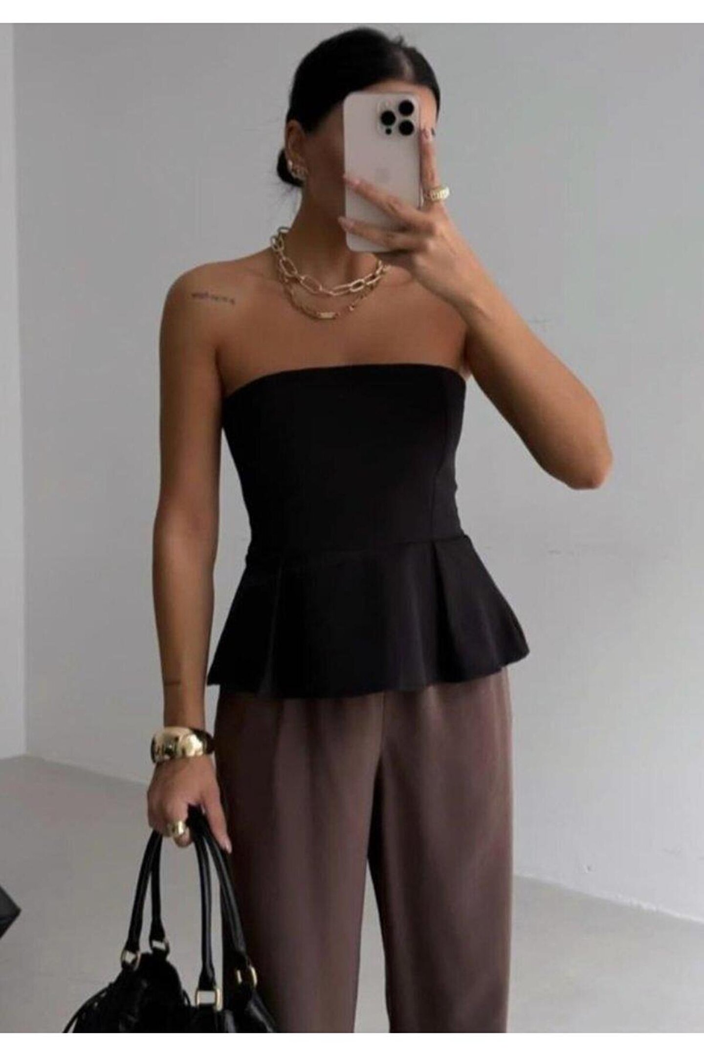 Pileli Straplez Bluz