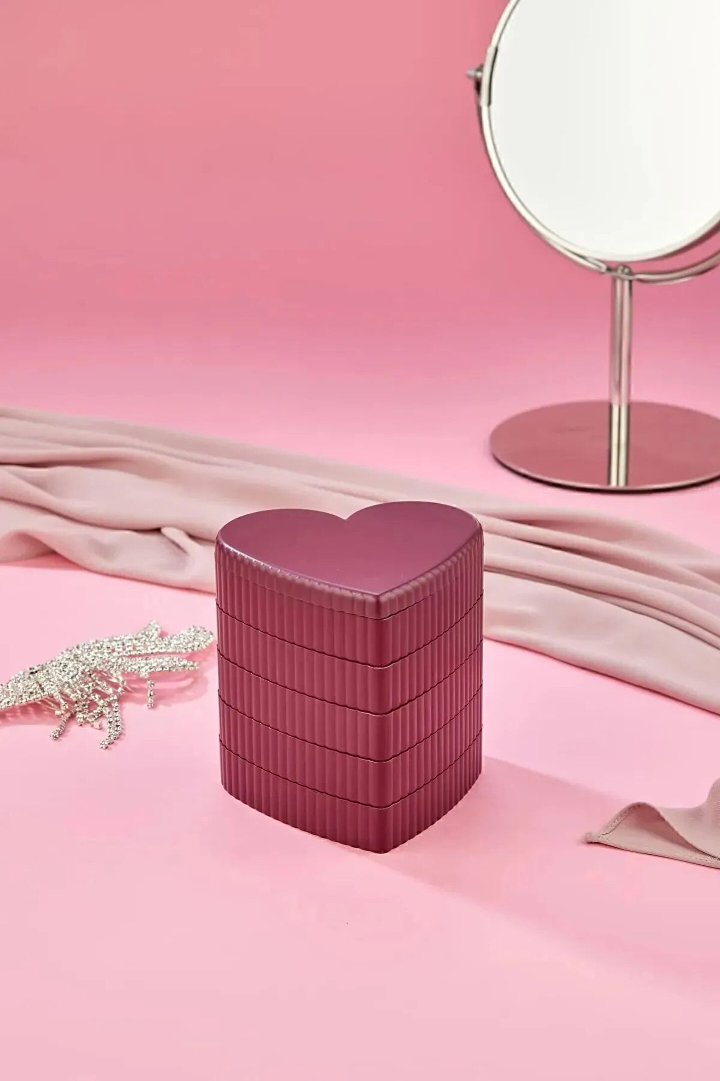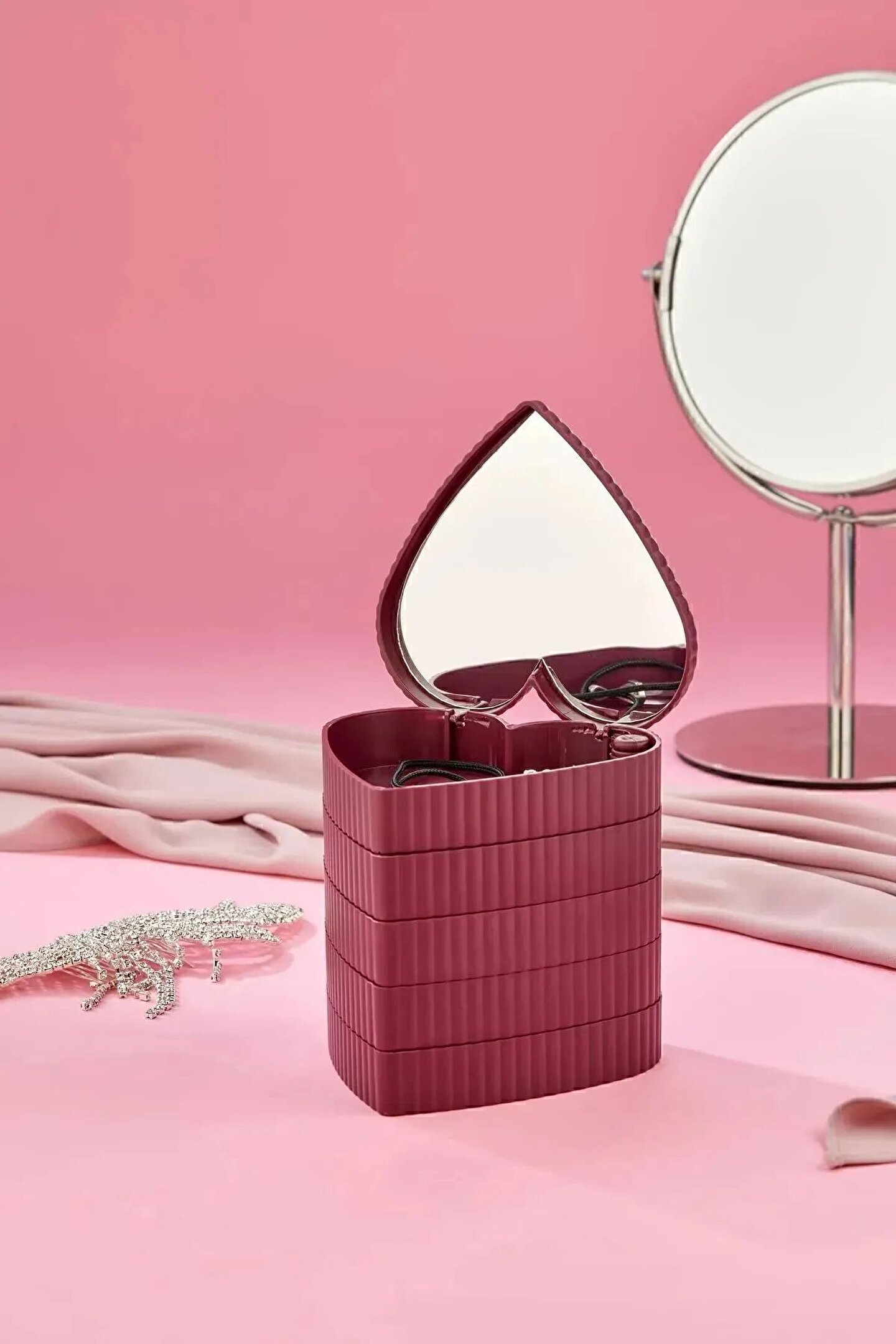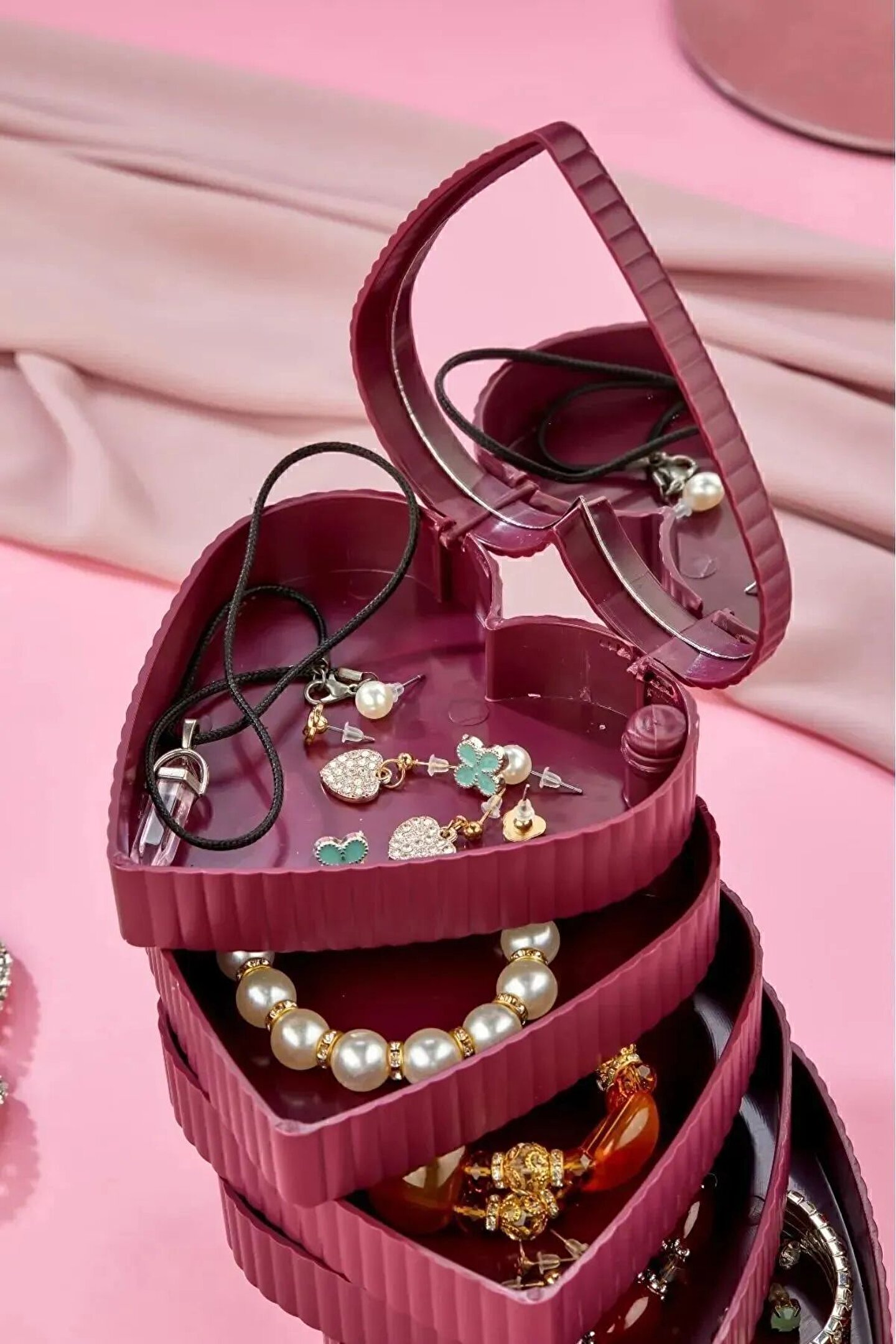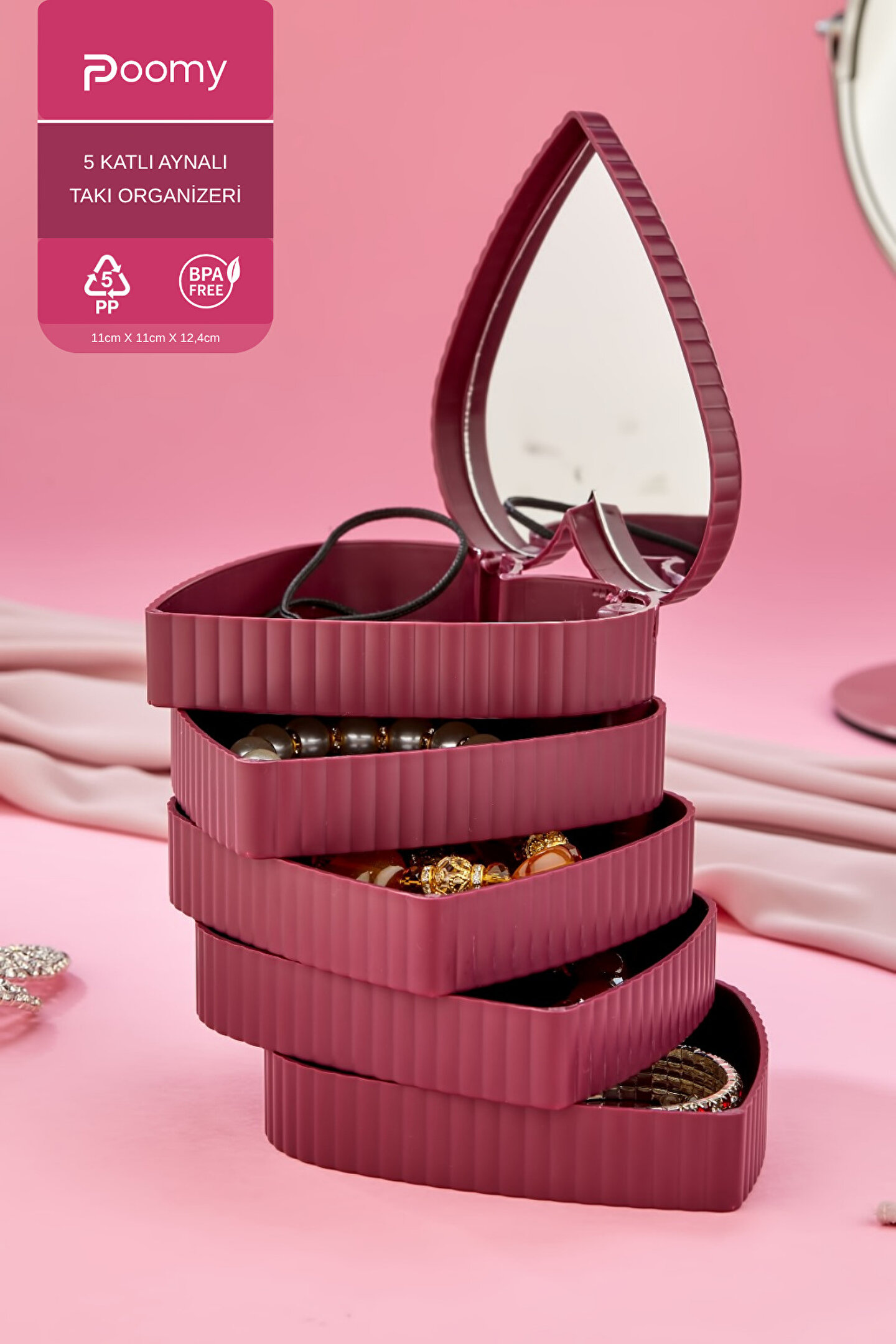 Poomy 5 Katlı Aynalı Kalp 360 Derece Dönebilen Takı Organizer Kutusu