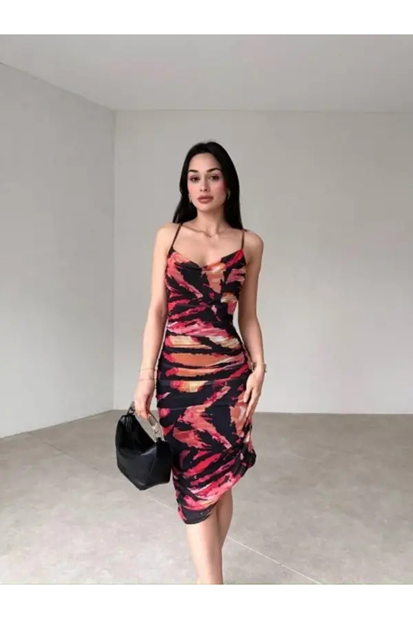 Gençlerin enerjisini yansıtan tasarımıyla, her yaş grubuna hitap eden askılı drapeli tül kumaş diz altı elbise, şıklığı ve rahatlığı bir arada sunar; Midi boyu ile hem günlük kullanımda hem de özel günlerde ideal bir tercih olan bu elbise, zarif siluetiyle dikkat çeker; Düz kesimi sayesinde sade ve modern bir görünüm sağlar; tül dokusu ise hafif ve havadar bir his verir; Astarlı yapısı ile konforlu bir kullanım sunarken, slim kalıbı vücut hatlarını nazikçe sararak feminen bir duruş kazandırır; Askılı kol tipi ve boyu ile yaz aylarında serinlik ve rahatlık sağlar; tüm gün süren etkinlikler için idealdir; Her yaş grubuna uygun tasarımıyla geniş bir kullanıcı kitlesine hitap eder; tüm yaş gruplarına yönelik olarak tasarlanmıştır;