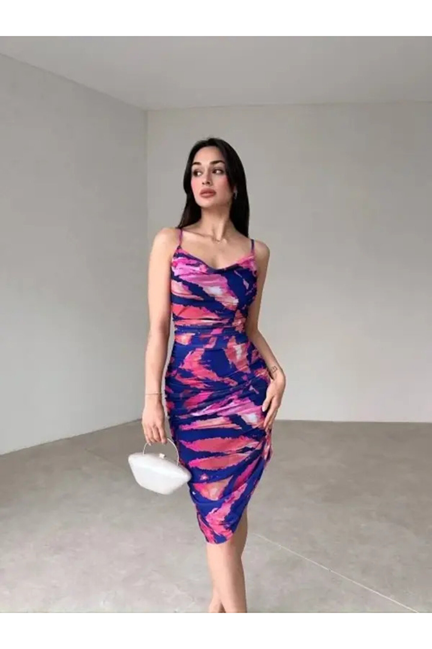 Askılı tasarımı ile yaz aylarında serin ve rahat bir kullanım sunar; Belirtilmemiş kumaş tipi, esneklik ve konforu bir arada garanti eder; Genç yaş grubuna hitap eden modern ve şık bir görünüm sağlar; Slim kalıp sayesinde vücut hatlarınıza mükemmel uyum sağlar ve zarif bir siluet oluşturur; Tüm yaş gruplarına uygun tasarımıyla geniş bir kullanıcı yelpazesine hitap eder; Midi boyu ile hem günlük kullanım hem de özel günler için idealdir; şıklığı ve rahatlığı bir arada sunar; Tül materyali hafifliği ve zarif duruşuyla dikkat çekerken, astarlı yapısı konforlu bir deneyim sağlar; Astarlı detayları sayesinde rahatlıkla hareket etme özgürlüğü tanır ve şık görünümünüzü korur; Düz dokuma tipi, sade ve şık tasarım anlayışını ön plana çıkartırken, tül detaylarıyla feminen dokunuşlar ekler;