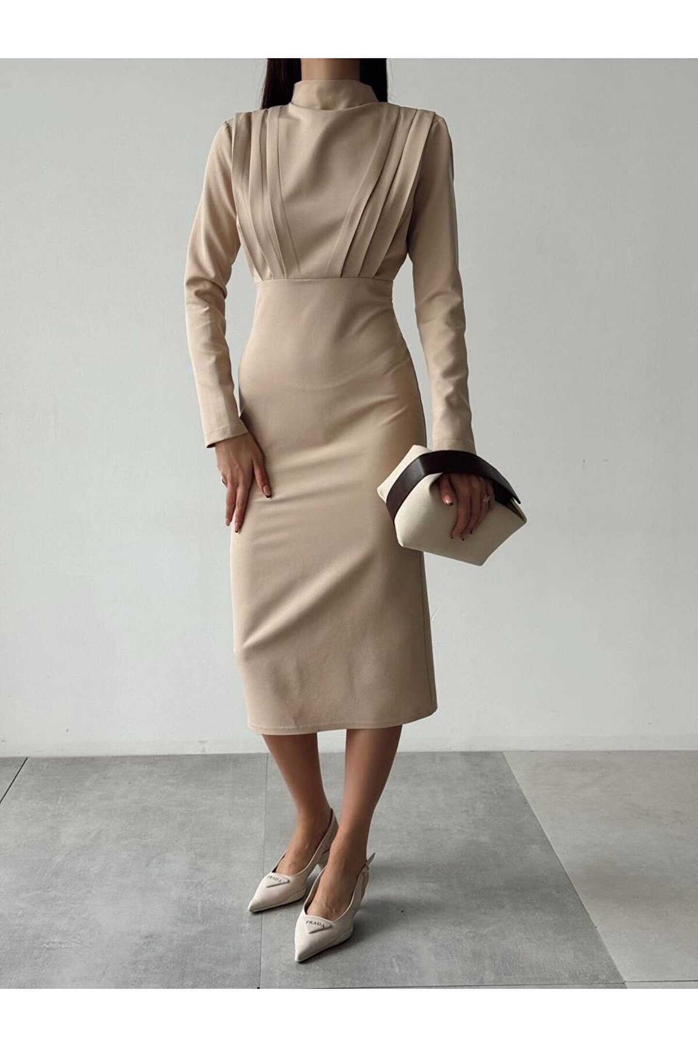 Zarif dantel detaylarıyla süslenmiş Atlas kumaştan üretilmiş, tüm yaş gruplarına hitap eden midi boy abiye elbise, özel günlerinizde şıklığınızı tamamlamanız için idealdir.; Slim kesimiyle vücut hatlarınızı zarifçe sararak feminen bir siluet çizerken, düz tasarımıyla zamansız bir görünüm sunar.; Her türden etkinlikte rahatça tercih edebileceğiniz bu elbise, dantelin romantizmini modern çizgilerle buluşturarak sofistike bir hava katmaktadır.; Midi boyu ile hem rahat hareket etme özgürlüğünüzden ödün vermezsiniz hem de şık duruşunuzla göz alıcı olursunuz.;