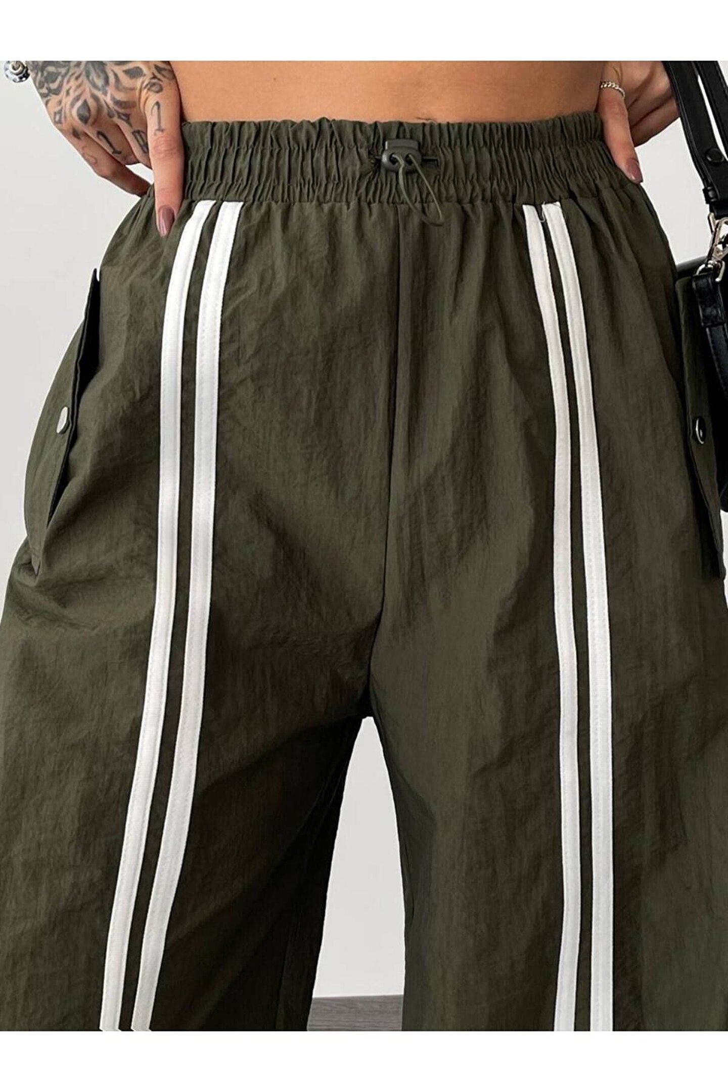 popibutik Cep Detaylı Lastikli Haki Paraşüt Pantolon