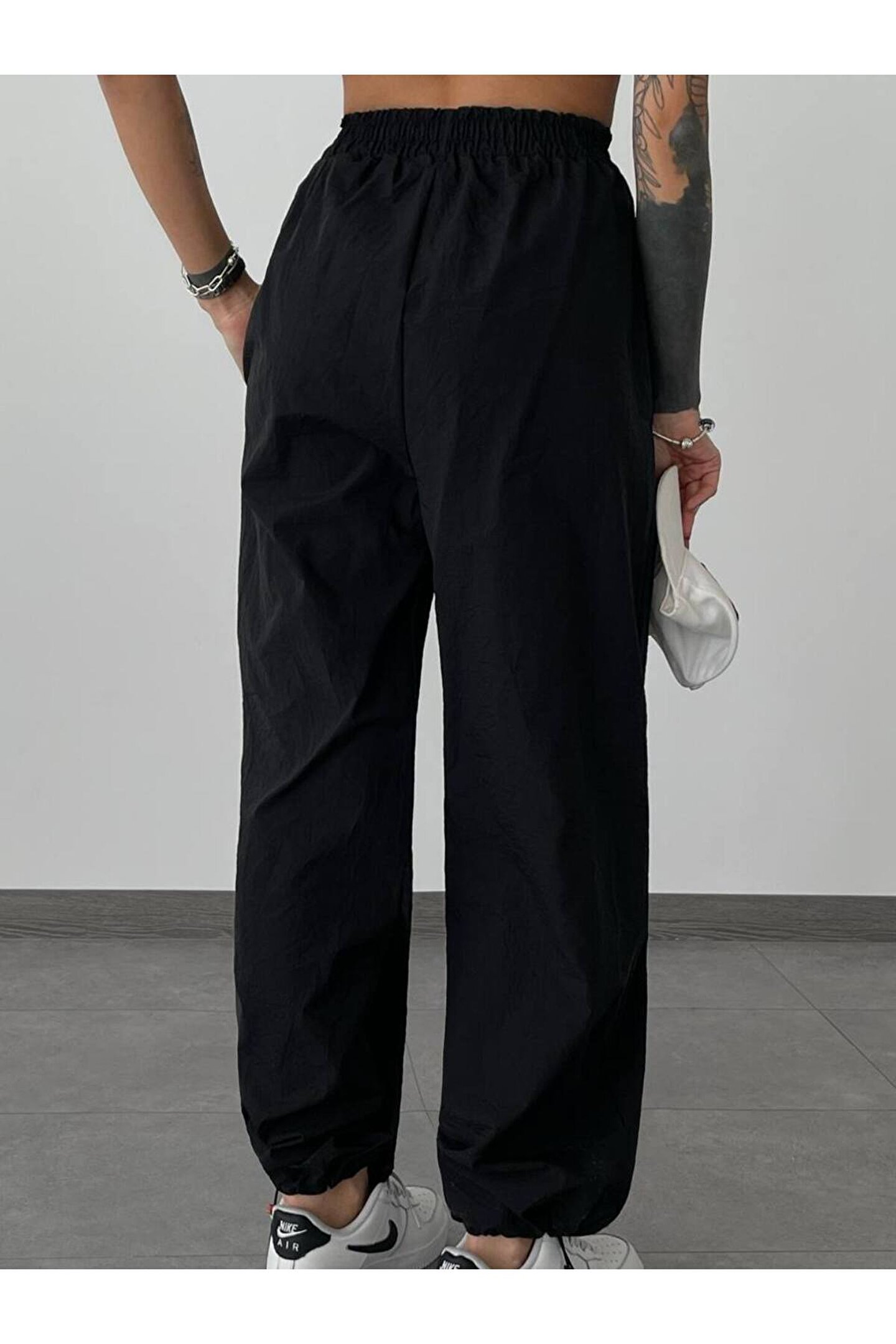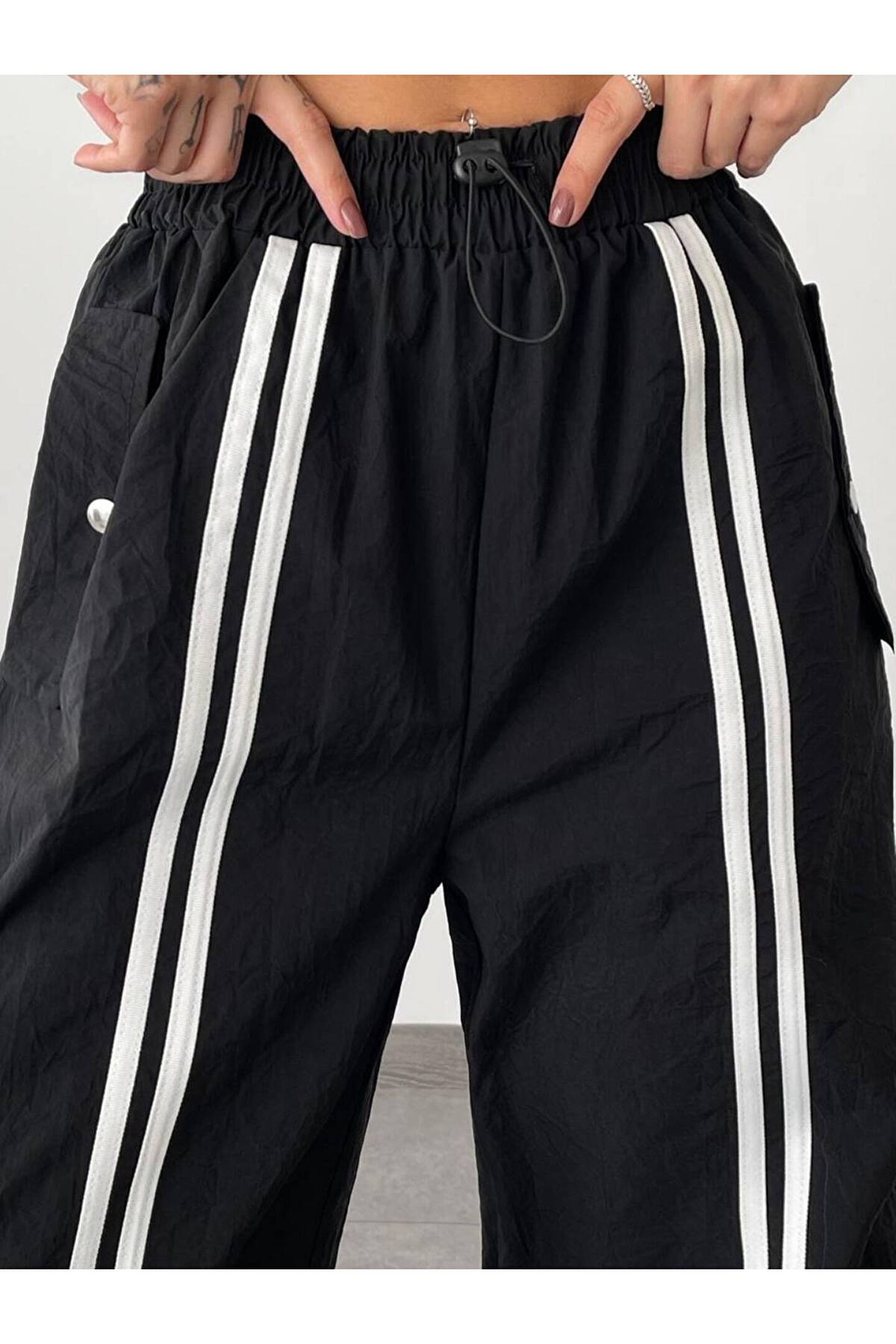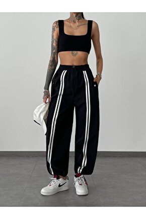 Rahat kesimiyle günlük kullanım için ideal olan bu pantolon, gençlerin tarzını tamamlıyor.; Cep detaylarıyla fonksiyonellik kazanan bu pantolon, günlük eşyalarınıza kolay erişim sağlıyor.; Trend tasarımıyla dikkat çeken siyah paraşüt kumaşı, modaya uygun bir görünüm sunuyor.; Lastikli bel tasarımı sayesinde konforlu bir oturuş sağlarken, şık duruşunu koruyor.; Kaşkorse kumaşı ile hafifliği ve nefes alabilirliği ön planda tutarak gün boyu rahat etmenizi sağlıyor.;