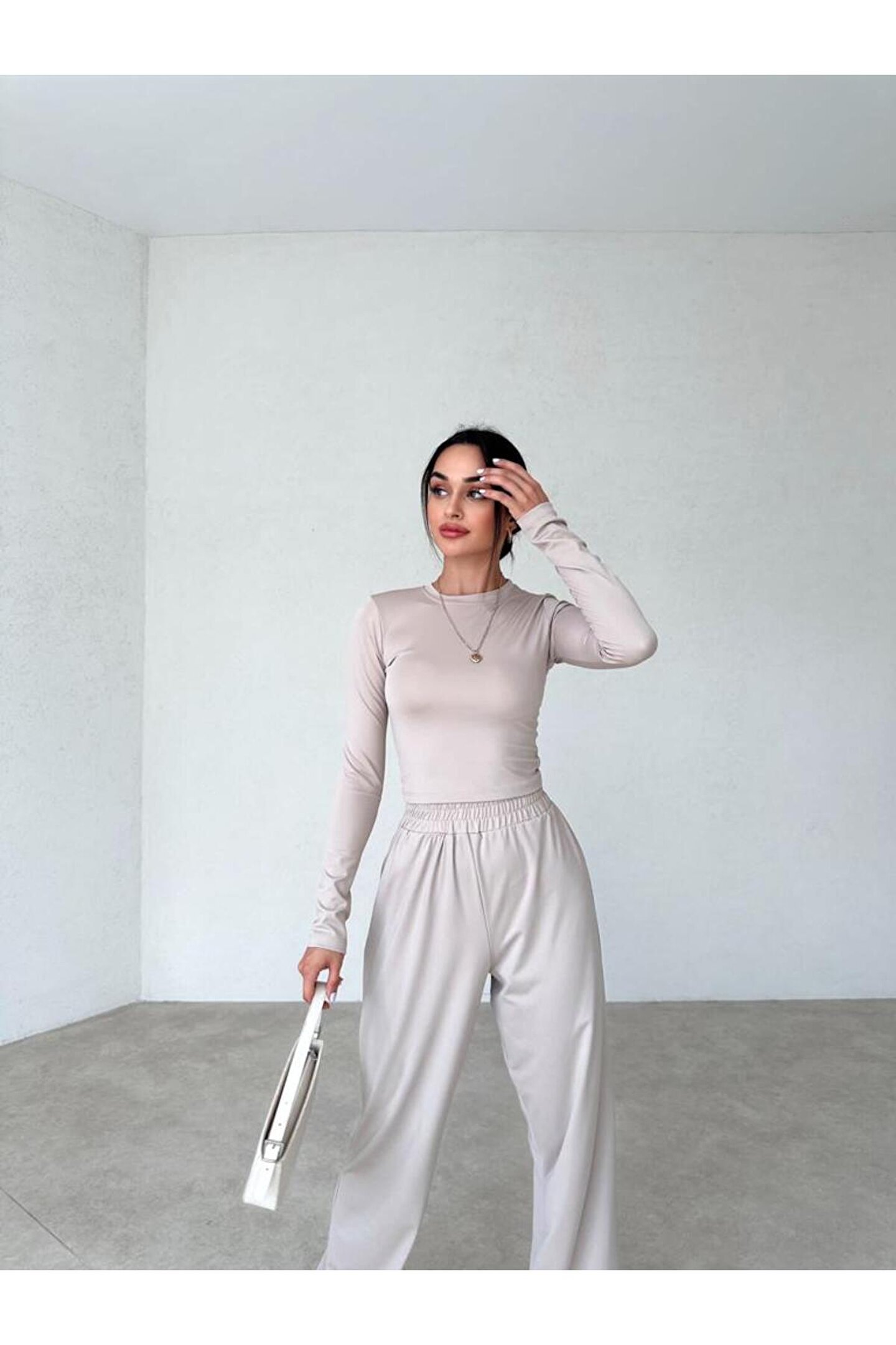 Gençlerin enerjisine ve tarzına uygun, her yaş grubuna hitap eden dalgıç kumaştan üretilmiş ikili takım; Sade ve şık tasarımıyla dikkat çeken düz desenli, zamansız bir görünüm sunar; Slim kalıp sayesinde modern ve şık bir siluet oluştururken, yüksek bel tasarımı vücut hatlarını zarifçe sarar; Uzun kollu üst parça ile mevsim geçişlerinde ideal konfor ve şıklığı bir arada sunar; Regular boy kesimiyle rahat hareket etme özgürlüğü sağlar ve günlük kullanım için idealdir; Örme dokuma tipi, esnek yapısıyla gün boyu rahatlık ve konfor sunarken, dalgıç kumaşın dayanıklılığı ile uzun süreli kullanım vaat eder;